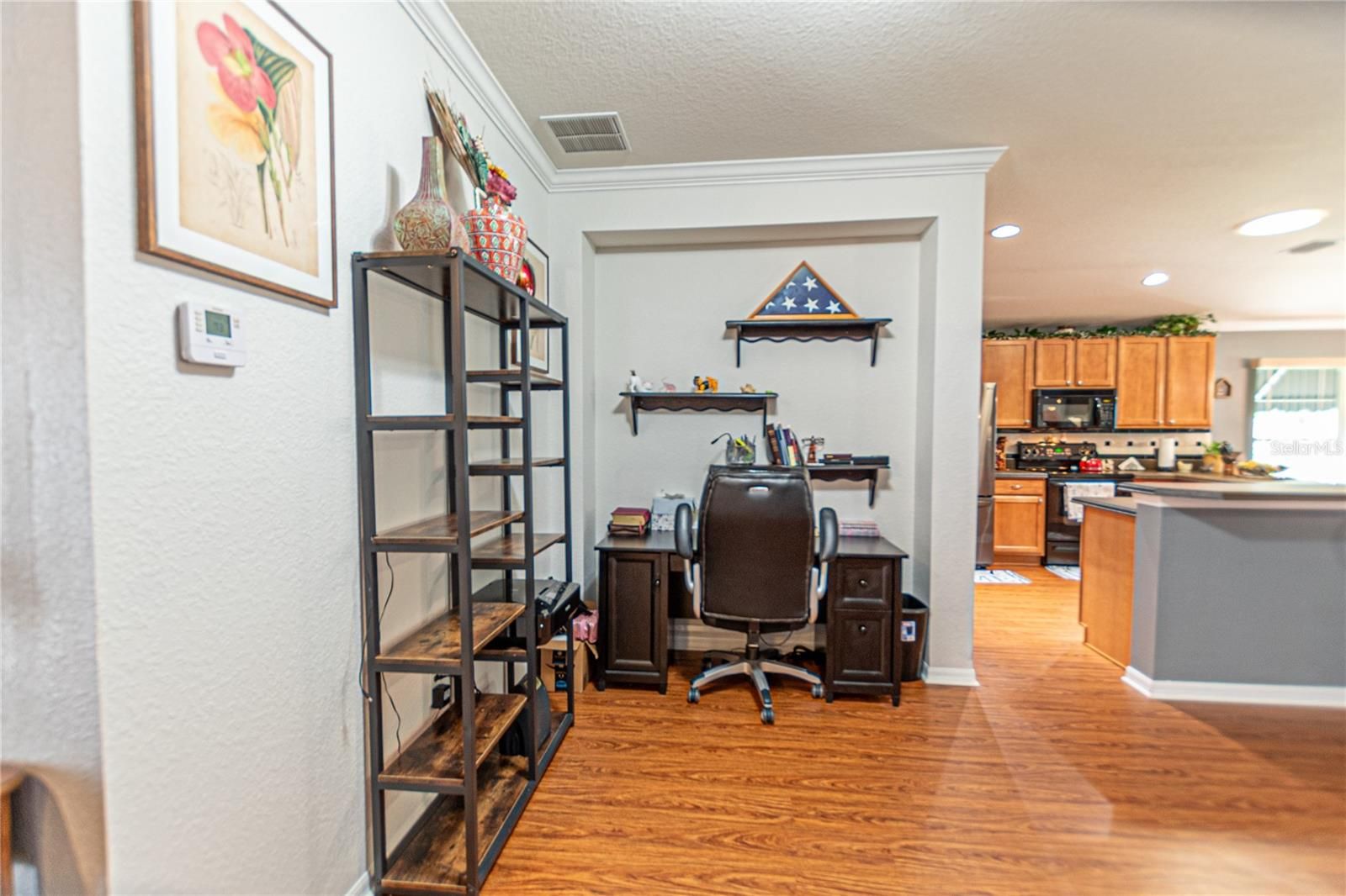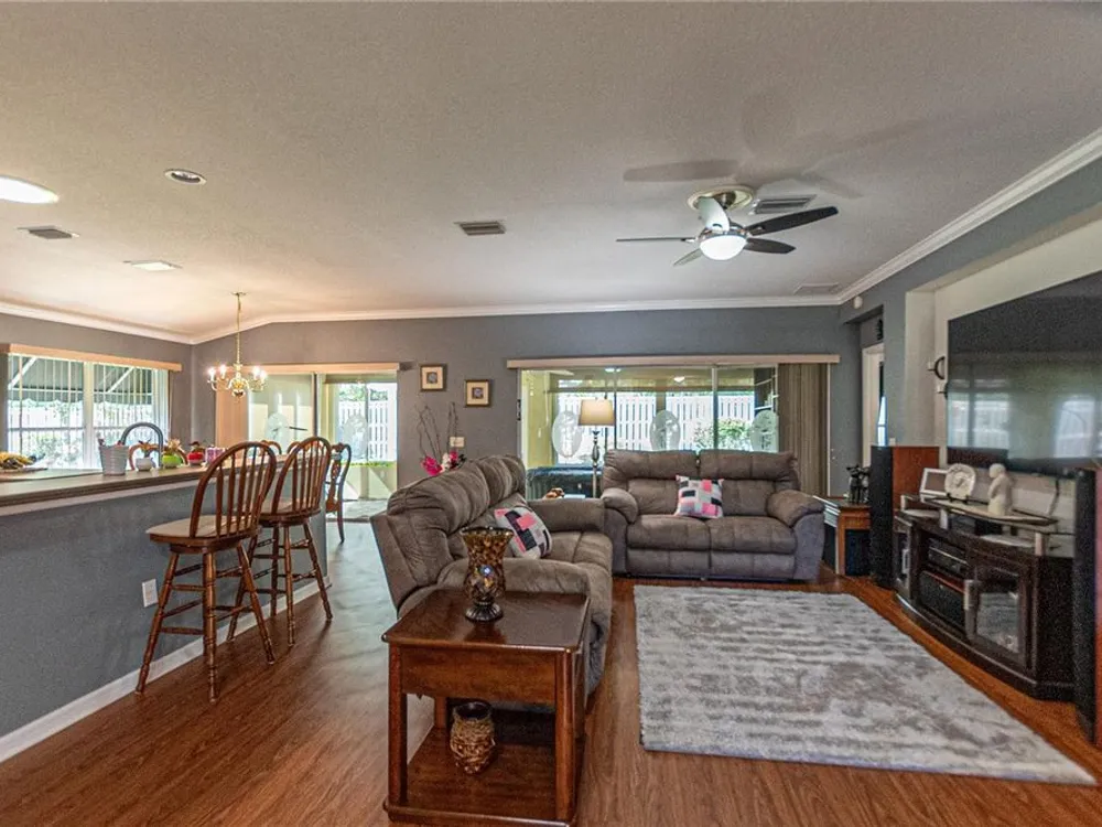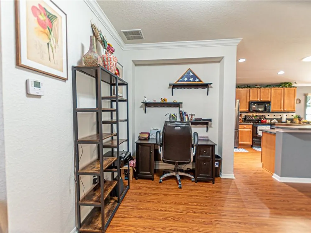 - Ceiling Fan(s), Crown Molding, Living/Dining Room, Open Floorplan, Main Level Primary, Thermostat, Walk-In Closet(s), Window Treatments