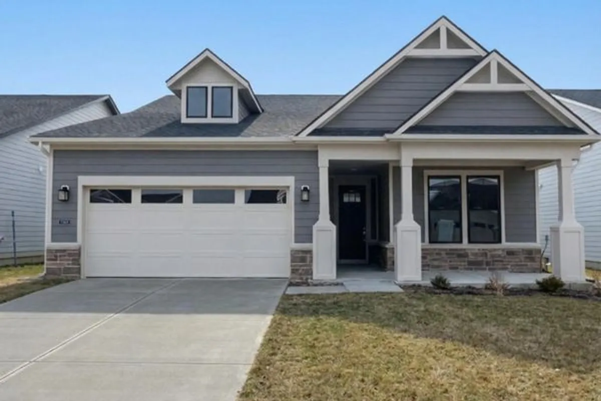 Experience the elegance of the Prosperity floorplan in Finch Creek by Del Webb, a premier 55+ community. This thoughtfully designed home features a modern kitchen with 42" white cabinetry, Artic White Quartz countertops, built-in stainless steel oven and microwave, gas cooktop, and a spacious island-ideal for both everyday meals and entertaining. The kitchen transitions effortlessly into the gathering room with its elegant tray ceiling and welcoming cafe dining area, while the adjacent sunroom provides a sunsoaked retreat for relaxation. The luxurious owner's suite offers a peaceful retreat, complete with a tiled shower, double-sink vanity with quartz countertops, and walk-in closets. The secondary bedroom enjoys easy access to a conveniently located full bath. A versatile flex room, enclosed with doors and situated just off the foyer, can serve as a home office, study, or additional bedroom to suit your needs. The Finch Creek by Del Webb community is where lifestyle takes center stage. Residents enjoy TV streaming and internet included, plus convenient seasonal opening and closing of irrigation systems. The resort-style amenities include indoor and outdoor pools, a state-of-the-art fitness center, pickleball and bocce ball courts, and a clubhouse featuring social programming led by a full-time Lifestyle Director. A high-tech simulation room offers virtual golf and other sports, while 8.5 miles of walking trails, pocket parks, and a dog park encourage an active, outdoor lifestyle. Ideally located just minutes from I-69, Hamilton Town Center, top-rated hospitals, golf courses, and downtown Noblesville. Photos of a similar model.
