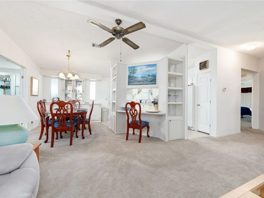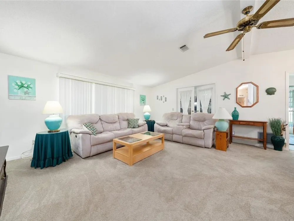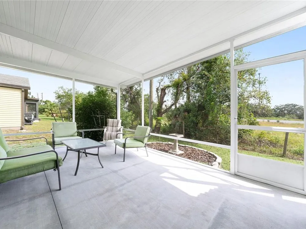 Welcome home to this charming 2-bedroom, 2 bath manufactured home in the Village of Orange Blossom Gardens! With over 1,300 square feet of living space and no homes behind, you’ll love the peaceful privacy this property offers. Step inside to an open floor plan that feels warm and inviting from the moment you enter. The kitchen has plenty of cabinet and counter space and opens up nicely to the dining and living areas, perfect for everyday living or entertaining guests. Both bedrooms are spacious with walk-in closets, and the primary suite features its own private bath. UPDATED windows (2014), HVAC (2014). Relax and unwind in the screened lanai overlooking the quiet backyard, a great spot to enjoy your morning coffee or evening breeze. Located just minutes from Spanish Springs Town Square, you’ll be close to shopping, dining, golf, and all the fun The Villages is known for!