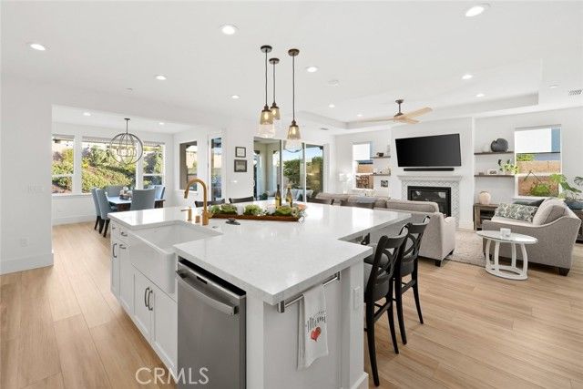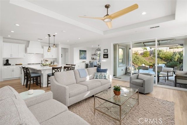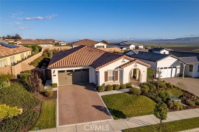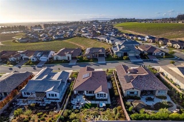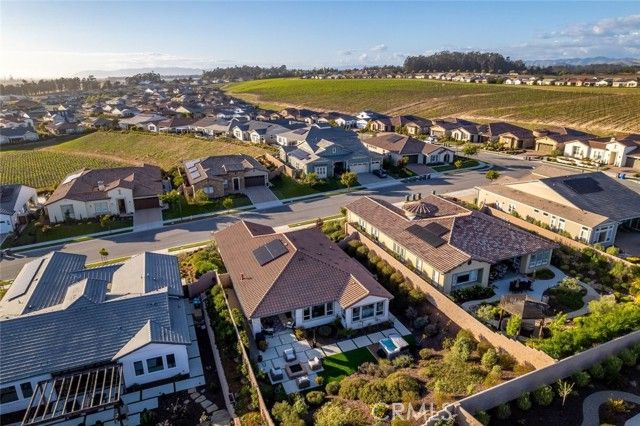 With captivating coastal views from its front porch and a quiet cul-de-sac setting, 1335 Silvia Lane sits gracefully perched to embrace the long-range scenery, offering an immediate sense of timeless inspiration, and the elevated coastal living that defines this home. Inside, sunlight fills the open floorplan, where the chef’s kitchen takes center stage with high-end appliances, a farmhouse sink, custom Shaker cabinetry, and pendant lighting that highlight the stunning oversized quartz island with seating for six. The kitchen flows effortlessly into the dining and living areas, where a Heat & Glo fireplace with custom tile surround and oak shelving adds warmth and character. A dramatic three-panel sliding glass wall opens the living space to the professionally designed backyard, creating a seamless indoor–outdoor experience. The yard is a private, low-maintenance retreat featuring artificial turf, natural landscaping, landscape lighting, a large firepit, and a welcoming covered patio for your enjoyment. The inviting hot tub sits just steps from the primary suite, offering a peaceful place to unwind under the stars and enjoy the quiet beauty of the setting. The primary suite offers a spa-inspired bathroom featuring a frameless glass shower, soaking tub, walk-in closet with organizers and quartz countertops. Throughout the home, premium upgrades elevate comfort and style, including solid-core interior doors, 7" baseboards, skip-trowel wall texture, custom flooring, LED lighting, enhanced data wiring, owned solar, EV charger, Air conditioning, garage insulation, Smart space utility room, designer lighting, custom shelving, and curated enhancements to further enrich the home’s refined aesthetic. With over $269,000 in upgrades, this residence stands apart as a rare blend of luxury, coastal charm, and resort-style living—crafted for those who appreciate thoughtful design, quality craftsmanship, and a truly turnkey experience.