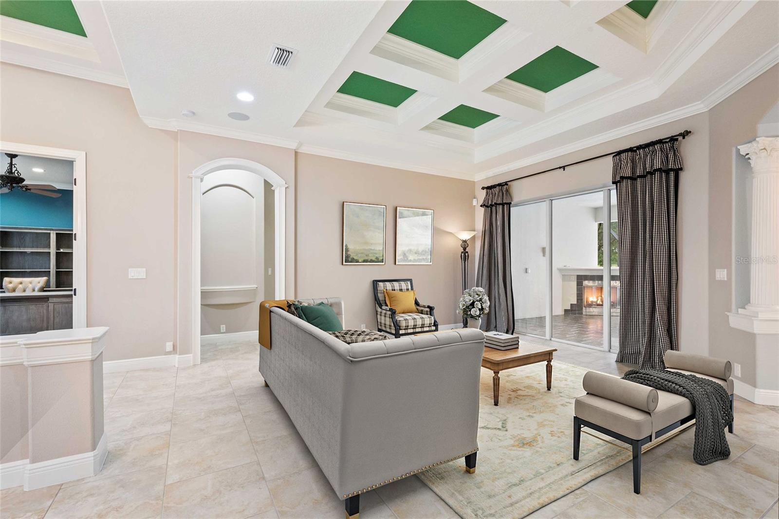 One or more photo(s) has been virtually staged. This home is back on the market and ready for a new buyer! Tucked away on a spacious private lot in the guard gated community of Lake Jovita, this beautifully expanded home offers plenty of room to live, work, and play with just the right blend of character, comfort, & flexibility. With 6 roomy bedrooms, a front office with closet and charming brick floors, & adaptable spaces throughout, it’s designed to fit a variety of lifestyles, especially for families who appreciate warmth and privacy. In 2018, the home received a major refresh and addition, bringing in more bedrooms and baths, expanding the custom kitchen and family room, & adding a fabulous bonus space with a wet bar and dishwasher drawer—perfect for movie nights, entertaining, or simply kicking back. When you step through the welcoming double-door entry, and you’ll find a formal living and dining room with a striking tray ceiling, graceful crown molding, and wide-open views of the covered lanai, screen-enclosed pool, hot tub & golf course beyond. The family room mirrors this elevated look with its own tray ceiling, cozy fireplace, and built-in surround sound, adding depth and ambiance to every moment. The heart of the home is the expanded kitchen, thoughtfully equipped with stainless steel KitchenAid appliances, double ovens, a walk-in pantry, soft-close drawers, a second pantry near the wet bar, and a butler’s pantry with cabinetry and a serving station. A large eat-at island anchors the space, while rich wood floors flow through the kitchen and family room, adding warmth and elegance. French doors from both the family room and breakfast nook open to the screened outdoor area, creating a seamless transition for indoor-outdoor living all year round. Two primary suites offer comfort and flexibility and the split plan layout could be perfect for joining or multi-generational families. The main retreat features a remodeled bath with jetted tub, dual walk-in closets, a private workout or flex space, and views of the pool, while the second suite is perfect for guests, teens, or extended family. Other highlights include a study nook with built-in lighting, two fireplaces, plantation shutters throughout, and two laundry rooms, including a primary laundry area off the garage with enough space to function as a convenient mud room. The home also features surround sound throughout with amplifier and control 4 system, enhancing daily life whether you're watching a film, listening to music, or setting the mood for a quiet night in. Continue the activities outside with your basketball goal and spotlight conveniently located in your driveway. The home also includes a home water softener and a WHOLE HOME GENERATOR for your peace of mind and uninterrupted power during unpredictable weather. End your days stepping outside on your lanai to experience the breathtaking sunset views down the 14th fairway of the North Course of Lake Jovita. Take advantage of NO CDD FEES and all Lake Jovita has to offer inclusive of a park with a one-third mile long track with exercise stations, pickleball courts, basketball courts, a playground area, a large open area for any use requiring a field, and two dog parks. The optional clubhouse memberships are also available to enjoy all the additional features of the community including any Club facility, such as the golf course, clubhouse, swimming pool, tennis courts or golf practice facilities. So much to offer in one home you must see it for yourself!