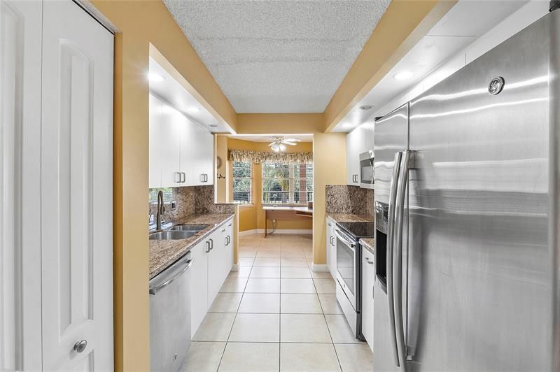 Enjoy peaceful lake views from this updated 2-bed, 2-bath condo in Century Village. Relax on your private screened patio or take advantage of resort-style amenities including pools, fitness centers, tennis, and social events. Features tile floors, modern kitchen with granite counters, stainless steel appliances, stylish lighting, and a tankless water heater. Move-in ready in a vibrant 55+ community.