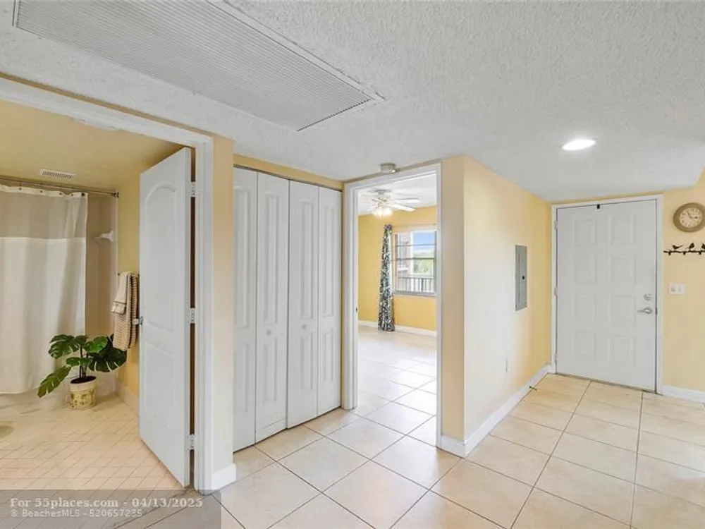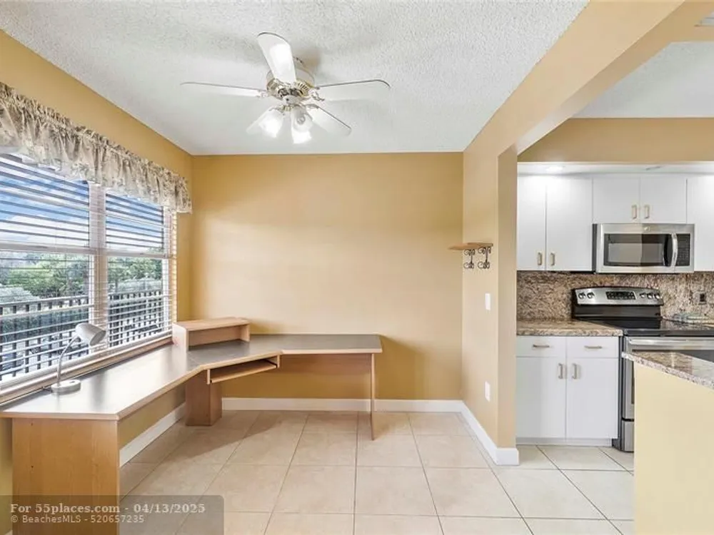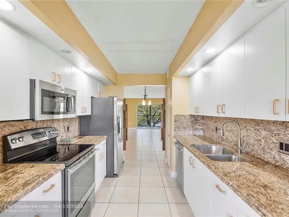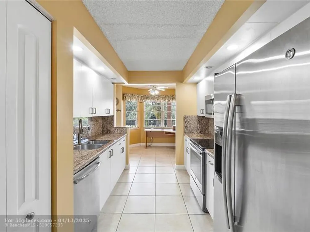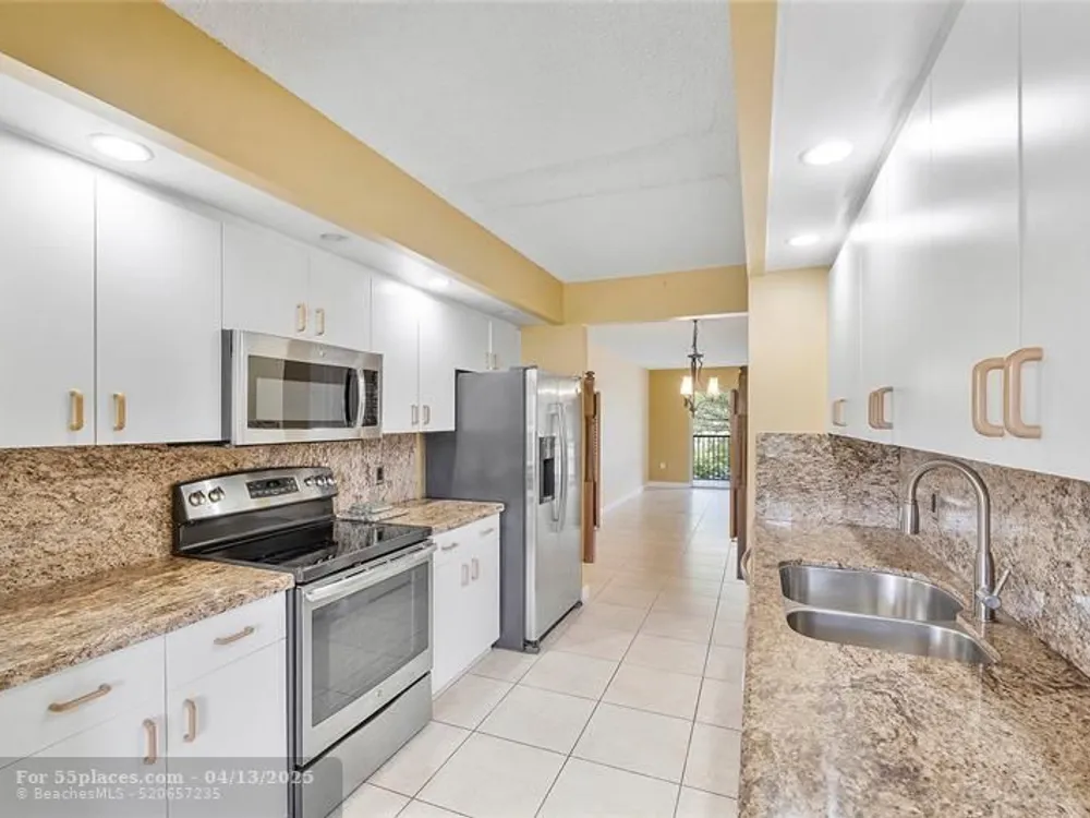 Relocation Price Improvement Desired Lakefront 2-bedroom, 2-bath condo in the heart of Century Village. Enjoy unobstructed lake views that provide a peaceful backdrop from your private screened-in patio. Perfect for morning coffee or evening relaxation. Features include tile floors throughout, a modern kitchen with stainless steel appliances, granite countertops, and recessed lighting. Additional upgrades include stylish light fixtures, ceiling fans, updated interior doors, and a tankless water heater. Updated & Move-In Ready.