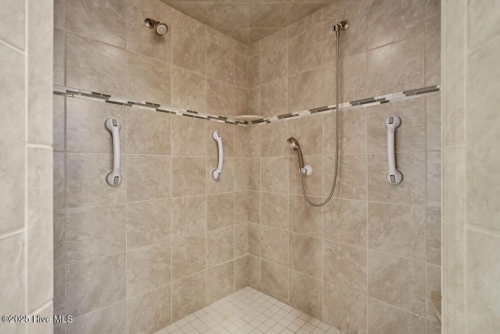 - Blinds/Shades, Tray Ceiling(s), Walk-In Closet(s), Walk-in Shower, Entrance Foyer, Master Downstairs, High Ceilings, Gas Log, Ceiling Fan(s), Bookcases