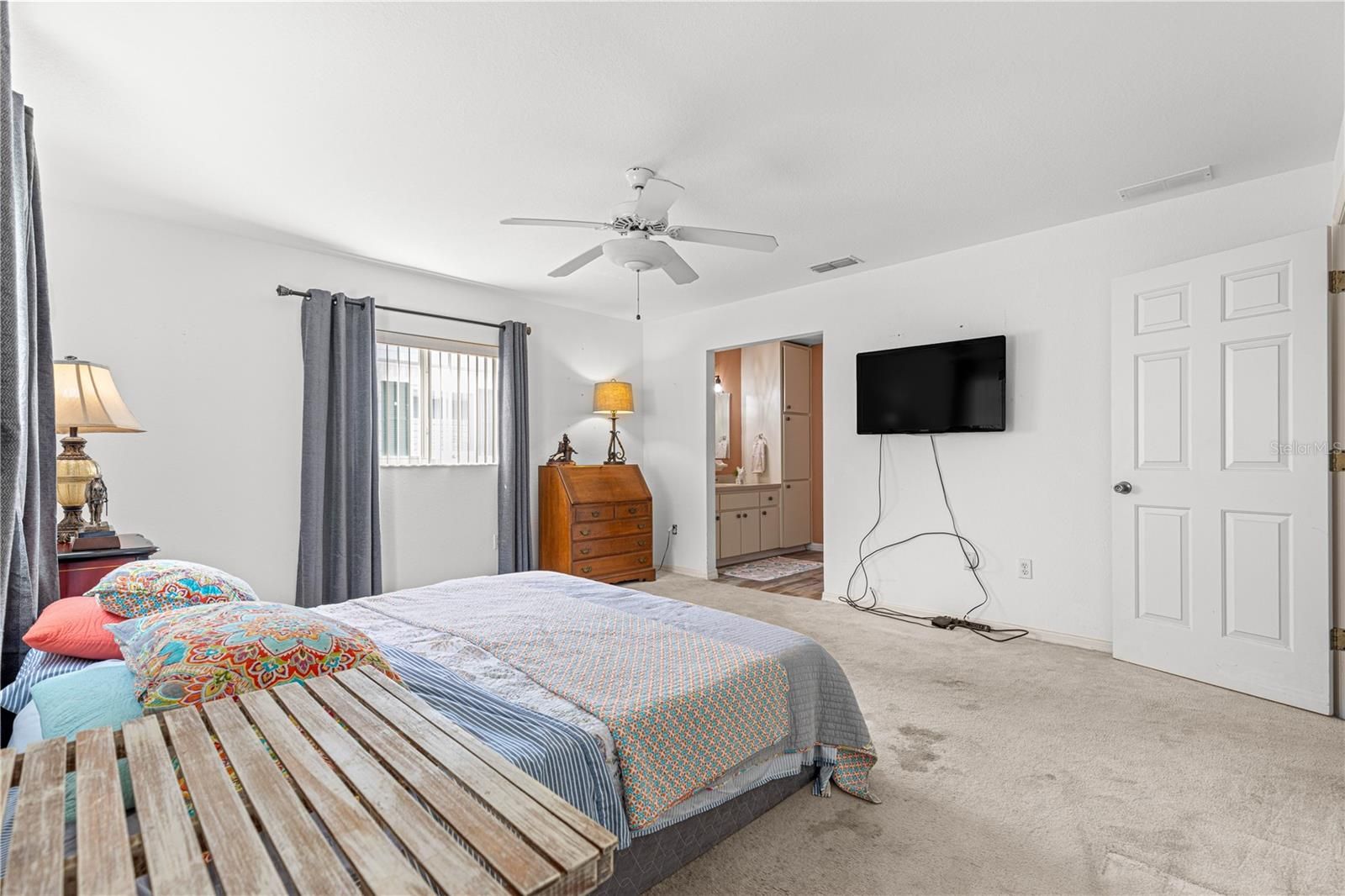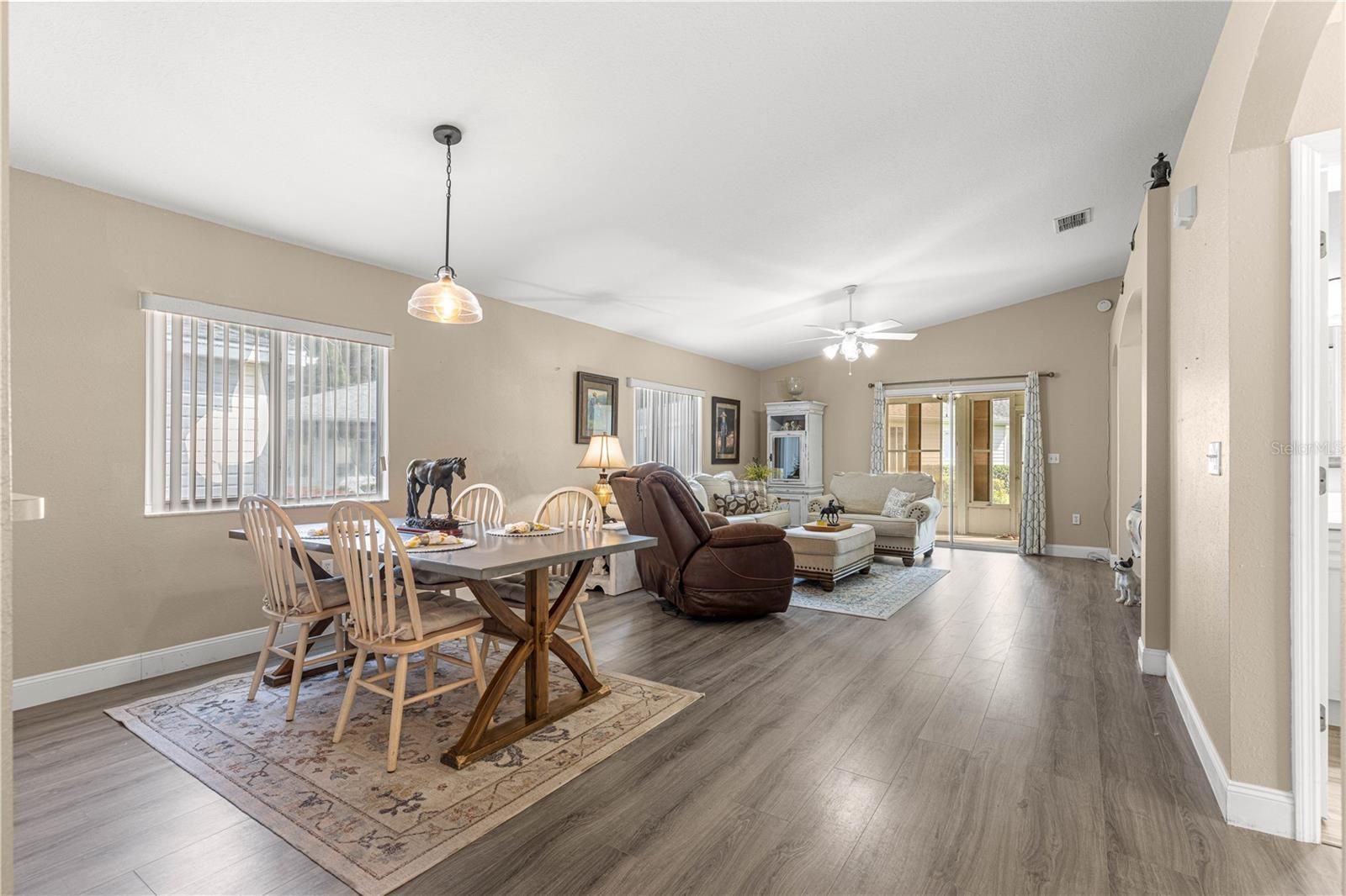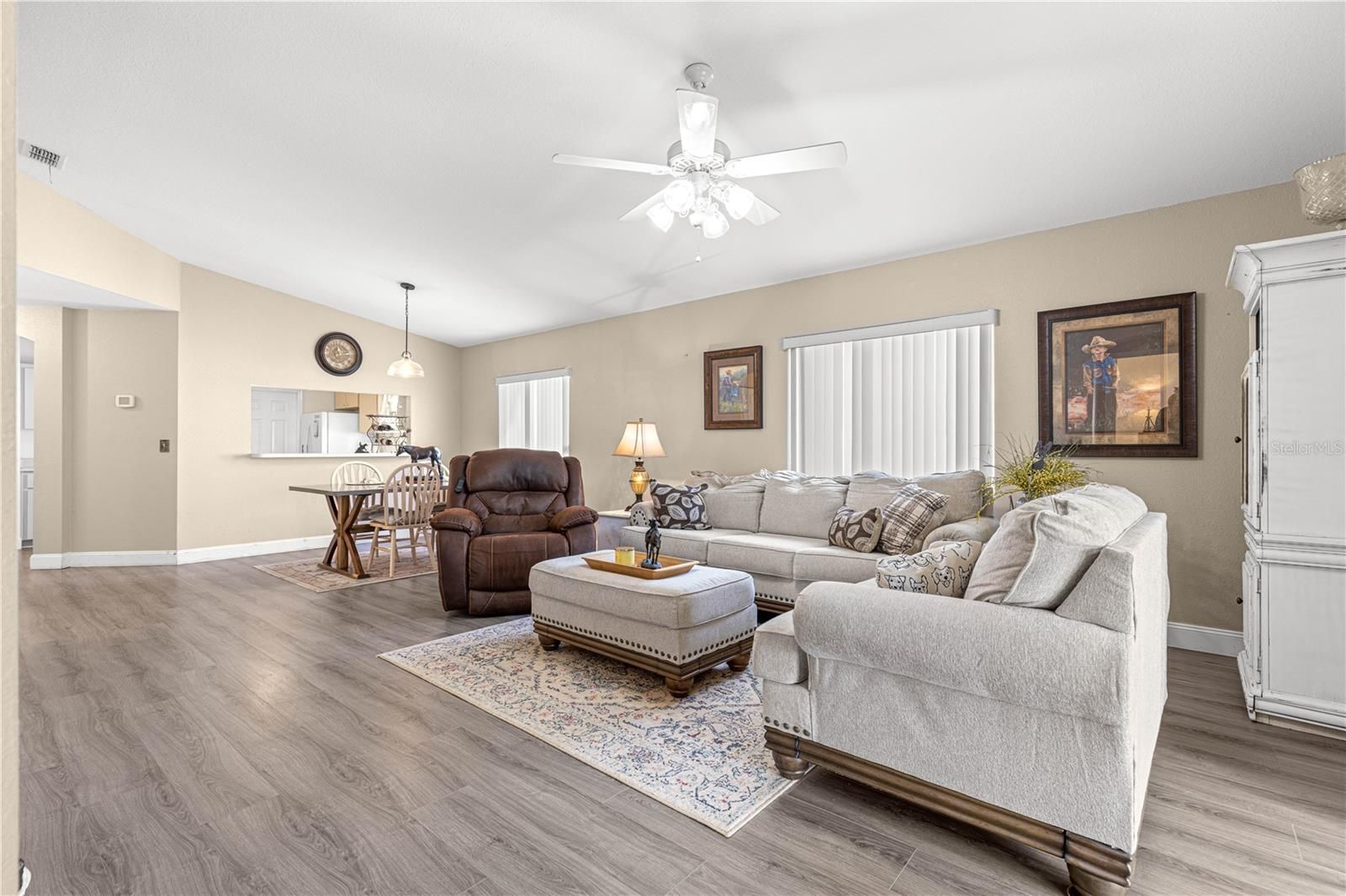 - Cathedral Ceiling(s), Ceiling Fan(s), Living/Dining Room, Open Floorplan, Main Level Primary, Split Bedrooms, Thermostat, Vaulted Ceiling(s), Walk-In Closet(s), Window Treatments