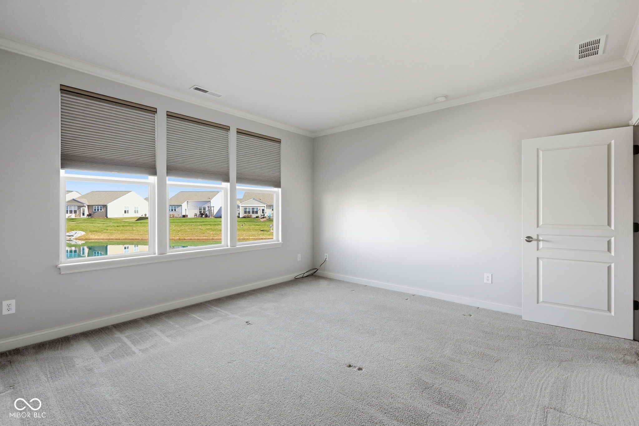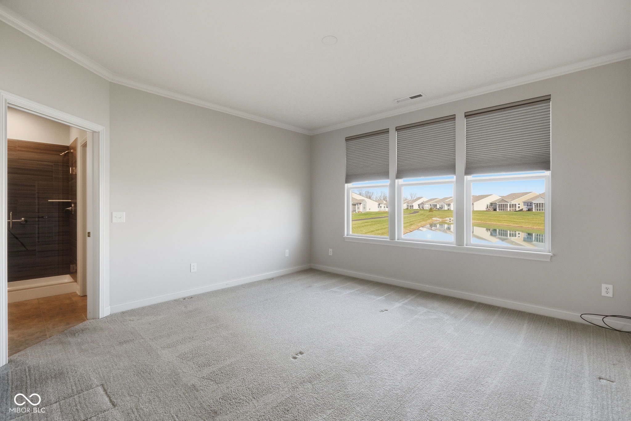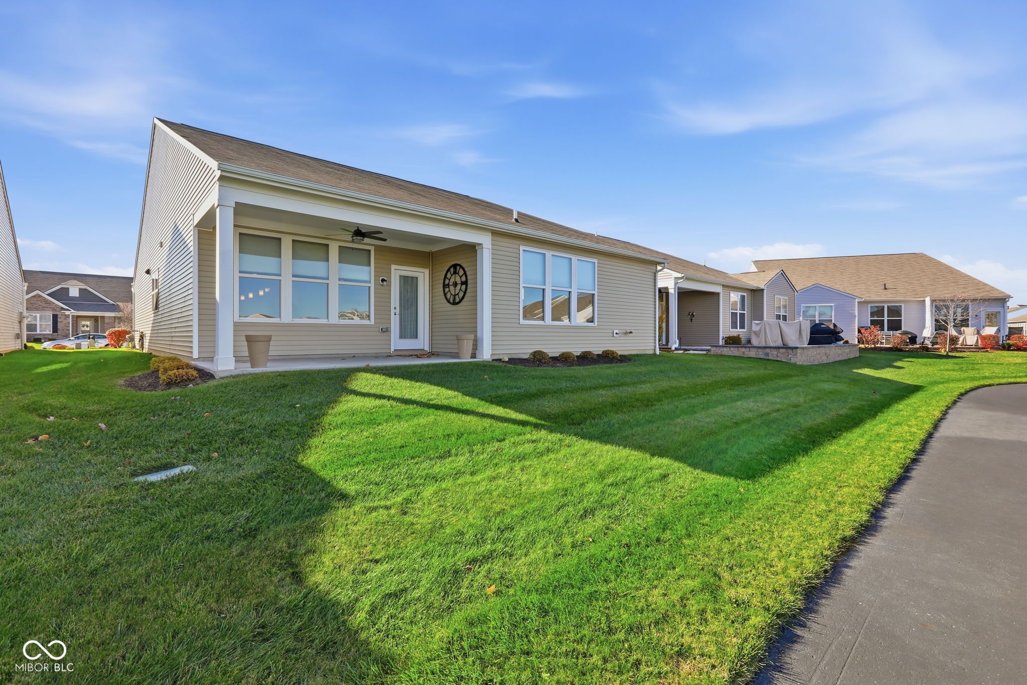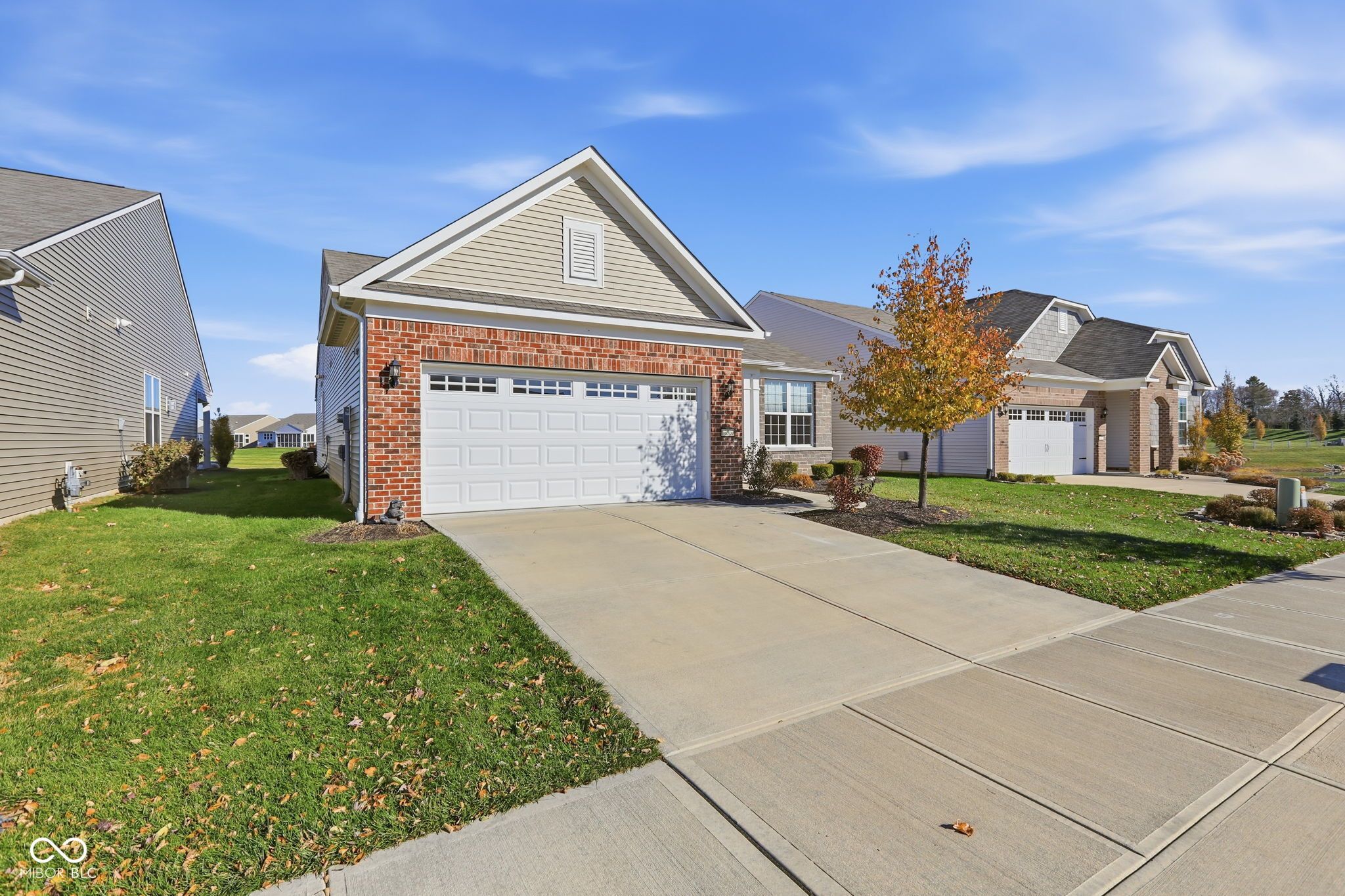 Welcome to this beautifully appointed 3-bedroom 2,000 sq. ft home perfectly situated on a quiet pond lot, offering peaceful views and a low-maintenance lifestyle in this desirable Del Webb community. Enjoy serene mornings and relaxing evenings on the covered back porch, where the tranquil water backdrop creates the ideal setting for outdoor living. Step inside to discover an impressive huge kitchen island with gleaming granite countertops, staggered 42" cabinets with soft-close doors and drawers, a convenient butler's pantry, and an expansive walk-in pantry-a dream layout for storage, entertaining, and everyday convenience. The kitchen is fully equipped with all stainless steel appliances, including a gas range and double oven/microwave combination, making meal prep effortless. The home features 9' ceilings throughout, enhancing the spacious, open feel. Separate Dining Room blends in to an open floor plan. A well-designed laundry room includes washer and dryer plus utility sink rough-ins. Car enthusiasts, hobbyists, or those needing extra storage will appreciate the 2+ car garage, complete with an additional workspace/storage area and durable epoxy flooring for easy care and a polished finish. Enter from garage to utilize the custom boot bench/storage built ins. Enjoy the convenience of low-maintenance Del Webb living, where yard care is simplified so you can spend more time enjoying the community's exceptional amenities. Residents have access to a vibrant clubhouse, sparkling pool, fitness opportunities, social activities, and more-creating a rich lifestyle experience just steps from home. This home blends comfort, quality, and relaxation with thoughtful upgrades and an unbeatable setting plus it is close to Hamilton Town Center with endless restaurants and shopping.