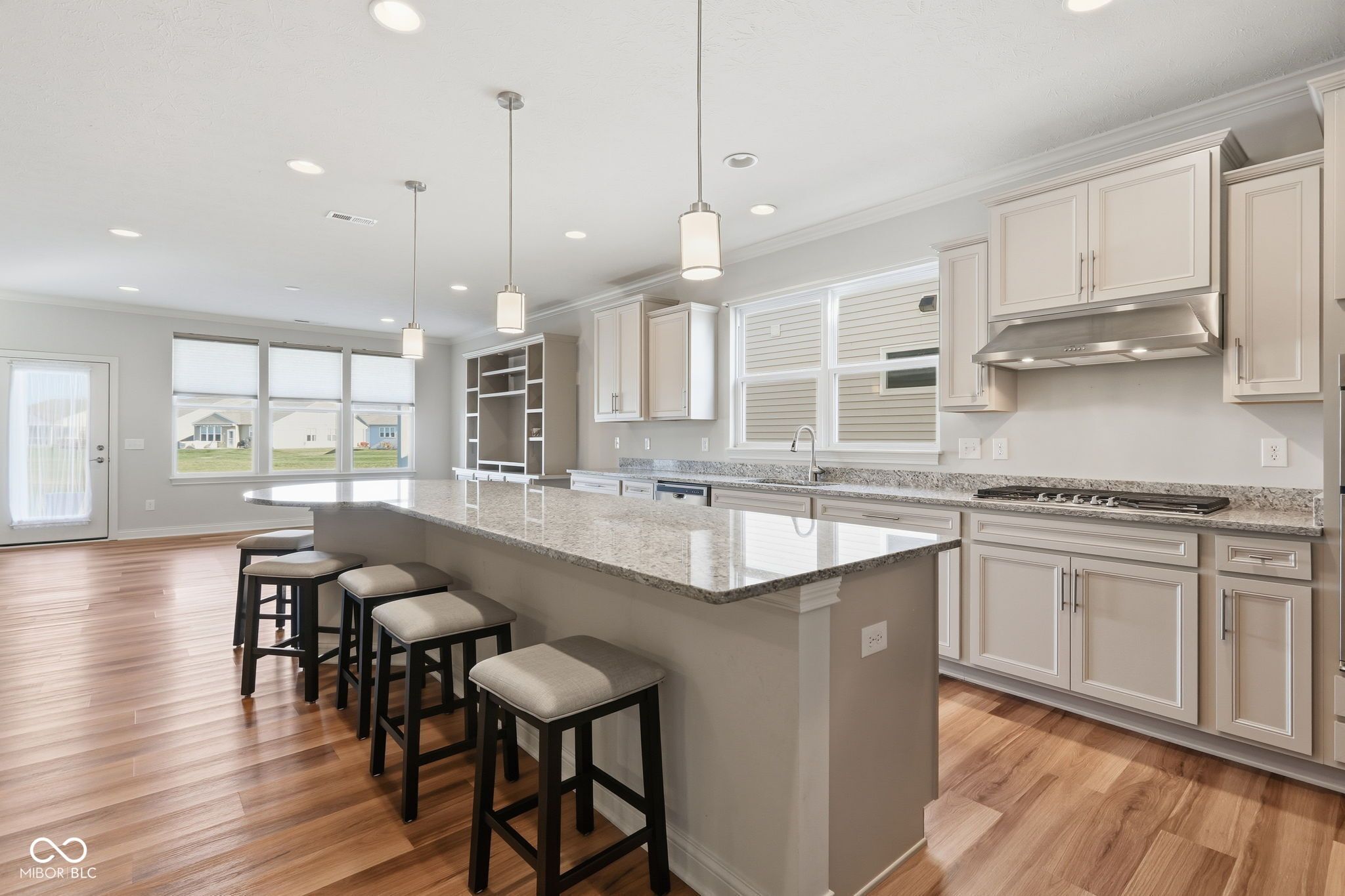 - Gas Cooktop, Dishwasher, Dryer, Range Hood, Refrigerator, Washer, Water Softener Owned