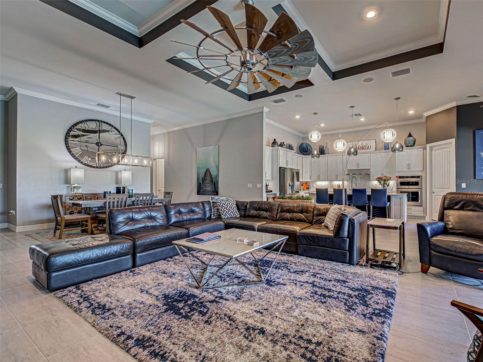 - Ceiling Fan(s), Coffered Ceiling(s), Crown Molding, Eat-in Kitchen, High Ceilings, Open Floorplan, Tray Ceiling(s)