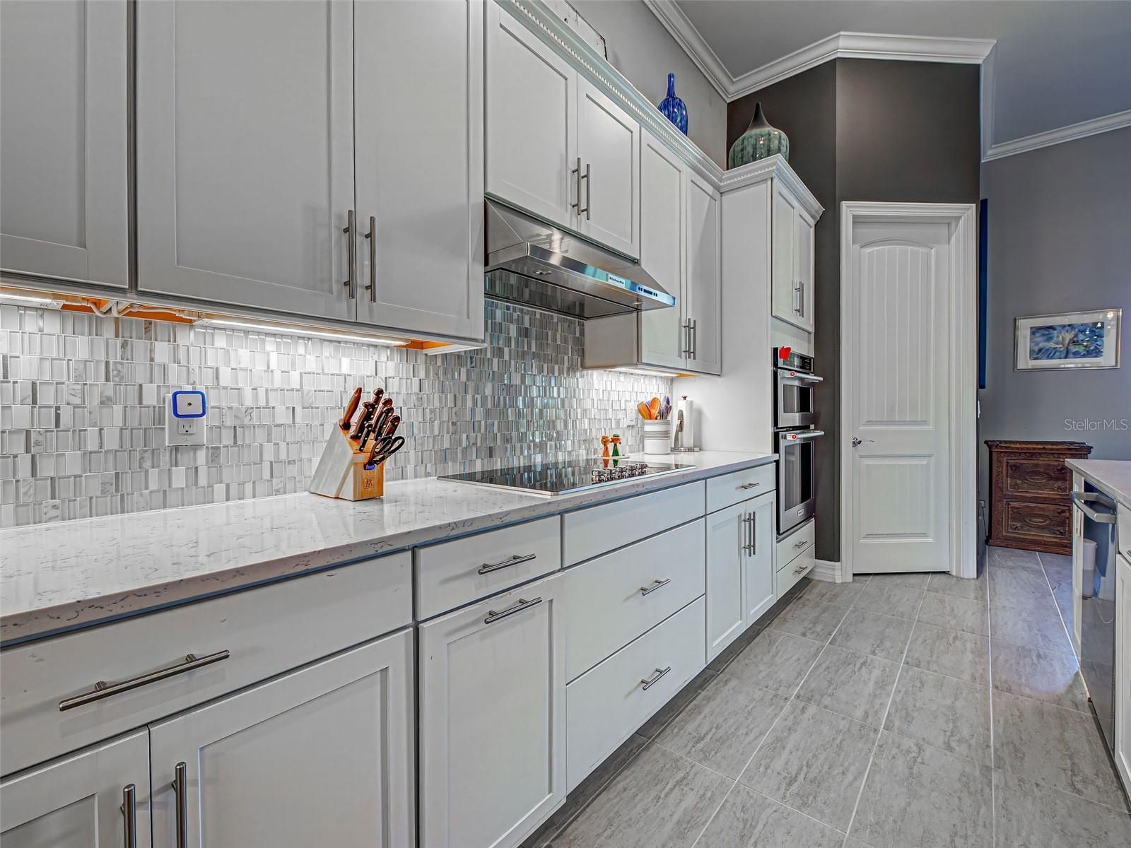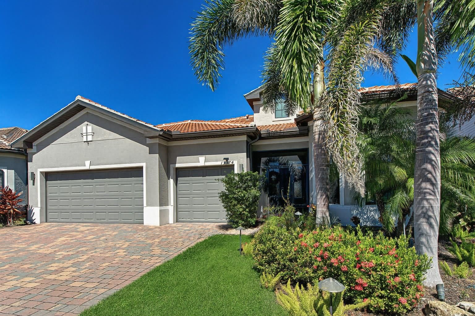 Welcome to this exceptional STONEWATER POOL estate home, where design meets modern comfort in Islandwalk, one of Wellen Park’s most sought-after communities. This beautifully appointed residence offers 3 bedrooms, 3 bathrooms, a versatile den, and a spacious 3-car garage. Step inside to discover HIGH CEILINGS, elegant CROWN MOLDING throughout the main living areas, seamless PLANK TILE flooring—no carpet—and CUSTOM LUTRON REMOTE-CONTROL SHADES in the great room and primary bedroom. The open-concept layout centers around a gourmet kitchen with crisp white cabinetry, high-quality stainless steel appliances, a generous CUSTOM WALK-IN PANTRY, and a large island with pendant lighting. Adjacent to the kitchen, a breakfast nook offers tranquil water views through TWO SLIDER DOORS and flows into the NATURAL LIGHT-FILLED great room. Here, COFFERED CEILINGS, recessed lighting, a WINDMILL CEILING FAN, and TRIPLE SLIDERS create an inviting space for entertaining or relaxing, seamlessly connecting to the expansive COVERED and SCREENED lanai. Step outside to your private oasis featuring a HEATED SALTWATER POOL with SPA, ceiling fan, remote-controlled STORM SHADES, and peaceful WATER VIEWS—perfect for year-round enjoyment. The luxurious primary suite showcases a TRAY CEILING with crown molding, tile flooring, ceiling fan, and en suite bathroom behind DUAL SOLID DOORS. Inside, enjoy a generous tiled shower, dual vanities, and a CUSTOM WALK-IN CLOSET designed for style and storage. The guest bedroom offers comfort with a ceiling fan, built-in closet, CUSTOM WINDOW SHADES and access to a bathroom with bathtub, linen closet, and soft neutral tones. The third bedroom is bathed in natural light from turret windows and is near a third bathroom with tiled tub and white cabinetry. A versatile flex room adds functionality—ideal for a home office, craft space, or extra bedroom—and includes a BARN DOOR, crown molding, CUSTOM WINDOW TREATMENT, and ceiling fan. The spacious laundry room features LG washer and dryer, vanity sink, and crown molding for a polished finish. For peace of mind, the home includes IMPACT WINDOWS THROUGHOUT and a 500-GALLON PROPANE TANK for the GENERATOR. All mounted TVs convey! The 3-CAR GARAGE boasts EPOXY FLOORING and OVERHEAD STORAGE RACKS for optimal organization. Living in Islandwalk means enjoying resort-style amenities year-round: geothermal pools, Har-Tru tennis courts, pickleball, bocce ball, lap pools, spas, playground, basketball court, dog park, two state-of-the-art fitness centers, a 24-hour staffed gate, and on-site HOA staff seven days a week. Residents also enjoy a pavilion with BBQ grills, a library, and a vibrant social calendar. Golf carts are permitted and can travel beyond Islandwalk into Wellen Park via a resident-only gate, offering exclusive access to Downtown Wellen Park. There, enjoy a lively Marketplace anchored by Publix, the Atlanta Braves Ballpark, restaurants, and entertainment. Conveniently located just four miles from I-75, this home offers easy access to pristine Gulf beaches, regional airports, and the charm of Historic Venice Island with its boutique shopping, dining, and cultural events.