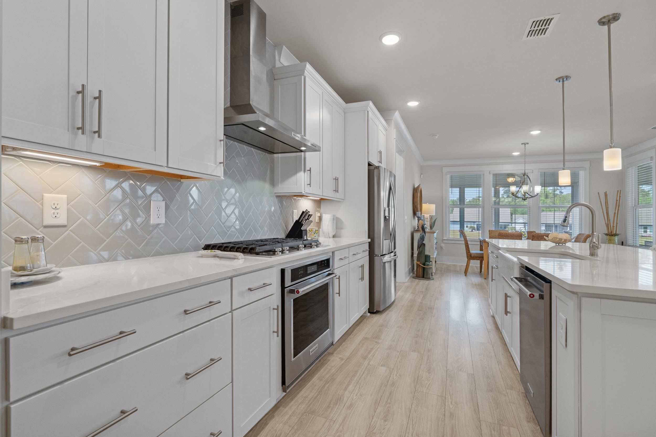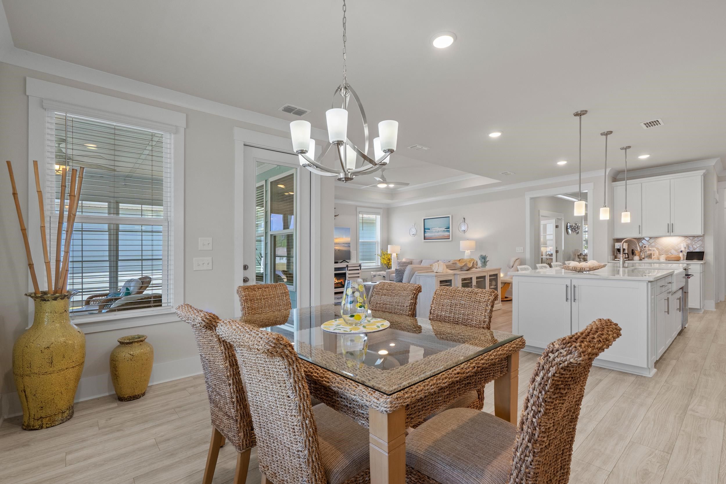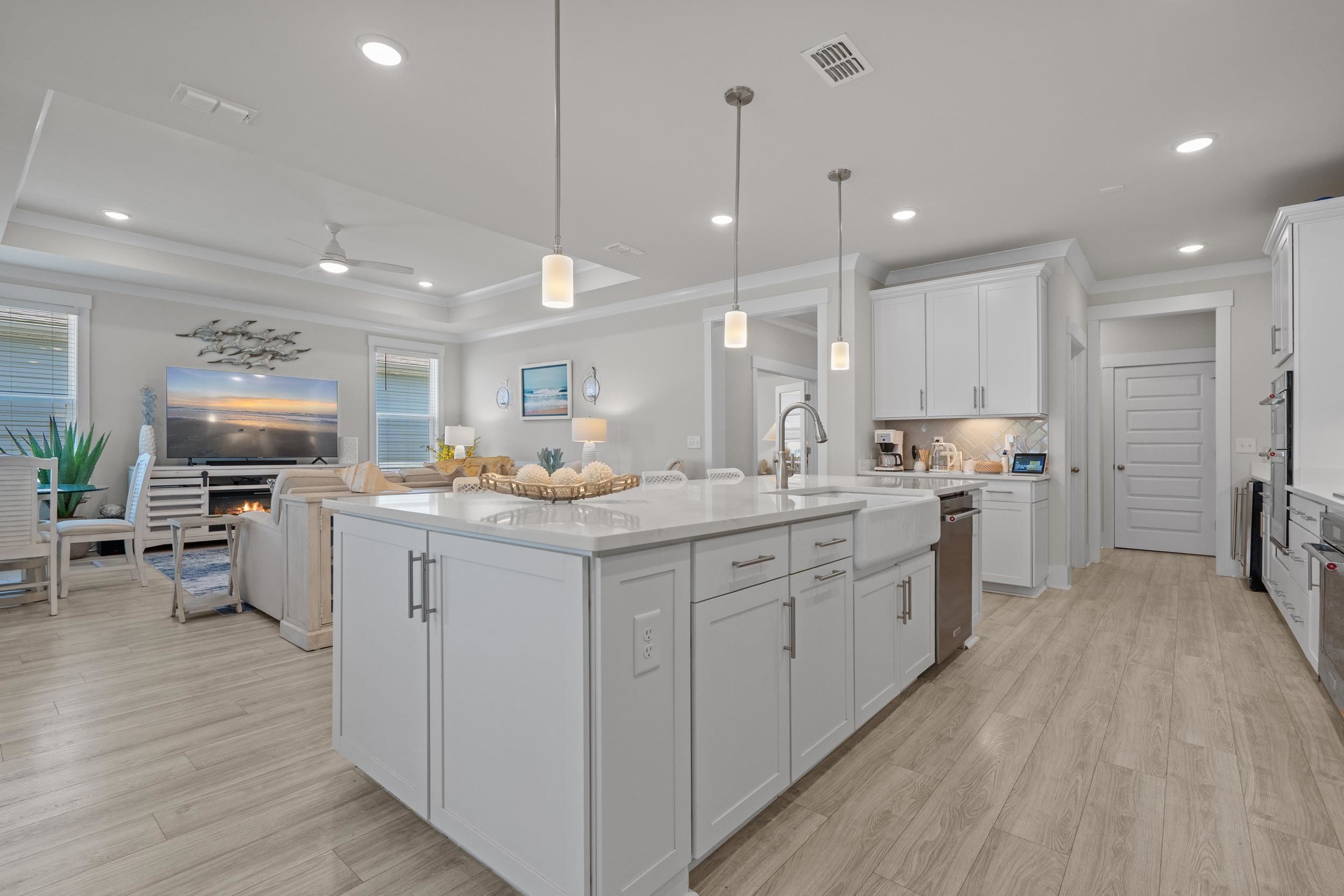 Welcome to your dream home nestled on a beautiful pond lot in the vibrant Del Webb 55+ community, just a mile from the beach! This modern, move-in ready residence was built in 2023 and boasts 3 spacious bedrooms, an office with elegant French doors, and 3.5 bathrooms, perfect for comfortable living. The home also features a spacious three-car garage for ample storage and parking, along with a charming front porch that adds to its curb appeal and provides a welcoming entrance. As you enter, you'll be greeted by an open floor plan that seamlessly connects the kitchen, living room, and dining area, all showcasing stunning views of the picturesque pond. The home is designed with crown molding, large baseboards, modern lighting, and high-quality LVP flooring throughout, providing a polished and sophisticated atmosphere. The kitchen is a chef's delight, featuring luxurious quartz countertops, an extended island with seating for four, a farmhouse sink, and top-of-the-line Kitchenaid appliances, including a gas range, double oven, and a stylish range hood. With ample storage from the extra cabinets and a walk-in pantry, this kitchen is both functional and beautiful. The kitchen is further enhanced by under cabinet lighting, adding a warm glow. Additionally, the kitchen includes a delightful coffee bar and a wine bar featuring a wine rack and a mini fridge, perfect for entertaining and enjoying your favorite beverages. The inviting dining area, conveniently located just off the kitchen, offers lovely views of the pond, creating the perfect setting for enjoying meals and entertaining guests. The primary suite is located in the rear of the home, with stunning pond views. Enjoy two walk-in closets, including one that conveniently connects to the laundry room, along with a linen closet. The luxurious primary bathroom features a large zero-entry tile shower, a separate water closet, and dual sinks. The guest bedrooms each have their own bathroom—one equipped with a tile shower and the other with a tub/shower combo—ensuring comfort and privacy. Enjoy serene pond views from the oversized E-Z Breeze lanai, where you can unwind or entertain. Outside, enjoy cooking on your gas BBQ grill, and enjoy low-maintenance living as the HOA takes care of mowing the lawn. Del Webb's community amenities enhance your living experience with a fitness center, an indoor pool, an outdoor saltwater pool, bocce courts, a putting green, and eight pickleball courts. Engage in exciting activities organized by a full-time lifestyle director. The community is golf cart-friendly and welcomes pets, ensuring a lively and inviting environment. With convenient access to dining, shopping, marinas, and medical facilities, this meticulously maintained home offers everything you need for comfort and convenience, all while enjoying a laid-back coastal lifestyle. Plus, Myrtle Beach International Airport is less than 30 minutes away, making travel a breeze. Don’t miss this opportunity to own a piece of paradise! Schedule your tour today!