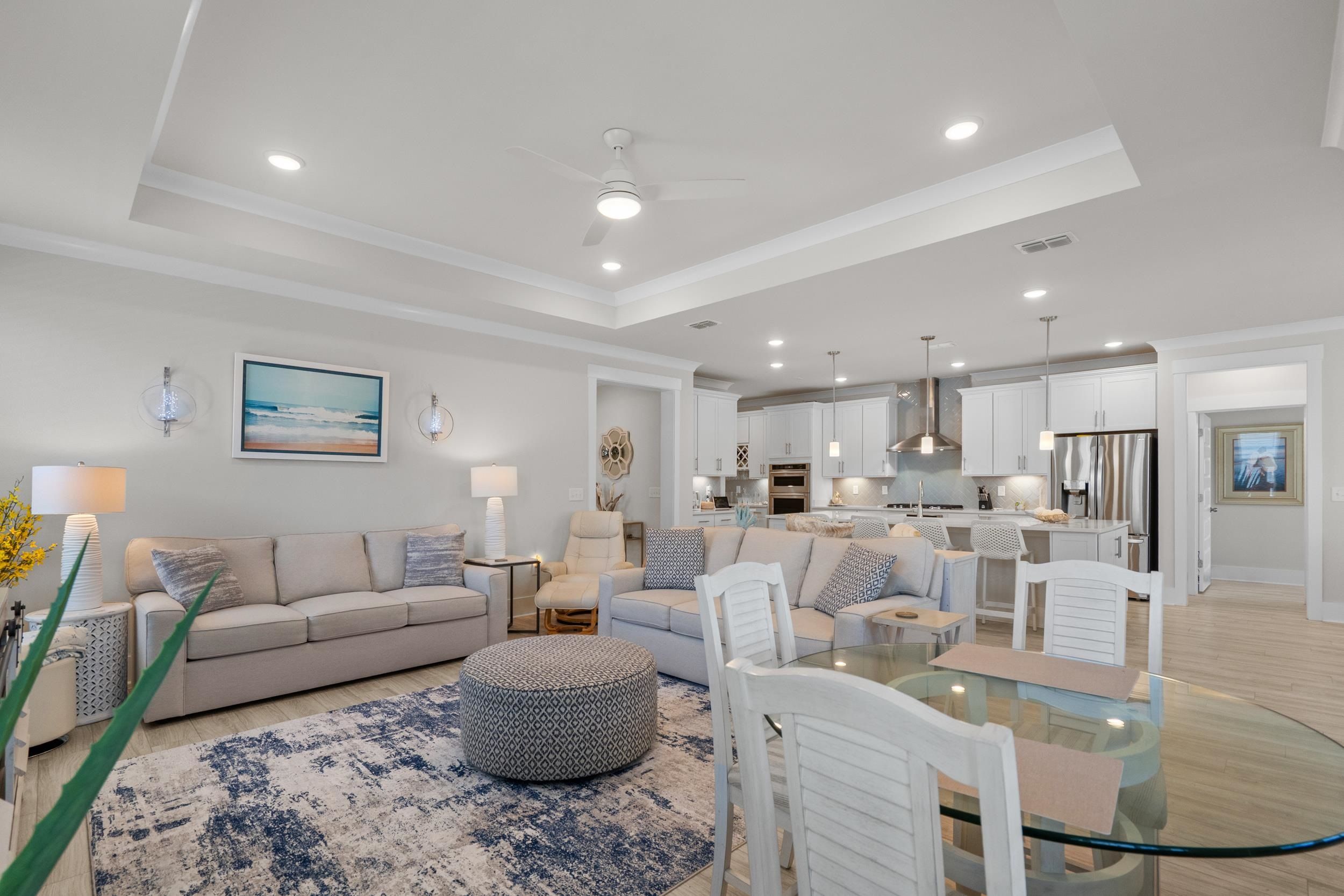 - Tray Ceiling(s), Ceiling Fan(s), Dual Sinks, LinenCloset, Main Level Primary, Split Bedrooms, Separate Shower, Walk-In Closet(s), Window Treatments, Bedroom on Main Level, Entrance Foyer, Kitchen Island, Stainless Steel Appliances