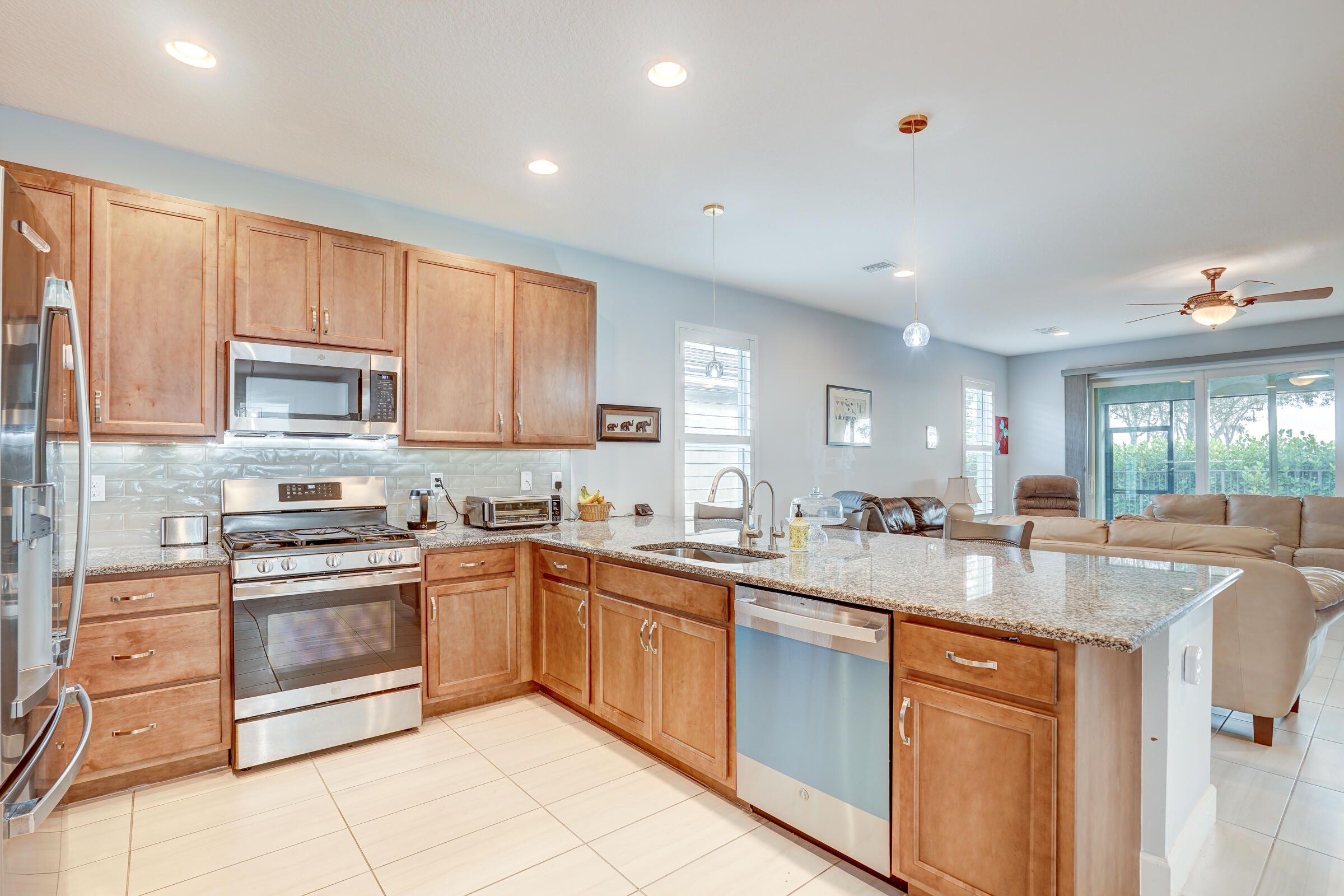 Welcome to 13388 SW River Rock in Valencia Grove at Riverland—a premier 55+ community in the heart of Tradition, just minutes from its popular restaurants, shops, and local events. Perfectly positioned backing to the Paseo/bike path, this home offers serene views and easy access for morning walks or bike rides. This thoughtfully designed home features 3 bedrooms plus a den/office (ideal as a guest room), 2.5 bathrooms, and a 2-car garage. Enjoy true indoor-outdoor living from the large screened-in patio, while plantation shutters add timeless style and privacy. The kitchen is perfect for everyday living and entertaining with a gas range, granite countertops, and 42-inch cabinets featuring pots-and-pan drawers and adjustable shelving for smart storage and organization. Additional upgrades include a gas tankless water heater for efficiency and on-demand hot water, plus added peace of mind with impact glass windows. As a Valencia Grove resident, you'll have access to resort-style amenities including a 34,000± sq. ft. clubhouse and an expansive Sports & Racquet Club with pools, fitness and wellness spaces, pickleball/tennis, and a full calendar of clubs and activities.