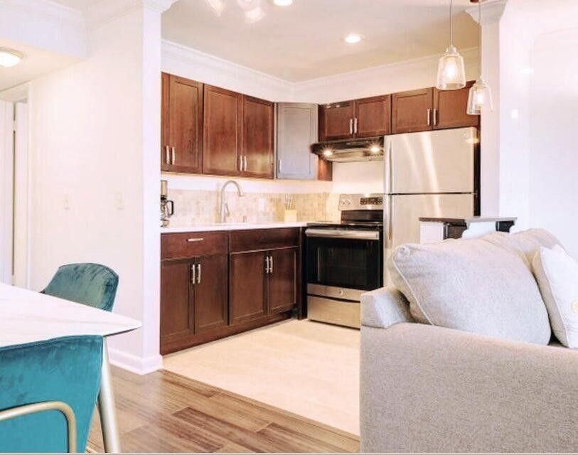 Seller Financing with as little is $5,000 down!! Now is your opportunity to own! Super flexible financing options! Join the movement and come to West Palm Beach, sipping coffee on your enclosed patio while palm trees sway and the garden glows in golden Florida light. This beautifully remodeled second-floor 1-bedroom, 1-bath condo at 134 Berkshire F is your personal slice of paradise in Century Village's premier 55+ gated community - and it's move-in ready for the season! Step inside a bright, open-concept retreat with gorgeous wood-look flooring flowing throughout, a brand-new 2024 A/C to keep you cool, a chef-worthy kitchen boasting stainless steel appliances, granite counters, a breakfast island, and sleek upgraded lighting, plus a fully updated modern bathroom. Relax or entertain on your private enclosed patio overlooking serene, lush garden views - the perfect spot to enjoy holiday lights twinkling across the greenery. The building itself shines as brightly as the holidays: a brand-newer roof (only 3 years old), freshly updated 2024 exterior walkways and railings, and impeccable maintenance that makes Berkshire F one of the prettiest in the Village. (Note: peaceful owner-occupied living only - no rentals allowed, and it's an easy second-floor walk-up with no elevator.) Beyond your door, Century Village sparkles with resort-style joy year-round: a 1,200-seat theater hosting holiday shows, heated pools for winter dips, fitness centers, tennis, pickleball, clubs, dances, and free community buses to whisk you to Worth Avenue's festive windows, CityPlace holiday markets, or the beach just 15 minutes away. Leave the coats and boots behind - your South Florida winter wonderland awaits, wrapped up and ready for you at 134 Berkshire F. Make this holiday the one you never have to shovel again!
