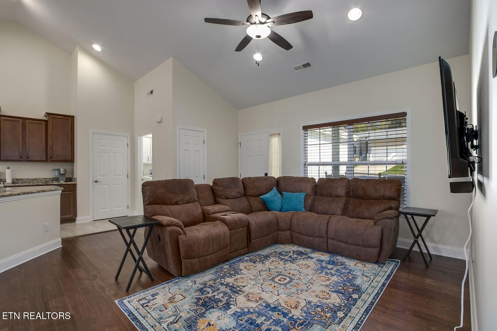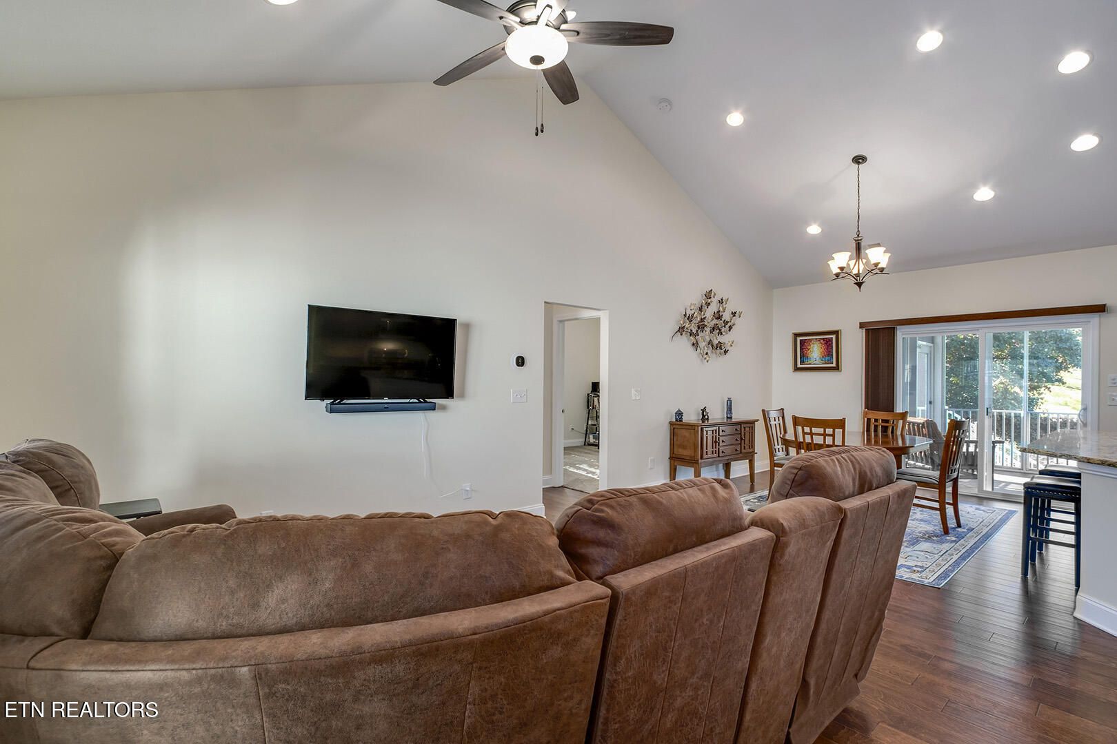 Welcome to this beautifully crafted home built in 2017, offering a perfect blend of comfort, functionality, and stunning golf course views. This 3-bedroom, 2-bath home is ideally positioned to overlook the driving range, creating a serene backdrop for everyday living. Step inside to find a spacious open-concept layout featuring gleaming hardwood floors that flow through the living and dining areas. The inviting living space opens seamlessly to the kitchen—perfect for entertaining family and friends. The kitchen boasts a large center island, stainless steel appliances, and plenty of workspace for the home chef. The split-bedroom floor plan ensures privacy for the primary suite, which features a lovely tray ceiling, ensuite bath with a water closet, and a generous walk-in closet. Enjoy your mornings or evenings on the screened porch with low-maintenance Trex decking, or step out onto the newly added expanded Trex deck—ideal for outdoor dining or simply taking in the views. Storage and convenience abound with an oversized two-car garage plus a dedicated golf cart storage area on the lower level, complete with a concrete pad. This home is truly move-in ready and offers incredible value in one of Tellico Village's most desirable settings. Come experience relaxed living and the beauty of East Tennessee golf course life!