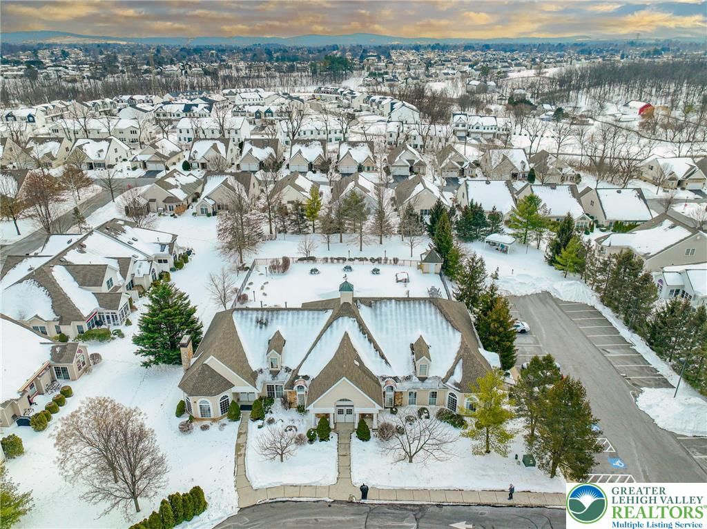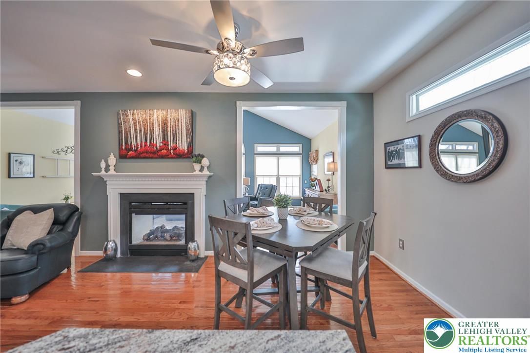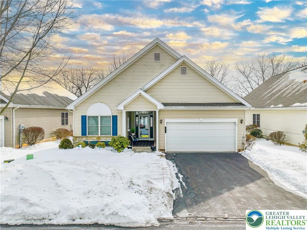 Enjoy a low maintenance lifestyle in a premier 55+ community. Imagine waking each morning in a home that feels like a private retreat—where sunlight pours through a dramatic wall of windows, hardwood floors gleam beneath soaring cathedral ceilings, and every detail reflects thoughtful design and refined taste. From the moment you enter the foyer, adorned with raised panel molding, the home sets a tone of timeless elegance. Rich hardwood floors guide you into a breathtaking open-concept living and family room where a striking dual-sided fireplace anchors the space, creating warmth and ambiance for intimate evenings or lively gatherings. The renovated kitchen is as beautiful as it is functional—ready to host everything from quiet morning coffee to holiday celebrations. French pocket doors reveal a private office, offering a refined and peaceful space for reading, working, or pursuing your passions. The primary suite is a sanctuary unto itself. Unwind in the spa-inspired bath featuring a luxurious jacuzzi tub, dual vanity sinks, and a glass-enclosed shower—designed for relaxation at the end of every day. A well-appointed guest bedroom ensures family and friends feel equally at home. The full walk-out basement is a great bonus. NEW ROOF 2025, NEW KITCHEN AND NEW APPLIANCES 2022. Beyond your doorstep, a newly renovated clubhouse elevates everyday living with resort-style amenities including a pool, fitness center, and vibrant social spaces that foster connection and community.