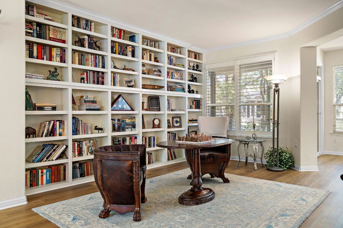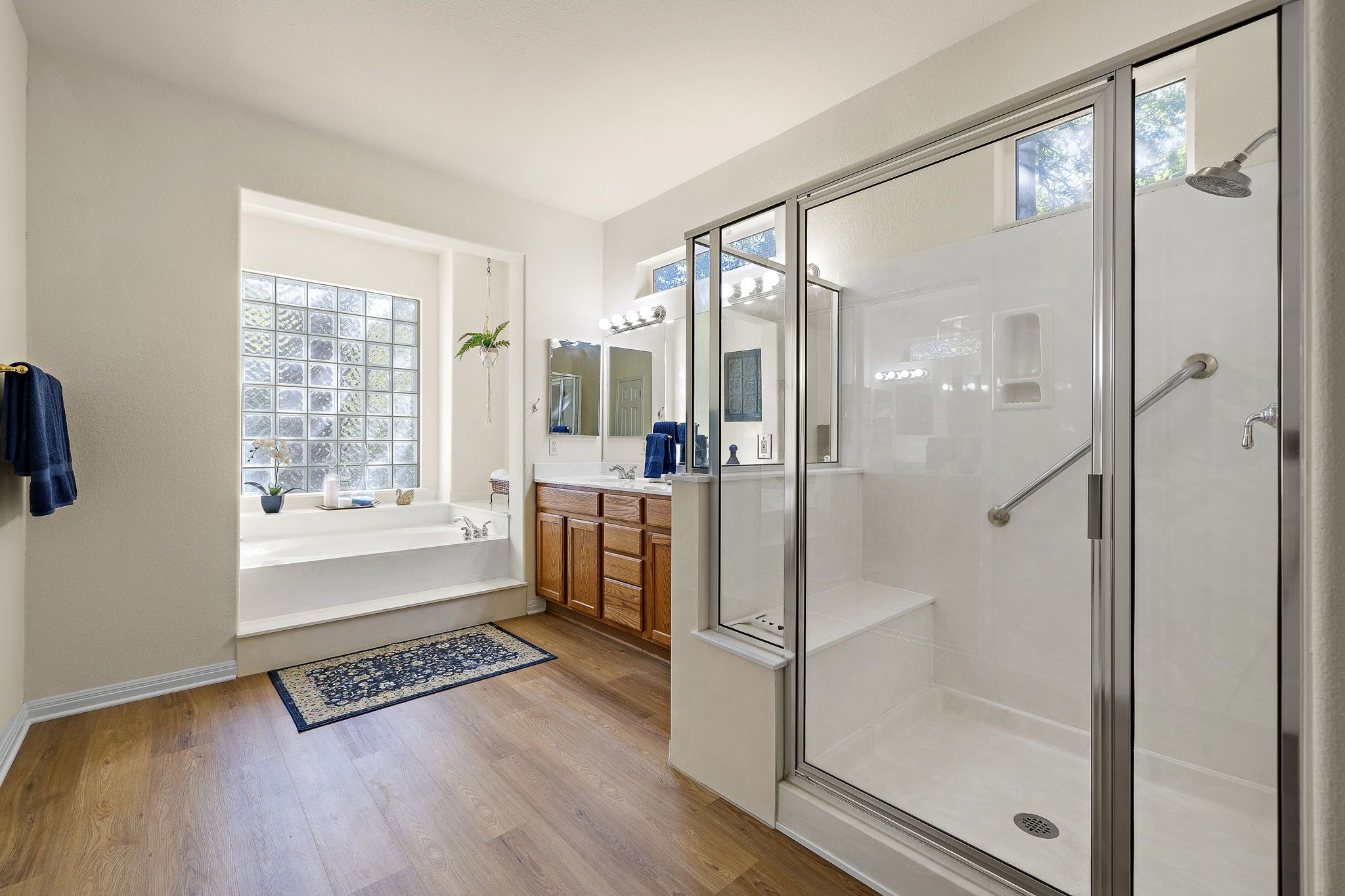 Welcome Home to This Stunning Travis Floor Plan on Great Frontier Dr Ideally situated in a beautiful, centrally located neighborhood, this Del Webb–built home offers refined finishes, thoughtful updates, and an inviting layout designed for comfort and style. High ceilings, crown molding, and custom built-ins create a warm and elegant atmosphere from the moment you step inside. Enjoy cohesive, low-maintenance luxury vinyl plank flooring throughout the home—no carpet anywhere—with tile in select areas for durability and easy care. The kitchen shines with new quartz countertops, updated lighting, and refreshed door and cabinet hardware. Most appliances are new or recently replaced, making the space both modern and functional. Additional storage is abundant, with built-in cabinetry in both the garage and laundry room. Outdoor living is just as impressive: relax on the screened back porch or entertain on the extended stone patio overlooking the yard. The spacious primary suite offers a peaceful retreat, featuring dual vanities, a private water closet, a separate shower, and a luxurious soaking tub. The large great room is perfect for gatherings, complete with a cozy gas log fireplace as its centerpiece. This beautifully maintained home blends quality, comfort, and convenience—ready for you to move in and enjoy.
