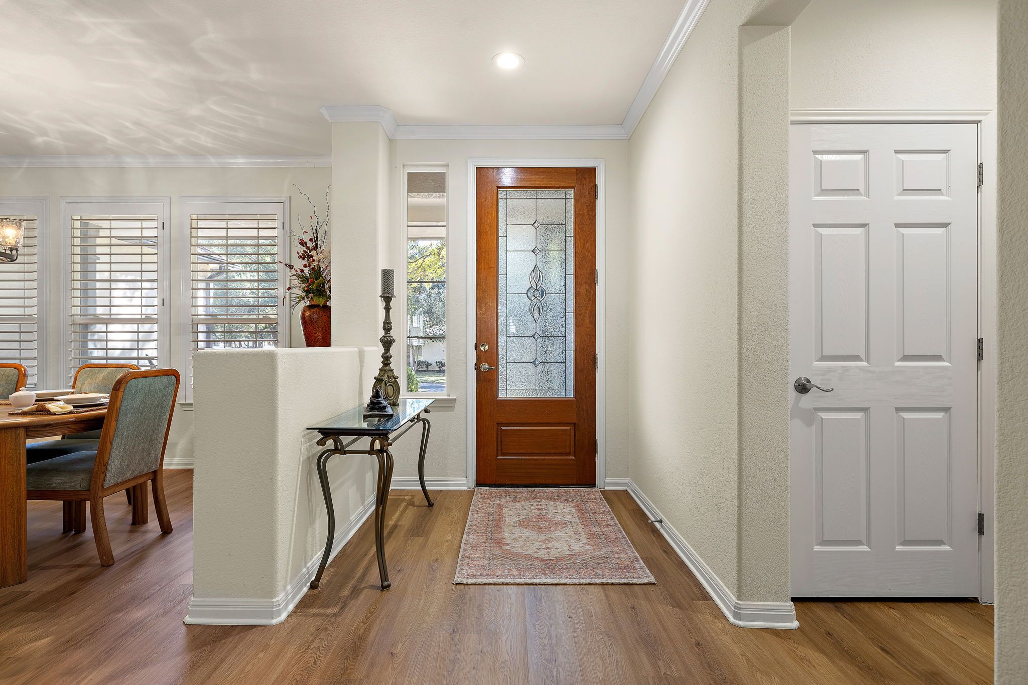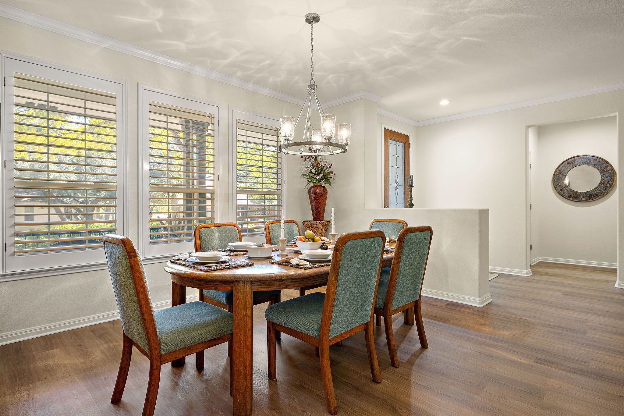 - Breakfast Bar, Crown Molding, Separate/Formal Dining Room, High Ceilings, Multiple Living Areas, Multiple Dining Areas, Main Level Primary, Walk-In Closet(s)