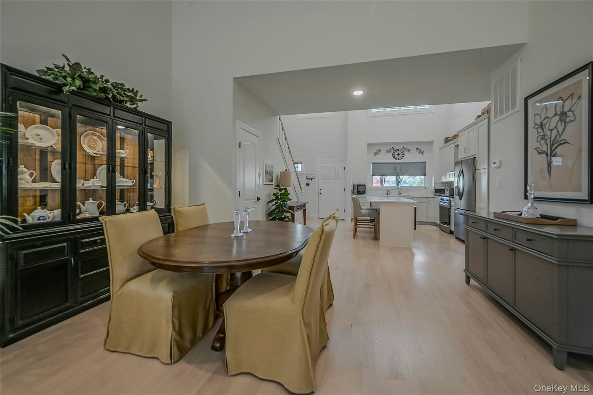 Welcome to 134 Halley Drive located in beautiful Vineyards at Brookfield Center Moriches. A peaceful 55+ development with impeccable landscaping, a refreshing community pool and a classy club house that brings the community together with endless activities. Aside from its own private driveway leading into the 1 car garage, there is plenty of guest parking if you decide to entertain. Enter in to a home that is tastefully decorated with just enough of a touch to give the home warmth. Being sold by the original owners, they chose all B level upgrades when the unit was built, meaning there is nothing standard in this home. A fabulous open floor plan… the kitchen has a large center island. All counters are Lusso Silestone Quarts with a beautiful extended window sill. SS Frigidaire appliances (2021) Dishwasher (2024) Kohler sink, ceramic by Armond flooring and Hunter Douglas wooden shades covering the sunlit windows. High hats already have the converted parts to replace with hanging light fixtures. The kitchen flows into the dining room then into the bright open living room with soaring ceilings 25 ft at the highest points open to the second floor. The upgraded sideline & additional transom windows above the back slider door brings in abundance of nature sunlight yet the room darkening curtains can be drawn for a more relaxed mood. Prior to entering the primary suite, you pass the laundry area with Electrolux washer and dryer and a guest bathroom. The primary suite has a walk-in closet and a large bathroom with a new Ferguson toilet & frameless glass door shower. Head upstairs and over the balcony which overlooks the living room, dining room, and kitchen and where you’ll find 2 additional bedrooms and a full bathroom. There are endless possibilities in the full basement with egress window and high ceilings. The HVAC system was upgraded with a home humidifier. You’ll find extra outlets in the garage. Sterling Cabinets, Kohler Sinks, Silestone Counters, Ceramic by Armond flooring, CAC, the list goes on. Stop in, take a look… it’s a beautiful place to call home.