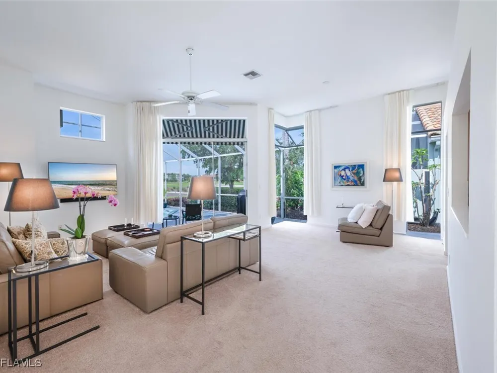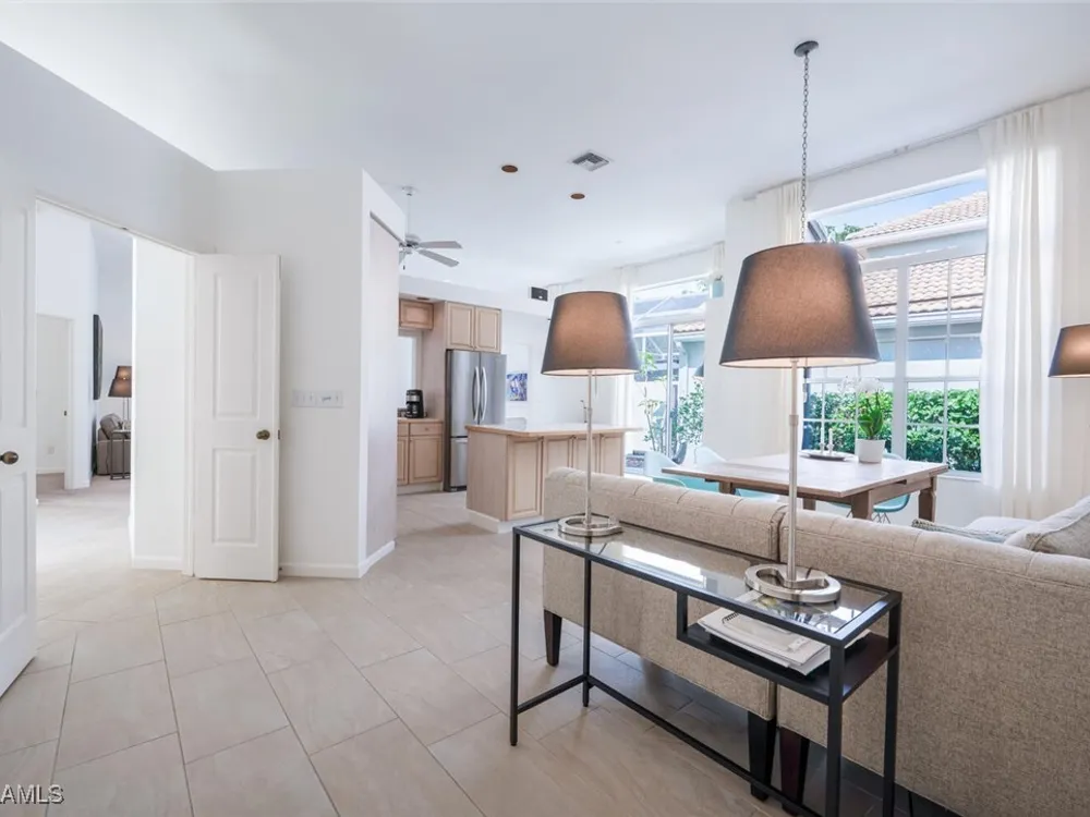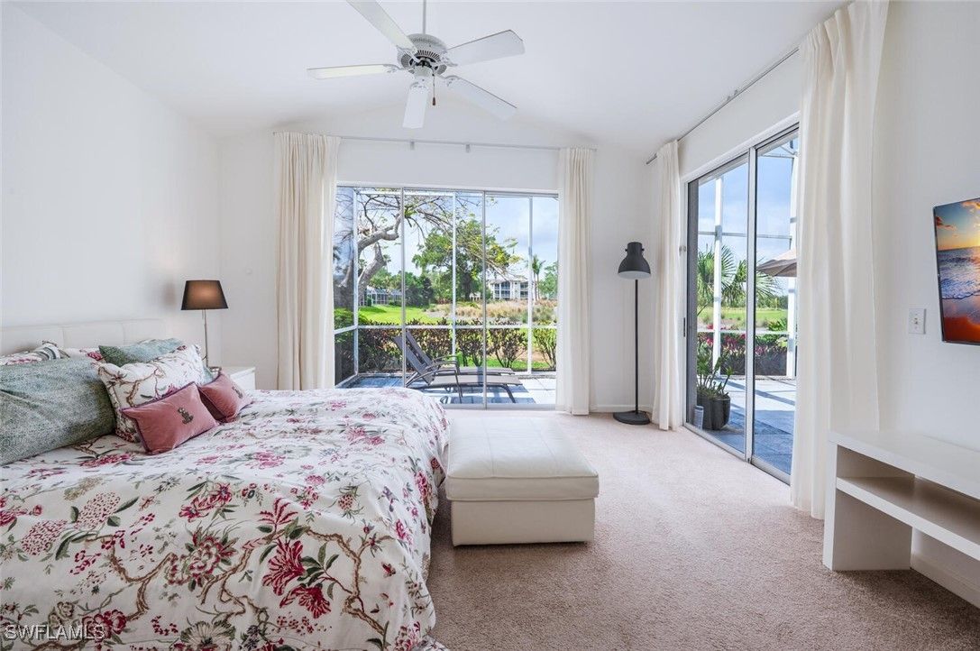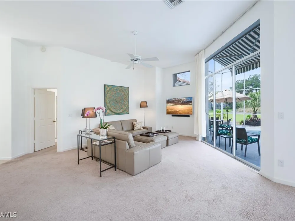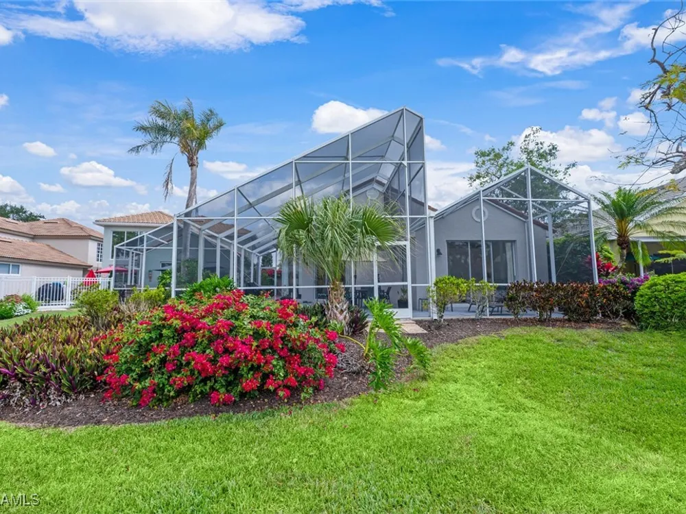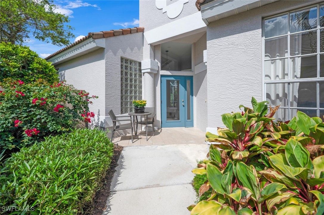 Stunning panoramic views!! Relax and enjoy the peaceful long vistas of the 14th hole! This lovingly maintained seasonal home was originally designed as a model home. Sunlight reflects into all the rooms making this an exceptionally bright home with an inviting floor plan. Vineyards residents take delight with the beautiful landscaping, walking paths and majestic oak tree canopies. Owner upgrades include the tile roof installed in 2018, premium Kitchen Aide stainless steel appliances in the kitchen, tile floors, epoxy garage floor, and the redesigned laundry room complete with a washer and dryer, extra storage and a wet sink. The quality Turnkey furniture package and décor were thoughtfully selected from the Arhaus and Ikea brands. Outstanding maintenance features are included in the association fees. Homes in San Rafael are painted every 8 years while the roofs and the driveways are power washed annually. Additionally, a concrete parking pad is adjacent to the double driveway providing an extra parking space to accommodate guests. Vineyards Country Club offers optional Full or Lifestyle Memberships. This allows residents to select and experience their preferred amenities. San Rafael is located a short drive from Naples picturesque beaches, upscale shops and restaurants, parks, health care facilities and major highways. Vineyards and San Rafael present an ideal opportunity for either a weekend retreat or a permanent residence.