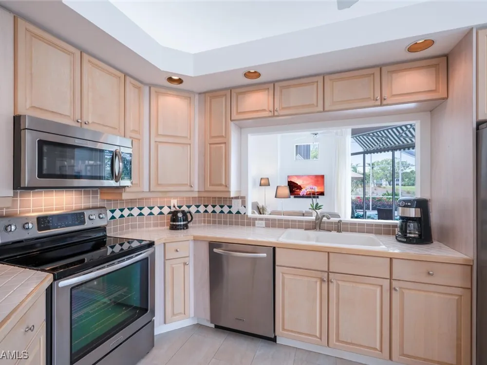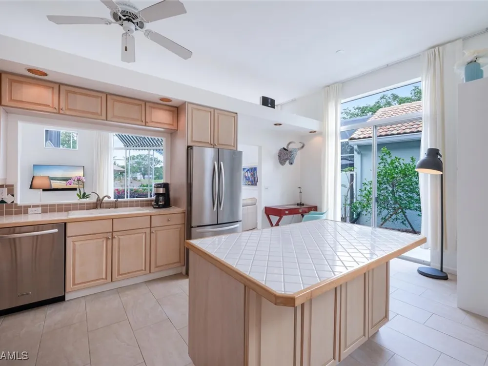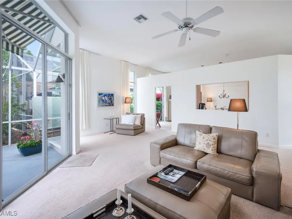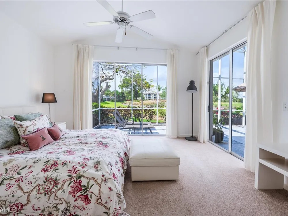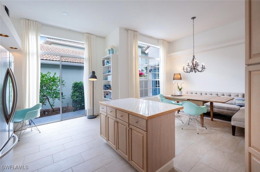 Stunning panoramic views!! Relax and enjoy the peaceful long vistas of the 14th hole! This lovingly maintained seasonal home was originally designed as a model home. Sunlight reflects into all the rooms making this an exceptionally bright home with an inviting floor plan. Vineyards residents take delight with the beautiful landscaping, walking paths and majestic oak tree canopies. Owner upgrades include the tile roof installed in 2018, premium Kitchen Aide stainless steel appliances in the kitchen, tile floors, epoxy garage floor, and the redesigned laundry room complete with a washer and dryer, extra storage and a wet sink. The quality Turnkey furniture package and décor were thoughtfully selected from the Arhaus and Ikea brands. Outstanding maintenance features are included in the association fees. Homes in San Rafael are painted every 8 years while the roofs and the driveways are power washed annually. Additionally, a concrete parking pad is adjacent to the double driveway providing an extra parking space to accommodate guests. Vineyards Country Club offers optional Full or Lifestyle Memberships. This allows residents to select and experience their preferred amenities. San Rafael is located a short drive from Naples picturesque beaches, upscale shops and restaurants, parks, health care facilities and major highways. Vineyards and San Rafael present an ideal opportunity for either a weekend retreat or a permanent residence.
