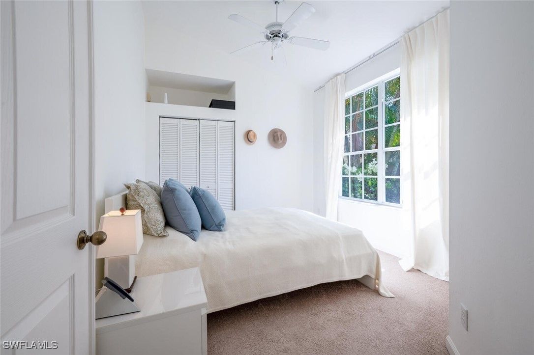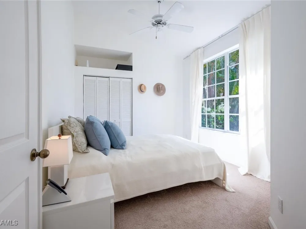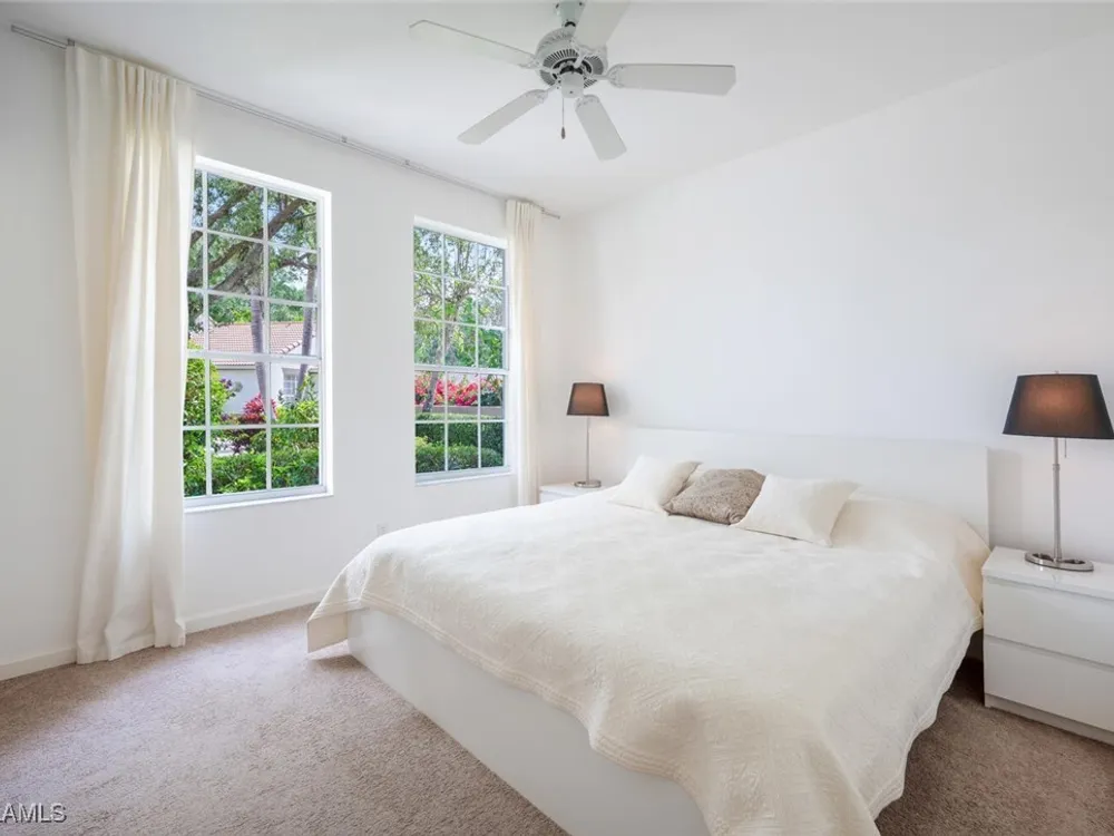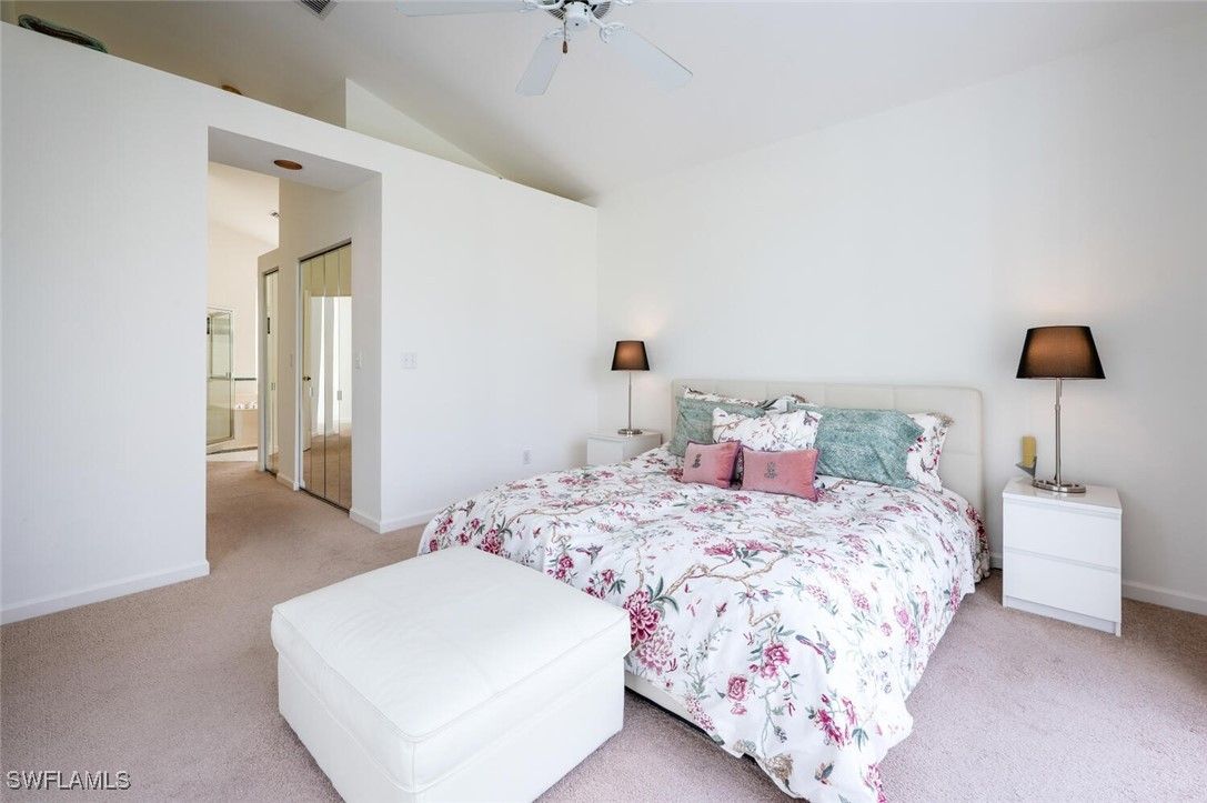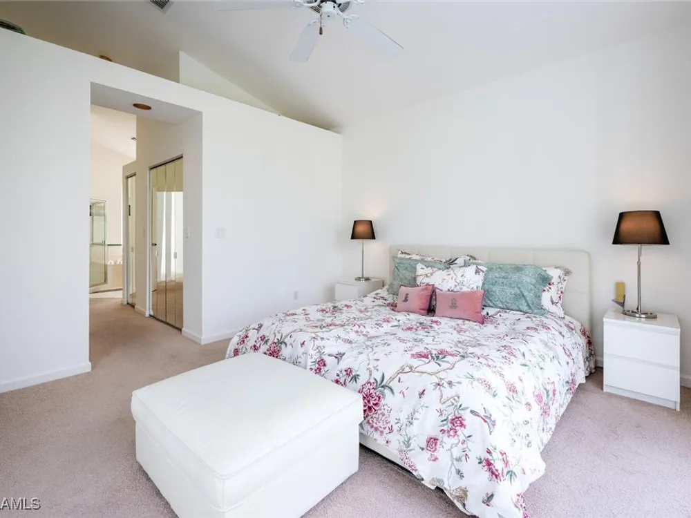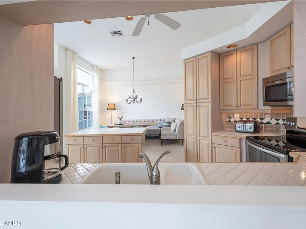 Stunning panoramic views!! Relax and enjoy the peaceful long vistas of the 14th hole! This lovingly maintained seasonal home was originally designed as a model home. Sunlight reflects into all the rooms making this an exceptionally bright home with an inviting floor plan. Vineyards residents take delight with the beautiful landscaping, walking paths and majestic oak tree canopies. Owner upgrades include the tile roof installed in 2018, premium Kitchen Aide stainless steel appliances in the kitchen, tile floors, epoxy garage floor, and the redesigned laundry room complete with a washer and dryer, extra storage and a wet sink. The quality Turnkey furniture package and décor were thoughtfully selected from the Arhaus and Ikea brands. Outstanding maintenance features are included in the association fees. Homes in San Rafael are painted every 8 years while the roofs and the driveways are power washed annually. Additionally, a concrete parking pad is adjacent to the double driveway providing an extra parking space to accommodate guests. Vineyards Country Club offers optional Full or Lifestyle Memberships. This allows residents to select and experience their preferred amenities. San Rafael is located a short drive from Naples picturesque beaches, upscale shops and restaurants, parks, health care facilities and major highways. Vineyards and San Rafael present an ideal opportunity for either a weekend retreat or a permanent residence.