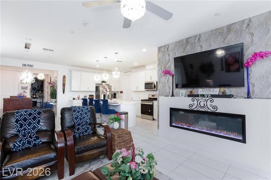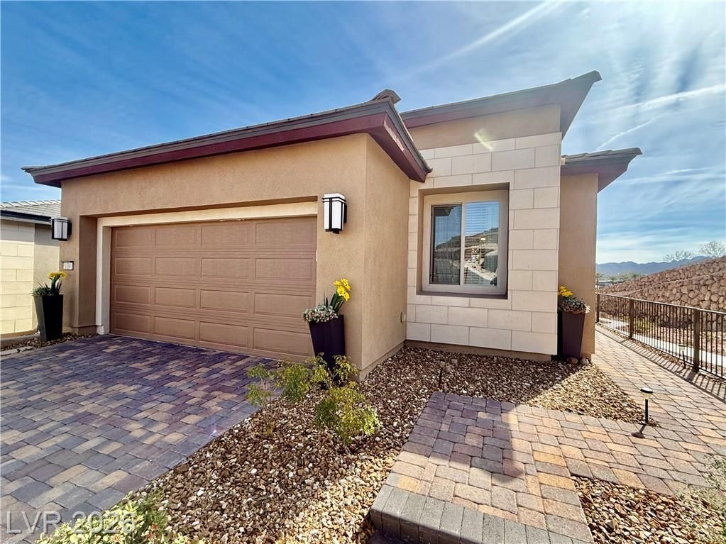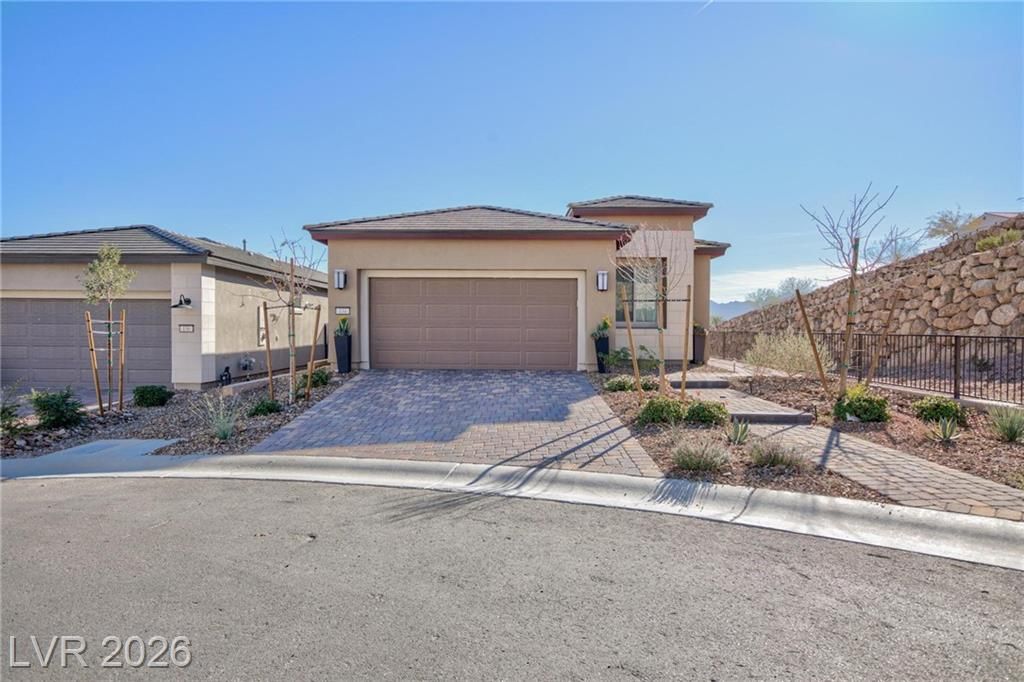 Lowest priced move-in ready home in Del Webb Lake Las Vegas. Built October 2024. No wait. No construction delays. Immediate occupancy.Luxury, lifestyle, and sweeping mountain and lake views define this modern retreat, perfectly positioned on an elevated private corner lot on one of the few nearly completed streets in the community. This home showcases refined upgrades and designer finishes throughout. The stunning family room is anchored by a cozy fireplace, wall-mounted TV, and expansive windows framing mountain, lake, and glowing sunset views.This home offers a bright open layout, elegant details, a completely finished backyard retreat, and low-maintenance landscaping. Optional furnishings create full-time living or a seasonal escape.Enjoy the premier Del Webb Lake Las Vegas lifestyle with resort-style pools, state-of-the-art fitness center, tennis and pickleball courts, award-winning golf nearby, and a vibrant social calendar. 2-car garage. Exceptional value. Ready now.