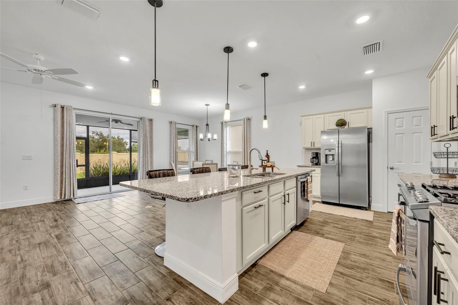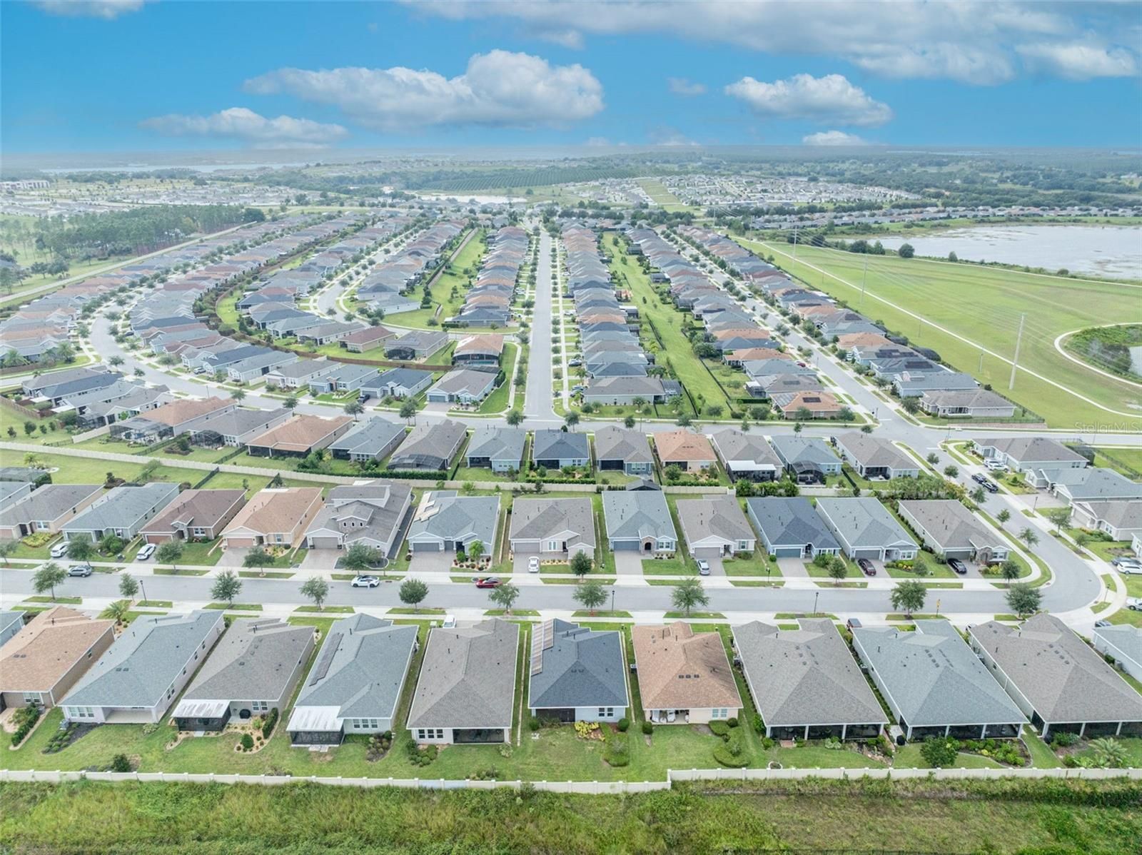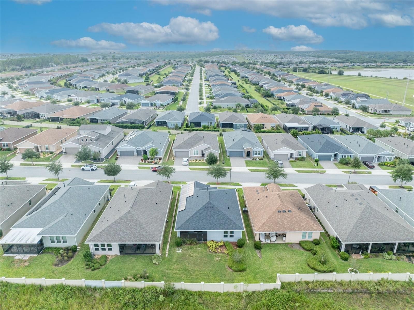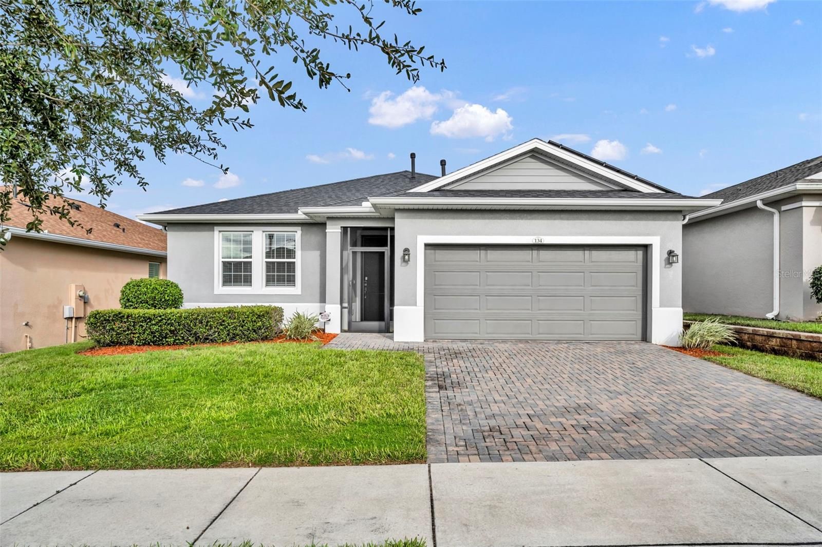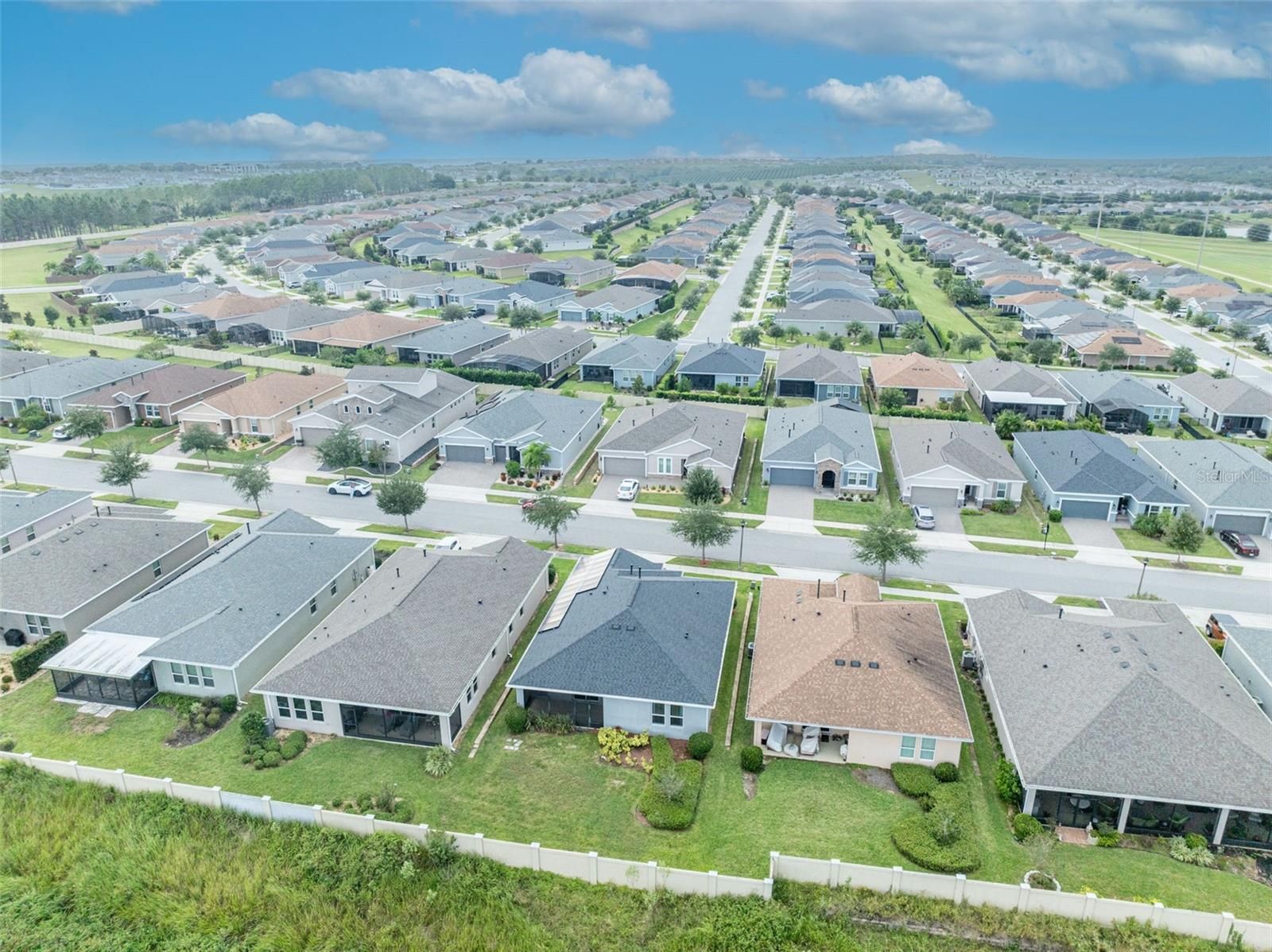 One or more photo(s) has been virtually staged. Welcome to 134 Silver Maple Road in Groveland’s sought-after Trilogy 55+ community. This beautifully maintained Affirm model offers 3 bedrooms, 2 bathrooms (Public records differ, one room does not have a door or a closet but can be used as a versatile office/flex room, perfect for a home office, den, or guest bedroom). Step inside to an open and inviting floor plan filled with natural light. The spacious kitchen is a true centerpiece, featuring soft close cabinets, a large island with additional seating accompanied with designer bar stools, ideal for casual dining or entertaining. The kitchen flows seamlessly into the dining and living areas, creating a comfortable space for both daily living and hosting guests. The laundry room has been thoughtfully upgraded with additional cabinetry and a full pantry for extra storage and organization. The primary suite provides a private retreat with a spacious layout and well-appointed en-suite bath. Enjoy Florida living year-round from the screened lanai, thoughtfully upgraded with a retractable sunshade on the screens for comfort and privacy. The backyard offers a stucco fence wall to separate you from wooded/pasture view. Drapes and rods throughout the home will convey, adding style and convenience for the new owner. Additional upgrades include: Whole-home surge protector for peace of mind, SOLAR PANELS offering energy efficiency and long- term savings. This low-maintenance home is move-in ready and located within a resort-style, gated community featuring a clubhouse, 3 tennis courts ad up to 7 pickleball courts, pool, fitness center, social clubs, and golf cart accessibility. Don’t miss the opportunity to make this welcoming home yours. Schedule your private showing today!