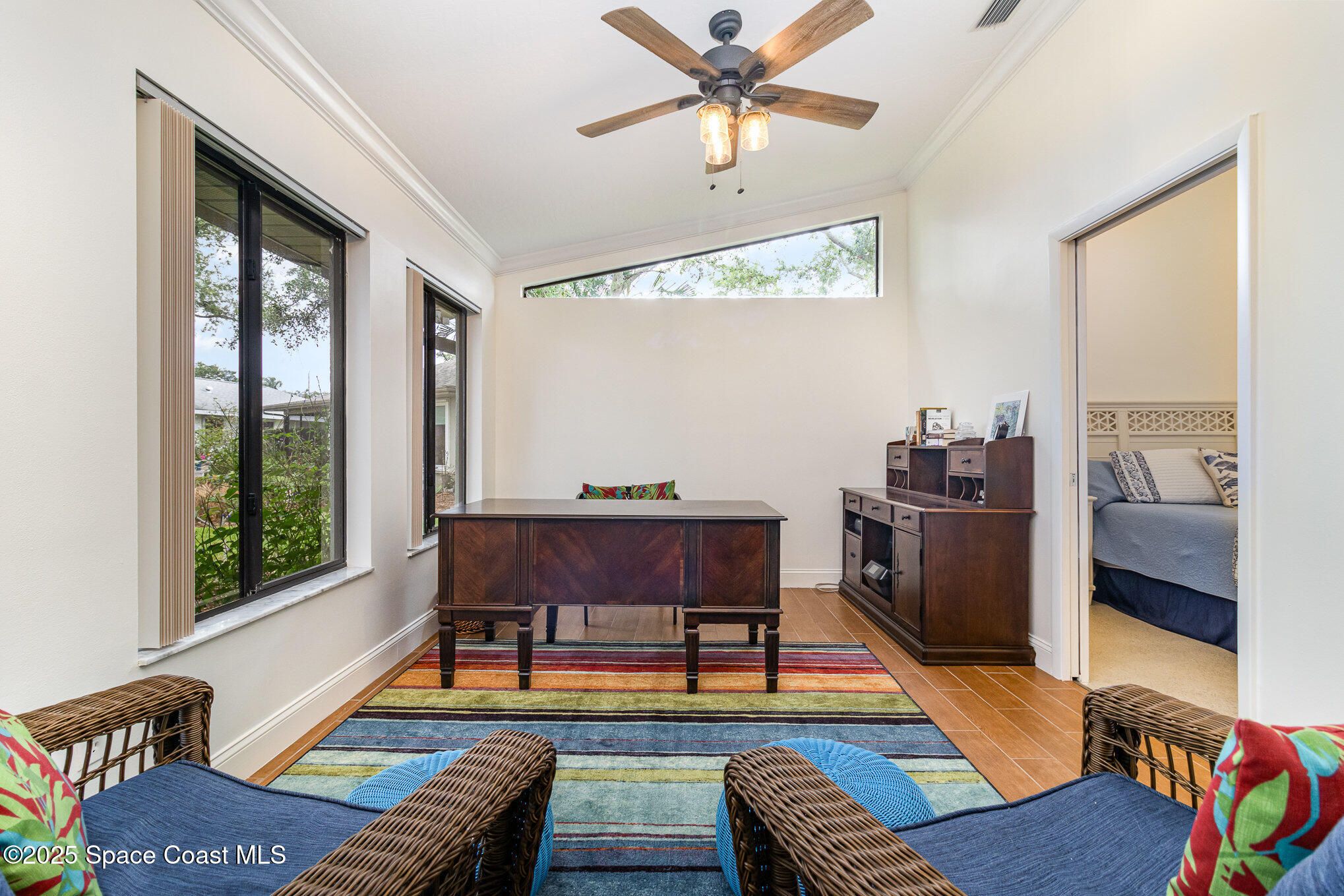 Located in a resort-style country club community, offering top-notch amenities for an exceptional Florida lifestyle. Step into a grand entryway featuring elegant double doors, wood-look porcelain tile flooring, vaulted ceilings, and refined crown molding. The upgrades continue into the expanded kitchen, showcasing granite countertops and ample space for culinary creativity. A bonus office space provides added flexibility for work or hobbies. Perfect for entertaining or simply unwinding, this spacious home offers stunning panoramic views of both the tranquil water and golf course. Enjoy your morning coffee or evening sunsets from the screened lanai, where the peaceful scenery creates the perfect backdrop for everyday living.