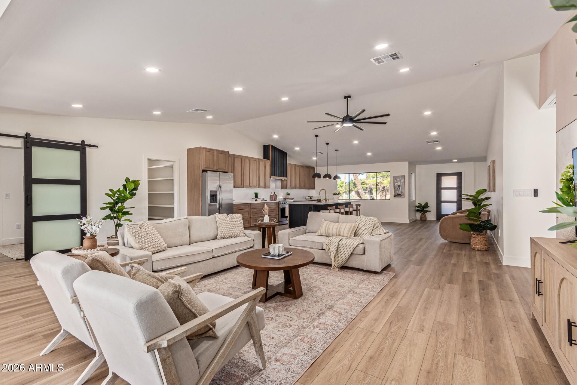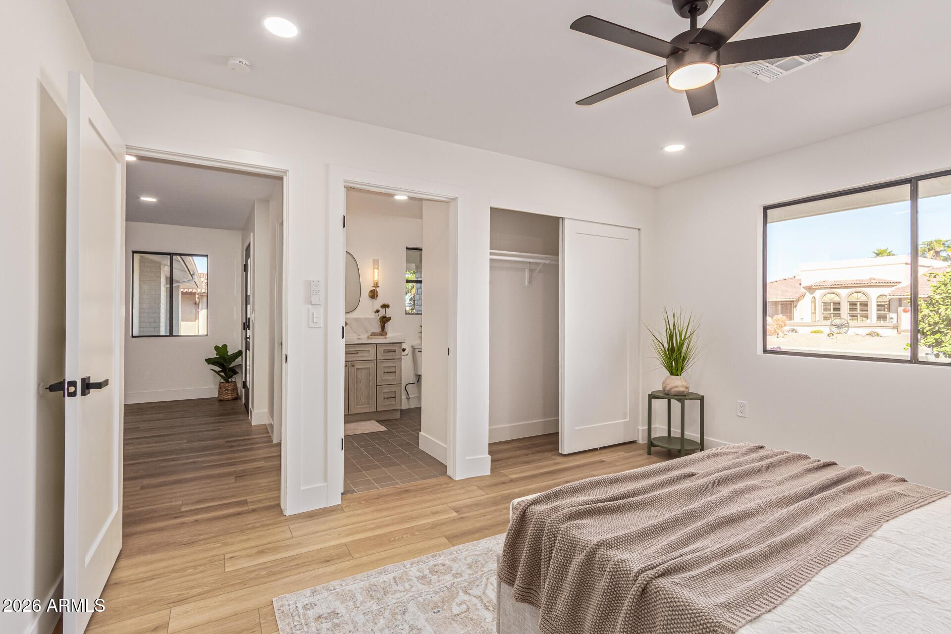 E X Q U I S I T E Golf Course Residence. Inside, you'll find a perfectly flowing layout showcasing clean lines in favor of a sleek & modern design. Soothing palette, recessed lighting t/o, & wide plank vinyl flooring are features you'll love! The stunning New kitchen boasts quartz counters, natural oak shaker cabinets, SS custom appliances, pendant lighting, under cabinet plugs & large custom island. End your busy day in one of the Two primary luxurious master suites. Lavish spa-like bathrooms, custom vanities, expansive custom showers with large rain shower heads. Large custom closets in each room. Spend relaxing afternoons in the expansive backyard, plenty of space for entertaining! N/S Exposure. Endless views.... This home is a 10!!!