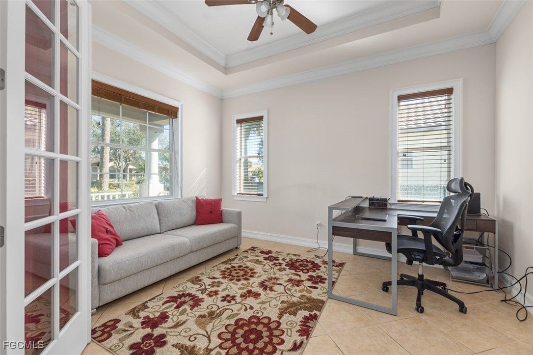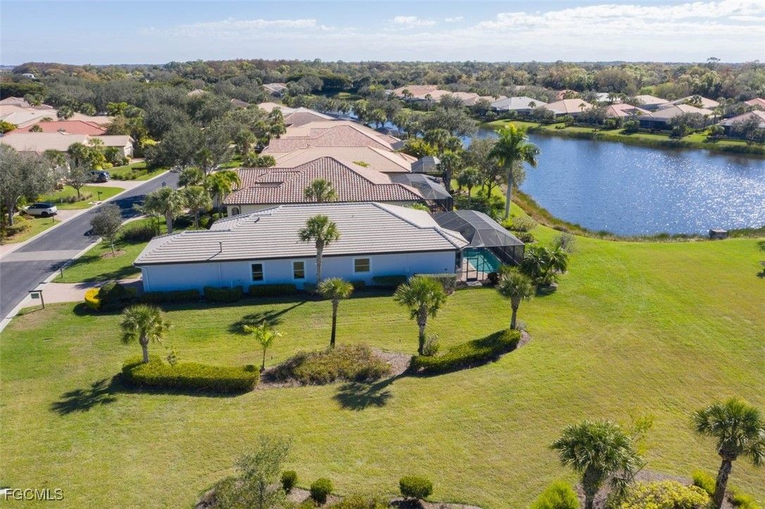 Well maintained home with a NEW ROOF and FRESH EXTERIOR PAINTING. This home features 3 BEDROOM, a den and 2 full bathrooms. All three bedrooms had the carpeting replaced with wood and the OPEN FLOOR PLAN has a trayed ceiling, crown molding and is great for entertaining. The kitchen has stainless steel appliances, granite counter and upgraded wood cabinets. Situate on a LARGE LOT, you can enjoy your heated pool and hot tub as you relax taking in the beautiful view of a fresh water lake. Verandah has created a wonderful lifestyle with two 18-hole championship golf courses, tennis courts, a state-of-the-art fitness center, a community pool, pickleball and bocce ball courts...even a Doggy Park for man's best friend. For those who love the outdoors, how about venturing out and KAYAK on the adjacent ORANGE RIVER, or go for a nice bike ride or walk on the 9+ miles of trails? Verandah is conveniently located to Downtown Ft Myers, the Caloosahatchee River, and both the Ft Myers and Punta Gorda Airports. PRICES HAVEN'T BEEN THIS LOW IS A LONG TIME. NOW IS THE TIME TO TAKE ADVANTAGE OF OPPORTUNITIES LIKE THIS.