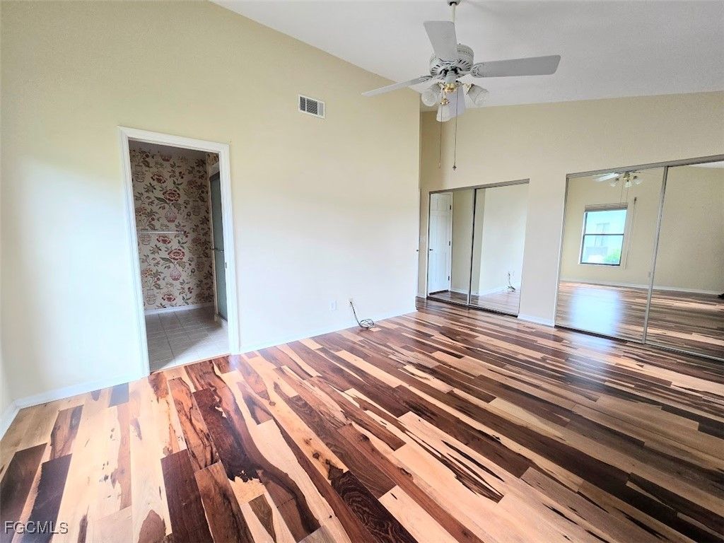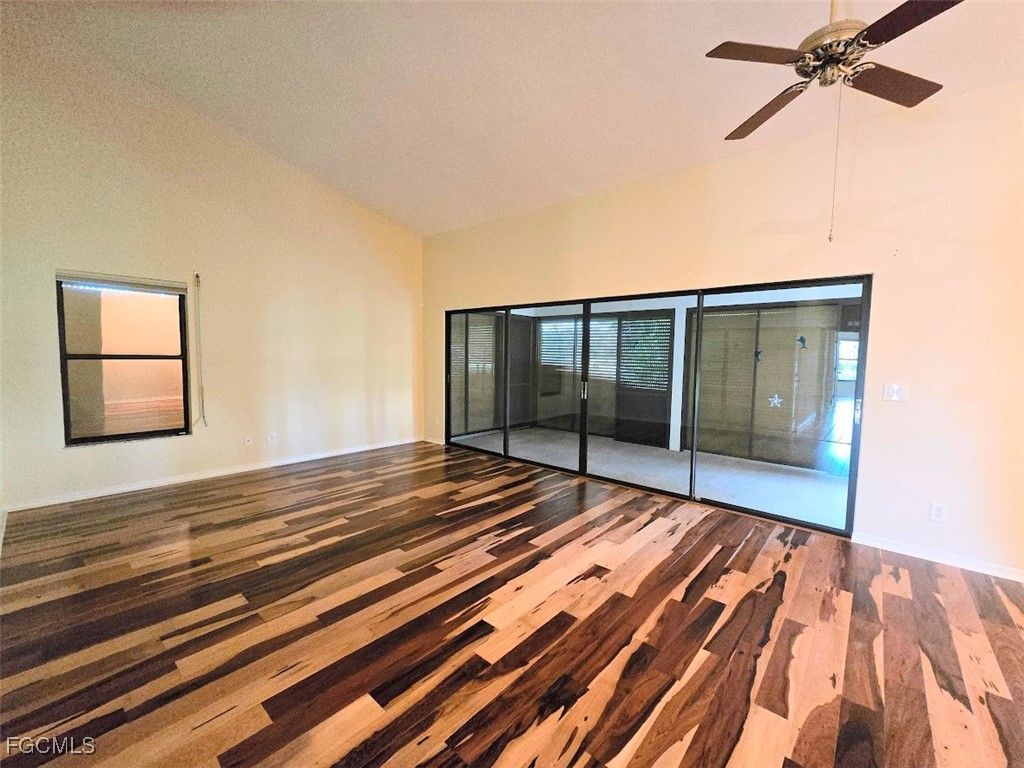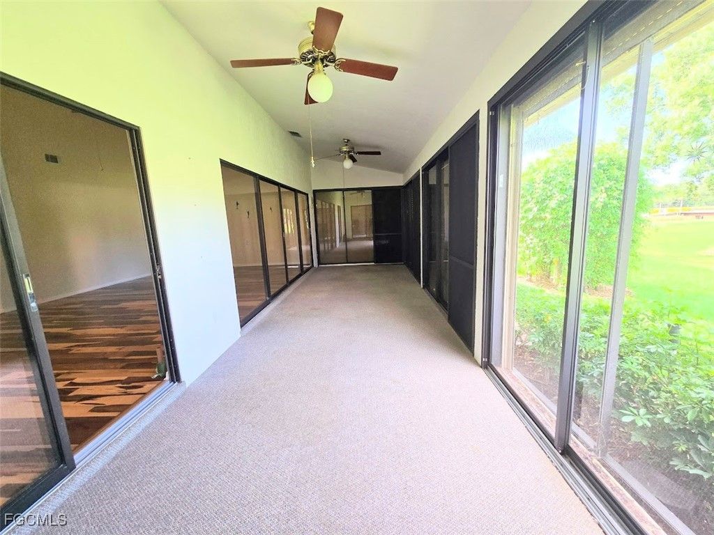 Enjoy panoramic golf course views with a direct sightline to the 4th green through floor-to-ceiling sliders in the great room and floor to ceiling sliding windows on the lanai. This attached villa is located in the highly sought-after Cross Creek Country Club, not located in a flood zone and has a bundled golf membership! This spacious layout has an open floorplan: 2 generous size bedrooms (each with their own bathroom) + large den (which is currently being used as a formal dining room) w/a woodburning fireplace & French doors and a half bathroom. The owner's bedroom has an ensuite bathroom with dual sinks & shower w/grab bars. The huge kitchen has plenty of cabinets and counter space, a built-in desk and Bosch stainless steel appliances that were lightly used. NEWER: Metal Roof (2023), A/C (2024 w/warranty), Appliances (2023), Washer & Dryer (2014) & Garage Door Opener (2023). Rich Brazilian Pecan Wood floors flow into Mexican Tile flooring throughout home. The glass enclosed lanai runs almost the entire width of the villa. The laundry room has a Samsung washer & dryer, lots of cabinetry and a utility sink. The garage is large and has plenty of room for two cars and storage. The front windows of the villa & covered screened entry have decorative iron bars that give the villa a true mediterranean look. This subdivision has the best bundled golf value around and the low fee includes exterior maintenance of villa including roof, painting, landscaping, irrigation, pest control and insurance. Cable & Wi-Fi is included too! All residents enjoy unlimited use of the golf course (cart fee addt'l), full use of the clubhouse with amenities and social activities! This isn’t just a villa—it’s an entry into a highly desirable community w/a bundled golf membership and an 18-hole course designed by Arthur Hill. Cross Creek boasts golf, community pool & spa, tennis, pickleball, bocce, clubhouse, restaurant, pub, and social events. The community sits on 260 beautiful acres and backs up to the 6 Mile Slough Preserve. Premier location for easy access to I-75 and the beautiful white sandy beaches in Bonita Springs & Naples! Minutes to RSW Airport, Bell Tower Shops & Whole Foods Plaza w/shopping & restaurants, and Twins & Red Sox Spring Training stadiums, Barbara B. Mann entertainment venue, parks & recreation, places of worship & more! Perfect as a primary or vacation home. For retirees and snowbirds, the bundled golf and social membership may add significantly to their lifestyle or for investors the rental flexibility may be appealing.