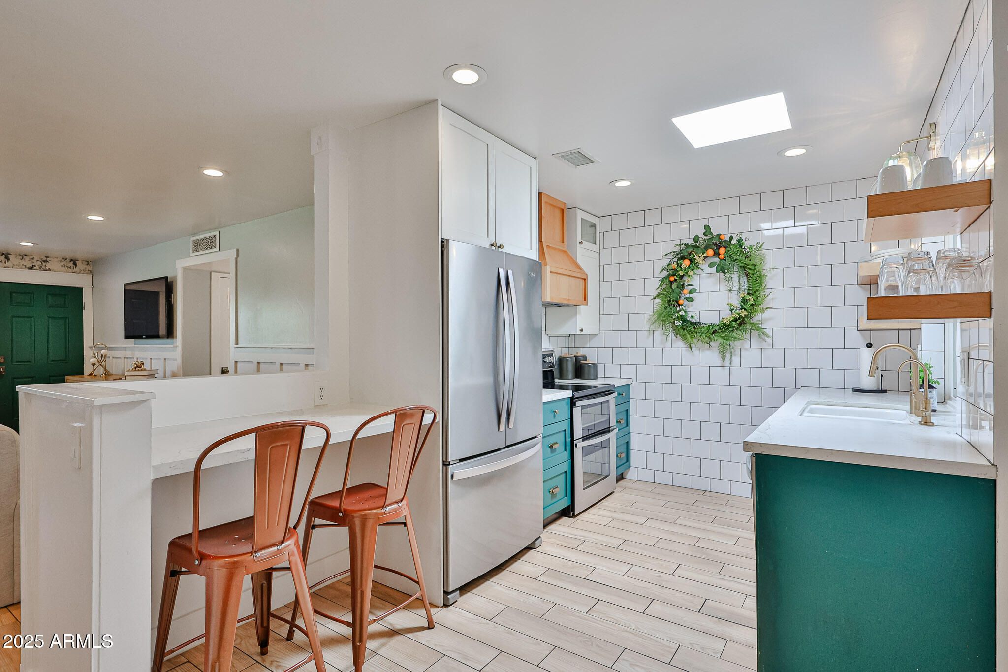 Experience the pinnacle of modern living in this exquisitely updated patio home, where every detail has been thoughtfully redesigned to offer a bright, open, & inviting atmosphere. The 1 Car Garage Provides secure parking and additional storage space. As an end-unit gem it boasts a spacious 2 bedroom, 2 bath layout, complemented by a professionally designed patio with seating that serves as an extension of your living space. Stunning kitchen featuring sleek quartz countertops, shaker cabinetry, stainless steel appliances, and a convenient breakfast bar. The expansive great room seamlessly flows into the dining area, creating an ideal space for entertaining and daily living. Both baths have been meticulously updated with modern fixtures, designer tile work, and a walk-in soaking tub.