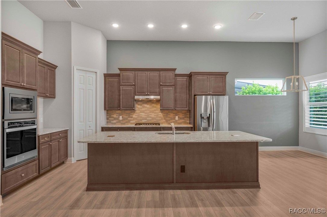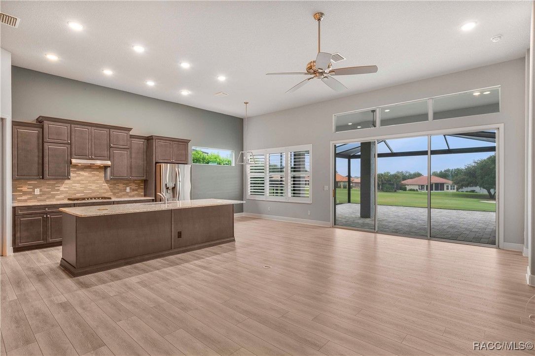 STUNNING ELEVATED VIEWS of Sunsets, Fairway of Skyview #2 and the Lake/Fountain Location, Location, Location MOTIVATED SELLERS - WILLING TO NEGOTIATE! - see the stunning fountain view this home offers. Why wait to build when this home offers so many upgrades and a beautiful view of Skyview Golf Course, fountain and lake. Built in 2023 this 3 bedroom 2.5 bathroom and 2 car garage offers 14’ ceilings, panaroma screen for optimal views, Luxury Vinyl Plank throughout, closets space galore (some primary bedrooms have 2 walk-in closets, this has 3) Dual Pane windows, Plantation Shutters and so much more. The kitchen offers a natural gas stove and built in oven and microwave with a large island with quartz countertops. Nash Crossing 55+ community within gated Villages of Citrus Hills Terra Vista is situated well above flood plain, offers organized social gatherings in addition to the other amenities, see the community information in the listing for a full list of amenities. Citrus County an hours drive from Tampa offers the Nature Coast with spring fed rivers for kayaking and boating, Rails to Trails bicycling/walking trail and the Withlacoochee State Forest, 164,000 acres of natural wonders to explore as well as the Gulf of Mexico for boating, fishing, scalloping and kite boarding. Make sure you view the 3D video of this gorgeous home.
