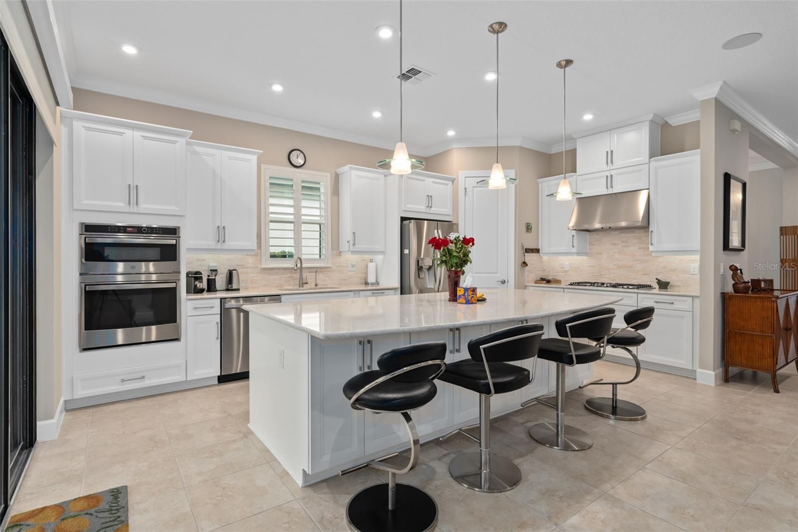 One or more photo(s) has been virtually staged. This is the OUTSTANDING LAZIO model you have been LOOKING FOR. Located in the highly regarded GATED 55+ Community of the Esplanade at Highland Ranch in the Rolling Hills of Clermont. You will also Discover many STRUCTURAL and DESIGN UPGRADES. Upon entry you will be greeted by an ABSOLUTELY GORGEOUS OPEN SEE THROUGH Floor Plan. This 3 Bedroom, 3 Bath, 2,449 sq ft ONE STORY LAZIO with a BAY WINDOW in the Primary Suite also has GENEROUS room sizes all situated on a GREAT LOT in a Community with Resort Style AMENITIES. The Open KITCHEN with the GOURMET UPGRADE features BUILT-IN UPGRADED Stainless Steel Appliances, QUARTZ Countertops throughout, Soft Close Kitchen Drawers and Doors, Under Counter Double Trash Roll Out, Back Splash, Pendant Lighting over a BEAUTIFUL ISLAND with Front Facing Cabinetry for Additional Storage and BREAKFAST BAR. You will also appreciate the 42" solid wood cabinetry throughout the home and LARGE CORNER Walk-In PANTRY. You are sure to be impressed with the GENEROUS size of the Primary Suite with a BAY WINDOW AREA and CROWN Molding. The Primary En-Suite offers a Large WALK-IN SHOWER, Comfort Height DOUBLE SINK vanity, Separate Water Closet and an OVERSIZED WALK-IN CLOSET. Bedroom 2 has its very own En-Suite for the convenience of your guests and Bedroom 3 is adjacent to Bathroom 3. There is also an additional Flex Space that can accommodate a Office/Den/Study or a separate sitting room. The LAUNDRY Room includes the Washer, Dryer, Sink and Cabinets for your storage needs. Some of the offered upgrades are UPGRADED Ceramic Tile in the Main Living Areas, and Laminate Plank in the Bedrooms. This home has NO CARPET, Floor Electrical Receptacle in Great Room, Upgraded Primary En-Suite Wall Tile with Listello Accents and Floor Tile, 10 FOOT CEILINGS, 8" Interior Doors, Tray Ceilings in the Foyer, Oversize Trim, CROWN MOLDING Throughout the Main Living Areas and Flex Room, Plantation Shutters, Motorized Shades on the Sliding Glass Doors, Upgraded Cabinetry throughout, "A" Exterior Elevation, Rain Gutters, Professionally Applied GARAGE Floor Coating, R-38 Ceiling Insulation, Foam Filled Insulation in the Block Walls in the Living Areas, Radiant Attic Barrier, Gas Tankless Hot Water Heater, Comfort Height Toilets Throughout, Additional Ceiling Lighting, Ceiling Fans, TANDEM GARAGE with a SIDE GARAGE ENTRY DOOR and Ceiling Storage Racks, an UNDER ROOF SCREENED LANAI with a Gas Line for your Grill. RESORT STYLE Community Amenities include Clubhouse, Pool, Spa, Resistance Pool, Clay Tennis and Bocce' Courts, 4 Pickle Ball Courts (All Sports Courts are lighted for nighttime play), Fire Pit, Movement Studio, Activities, Clubs, Billiards & more. Don't forget the DOG PARK for your furry family members too! Close to the New Advent Health Hospital (Under Construction to open in early 2026), SOUTH LAKE HOSPITAL, VA, Medical Offices, NTC (National Training Center), SHOPPING & DINING. Miles of Biking/Walking Trails for your Outdoor Endeavors and a 15 minute drive to either Downtown Clermont or Winter Garden for more enjoyment and Farmers Market's. For your traveling convenience, The Esplanade at Highland Ranch is a few minutes to the Florida Turnpike where OIA and Attractions are about 35 minutes away, as well as Dr Phillips Famed Restaurant Row. HOA includes Lawn/Shrub Care, Fertilizing, Irrigation maintenance as well as the Amenities. THIS HOME IS AN ABSOLUTE MUST SEE! The Esplanade at Highland Ranch does NOT have a CDD