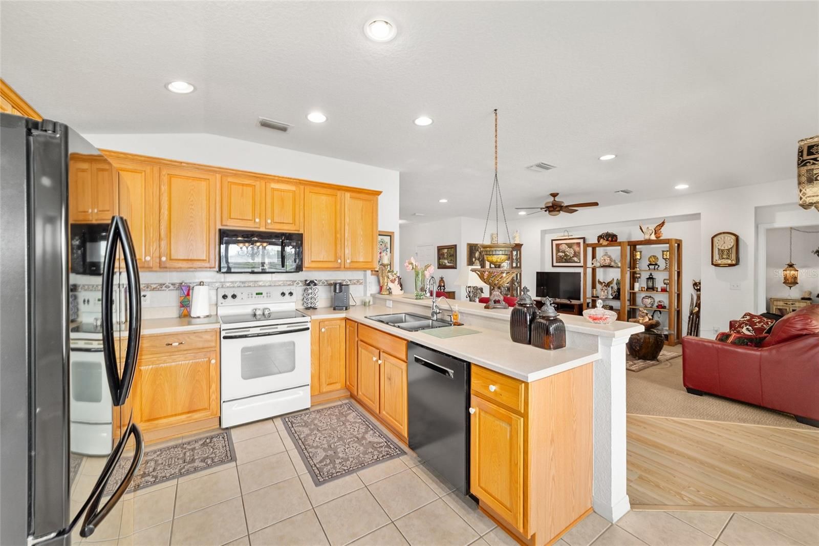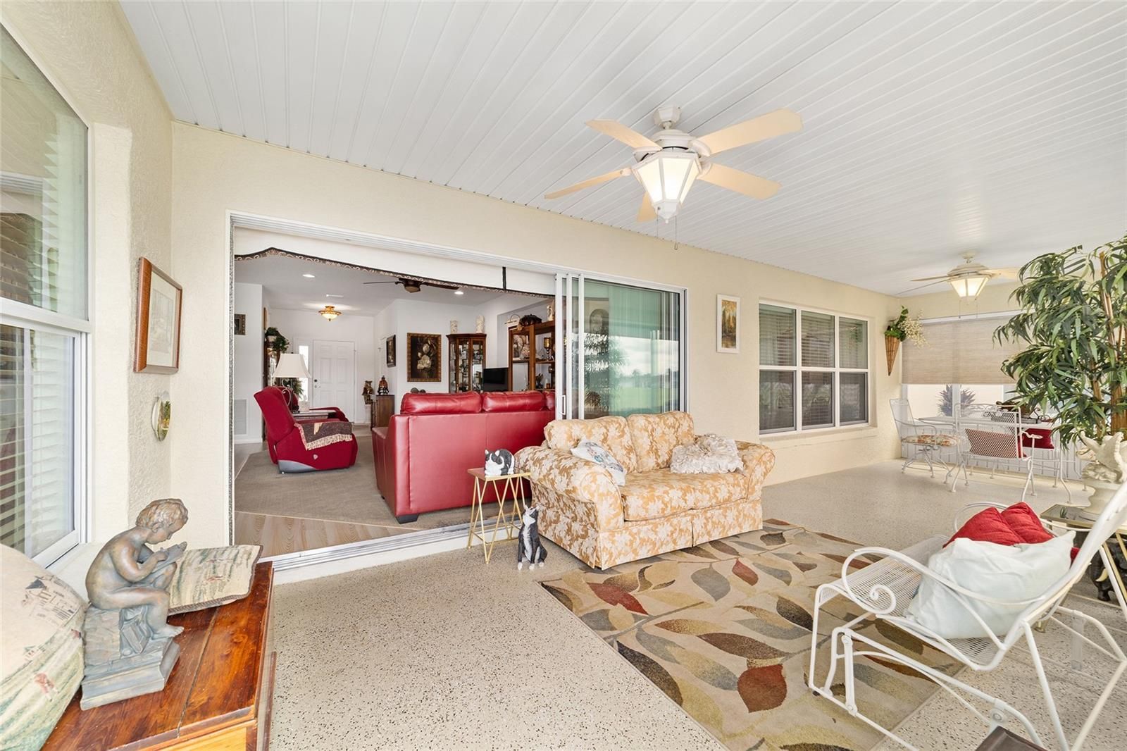 Welcome to Del Webb Spruce Creek Golf & Country Club, an active 55+ community designed for a vibrant lifestyle. This POND VIEW Citation model home features a 2-bedroom, 2-bathroom layout with an additional flex room and an open floor plan. The living area has laminate flooring and carpet, carpet in the bedrooms and tile in the wet areas. A triple slider leads to the enclosed lanai with updated epoxy flooring offering a comfortable spot to enjoy the view of the pond. The home includes a dining area with a large window overlooking the backyard view, and a 2016 AC unit and a 2014 roof. The washer and dryer are also included. Residents of Del Webb Spruce Creek have access to 36 holes of golf, pickleball and tennis courts, three pools including an indoor one, a softball field, horseshoes, bocce, and a fitness center. Scenic walking trails and a dog park provide additional outdoor enjoyment. Close to shopping and dining, this home offers both comfort and a full range of amenities. Schedule a viewing today to experience this wonderful community.