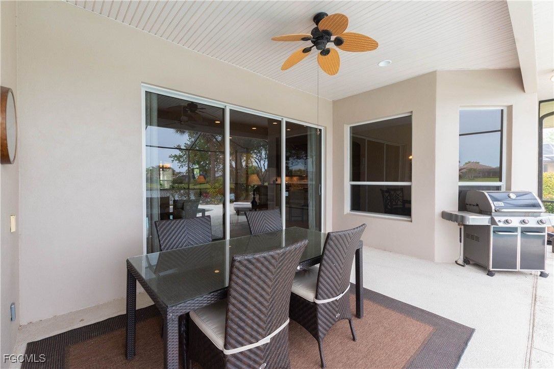 Major price reduction on this Arthur Rutenberg home, offered turnkey and move-in ready. Featuring an open floor plan, this residence includes 3 spacious bedrooms, 2 full bathrooms, and a den/study, all filled with abundant natural light. Recent major updates include a new roof, new pool cage, and new gutters, all in like-new condition. The kitchen offers natural gas appliances, solid-surface countertops, wood cabinetry, and a breakfast bar. The HVAC system was replaced in 2017, and the garage features a new epoxy floor. Beautifully furnished with high-end furniture and meticulously maintained, this home shows exceptionally well. Located in Verandah, residents enjoy an unmatched lifestyle with two 18-hole championship golf courses, tennis courts, a state-of-the-art fitness center, community pool, pickleball and bocce courts, and kayaking on the scenic Orange River. Miles of walking and biking trails enhance the natural setting, along with a dedicated dog park with ample parking. Conveniently located near Downtown Fort Myers, the Caloosahatchee River, and Fort Myers and Punta Gorda airports