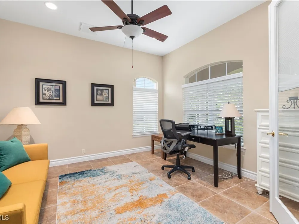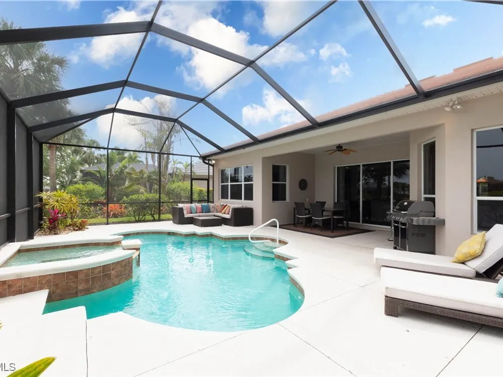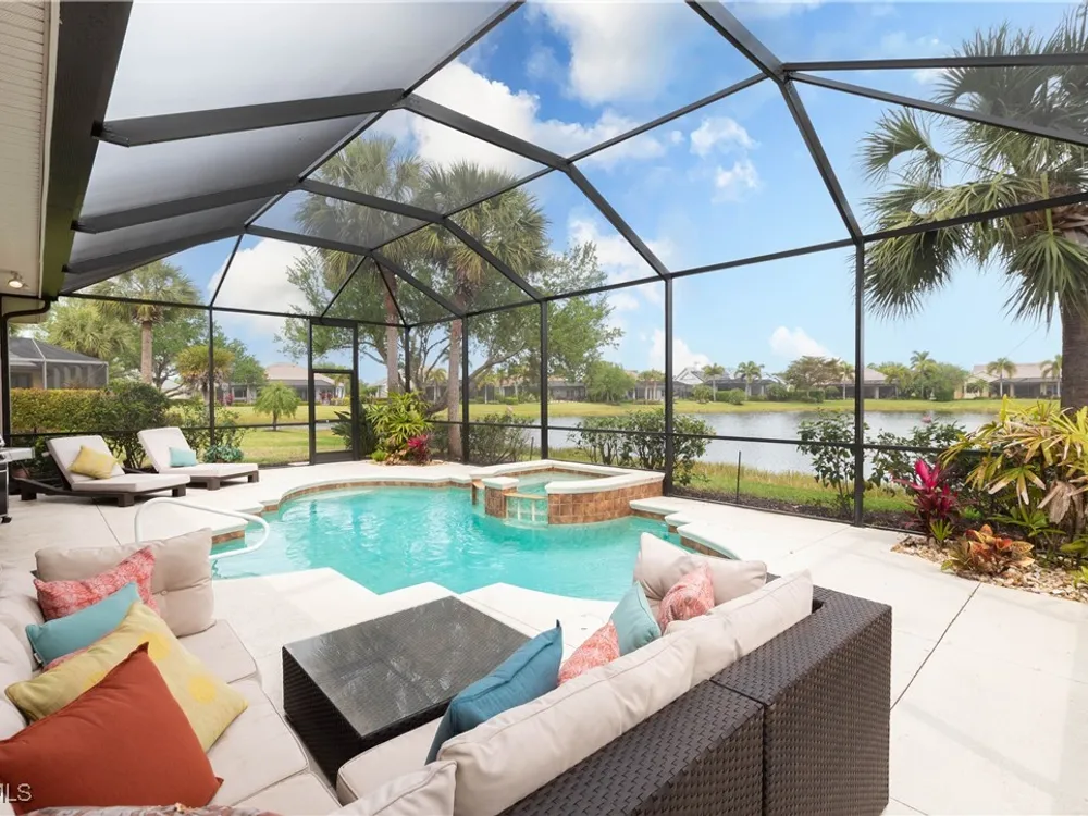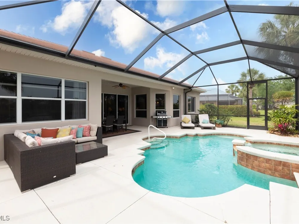This Arthur Rutenberg home is being offered TURNKEY and is MOVE IN READY. It features an open floor concept, 3 spacious bedrooms, 2 full bathrooms, a den/study and an abundance of natural light. The ROOF, pool cage and gutters were all replaced and are like new. The kitchen has natural gas appliances, solid surface counters, wood cabinets, and a breakfast bar. The A/C was replaced in 2017 and there's a new epoxy floor was recently installed in the garage. This home shows very well and the furniture is higher end furniture and has been extremely well maintained. Verandah offers an exceptional lifestyle with two stunning 18-hole championship golf courses, tennis, a state-of-the-art fitness center, a community pool, pickleball, bocce ball, and kayaking on the picturesque Orange River. Nature lovers will appreciate the extensive miles of biking and walking trails, perfect for outdoor exercise. Pet owners will be delighted to find a dedicated doggy park complete with ample parking. Located conveniently close to Downtown Ft Myers, the Caloosahatchee River, and both Ft Myers and Punta Gorda Airports, Verandah is an ideal location for a vibrant lifestyle.