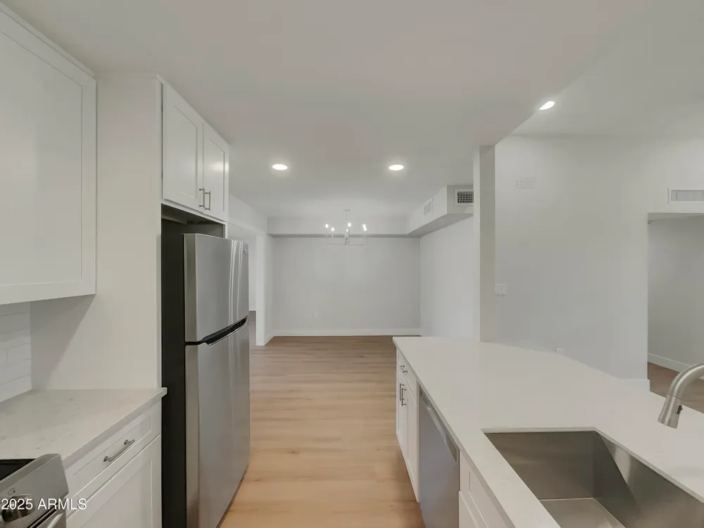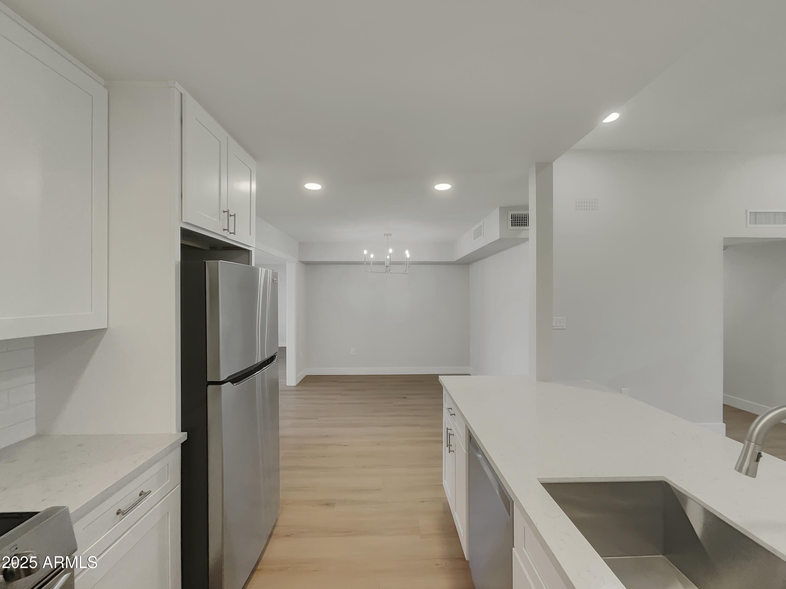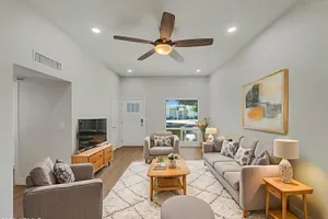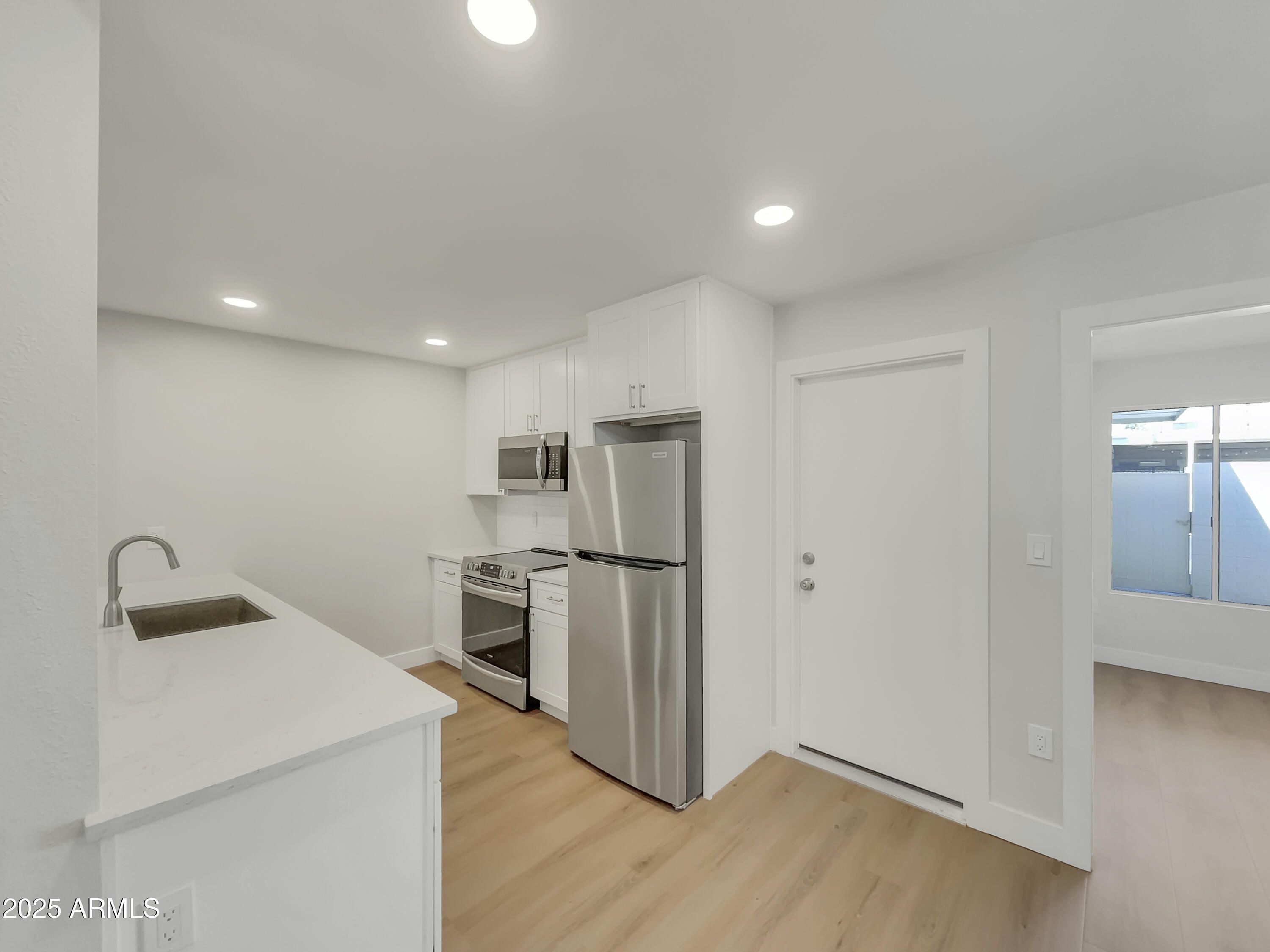 55+ Age Restricted Community. Welcome to this beautifully renovated home in a great area of Sun City. The interior boasts a fresh coat of neutral color paint, providing a calming ambiance. The remodeled kitchen is a chef's dream with stone counter tops, all stainless steel appliances and an accent backsplash. The primary bedroom features a spacious walk-in closet, perfect for your wardrobe. The entire home has new flooring, with partial flooring replacement in certain areas for a touch of uniqueness. The home also comes with new appliances, ensuring modern comfort and convenience. This property is a perfect blend of style and functionality, waiting for you to make it your own.. Included 100-Day Home Warranty with buyer activation