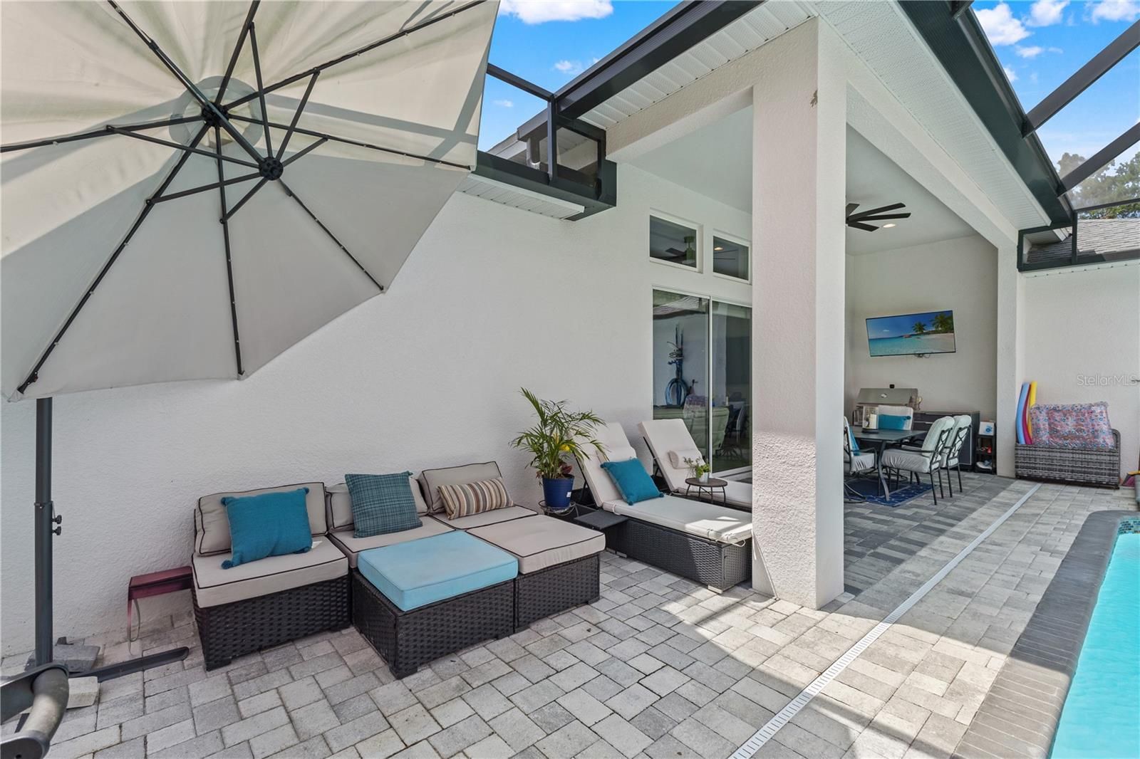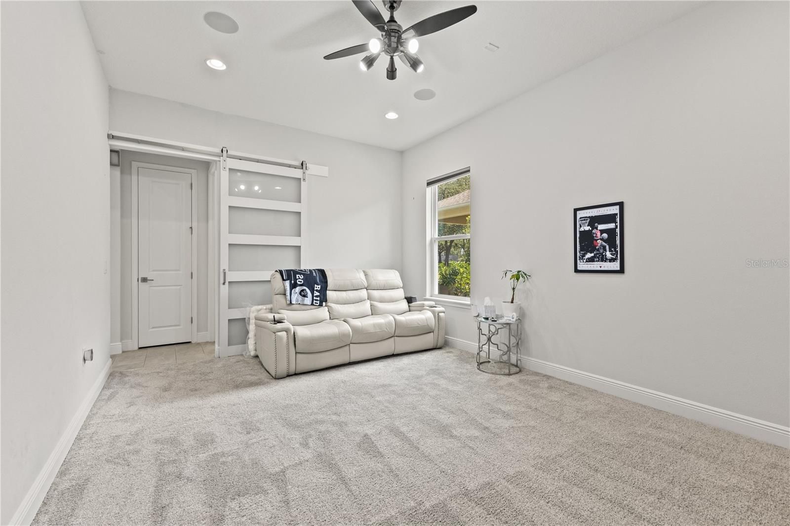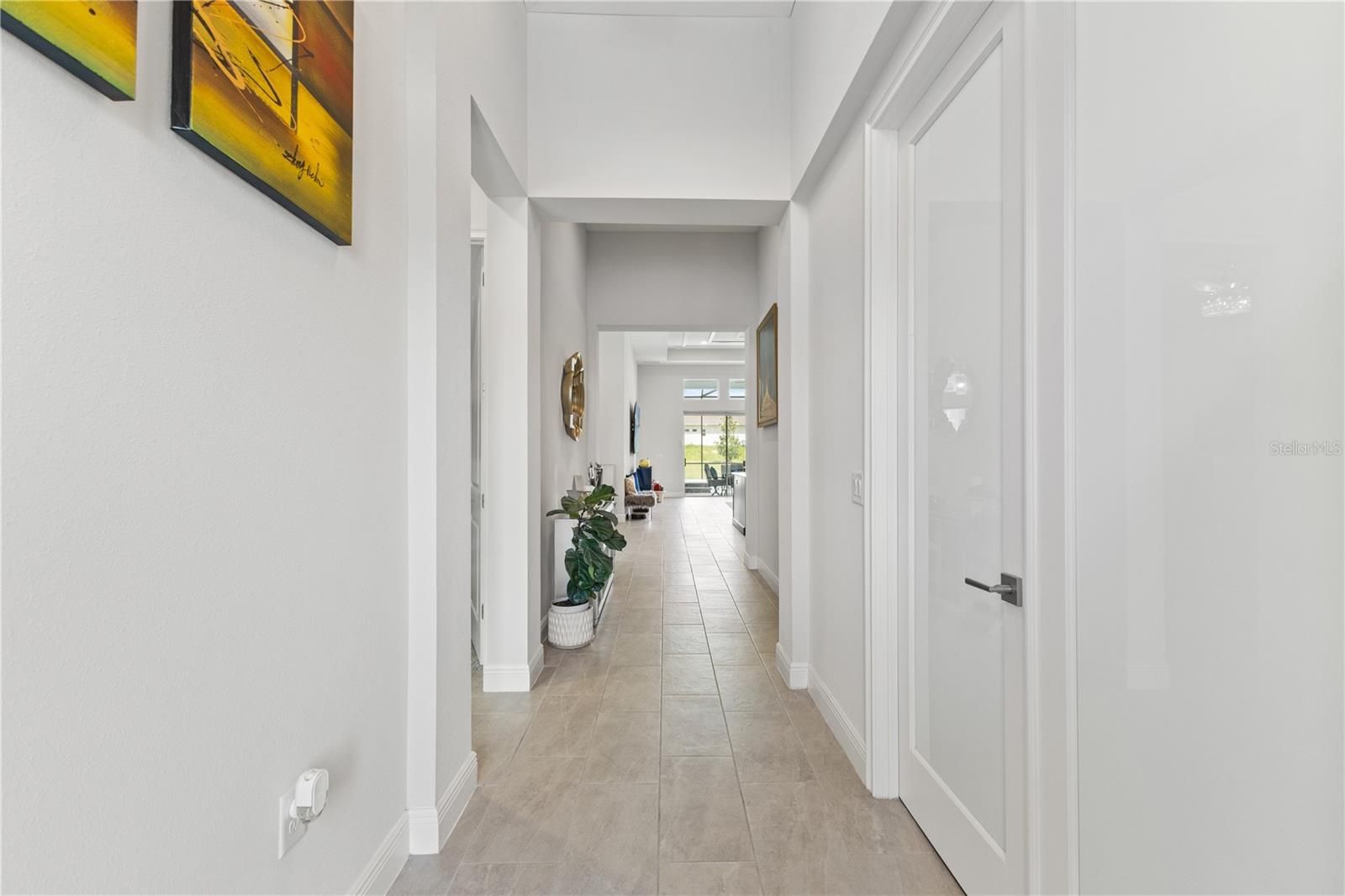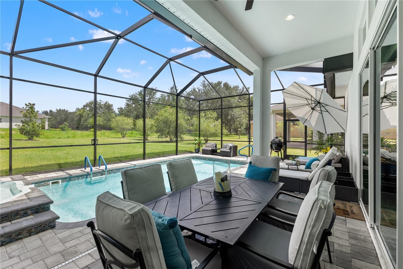 Welcome to 13444 Trailing Moss, a stately residence on a large 1/3-acre corner lot in the prestigious Lake Jovita Golf & Country Club, an upscale, guard-gated community. Known for its scenic rolling hills, sparkling lakes, and resort-style amenities, Lake Jovita features two championship golf courses, tennis and pickleball courts, a fitness center, a community pool, a new dog park, and a beautiful park that sits right in your backyard. The South Course has even hosted USGA U.S. Open local qualifying events, adding to the community’s prestige. With over 3,000 square feet of living space on a single-story floor plan, this home was designed for both elegance and functionality. The upgraded layout includes three spacious bedrooms, three full bathrooms, and an expanded bonus room with stylish barn doors, perfect for entertaining, a media lounge with surround sound, or even a private retreat. Plus, there’s an additional home office at the front of the home with upgraded hardwood floors, ideal for those working remotely or needing a dedicated workspace. The split-bedroom layout offers exceptional privacy, and the master suite is a true retreat with a spa-like ensuite featuring a free-standing soaking tub, dual vanities, and a massive walk-in closet. At the heart of the home lies the chef’s kitchen, designed to impress both everyday cooks and gourmet entertainers. Outfitted with 42-inch soft-close cabinets and custom uppers, this kitchen offers ample storage and timeless style. The elegant cabinetry is paired with sleek quartz countertops, a large center island with bar seating, and upgraded stainless steel appliances, making meal prep and hosting a delight. Thoughtful touches like a walk-in pantry and custom lighting add both convenience and character. Soaring 12-foot ceilings in the common areas, paired with 10-foot ceilings in the bedrooms and 8-foot doors throughout, create an open, airy atmosphere that enhances the home’s sense of space and luxury. The family room showcases a panoramic slider, allowing seamless indoor/outdoor living and perfect views of the backyard retreat. Step outside into your own private resort. In the expansive backyard, you’ll find a dreamy heated saltwater pool and spa, fully screened-in for year-round enjoyment. The outdoor cooking area is perfect for poolside dining, while the home’s unique location backing up to the park allows you to stroll straight from your backyard into the community’s green space. Additional highlights include exquisite trim work throughout, a three-car tandem garage with abundant storage, an electric vehicle charger, and a whole-home water softener for added comfort. Every detail has been thoughtfully curated to blend luxury, practicality, and timeless style. At 13444 Trailing Moss, you’ll enjoy the perfect balance of refined living and relaxed Florida charm, all in one of the Tampa Bay area’s most sought-after gated golf course communities.