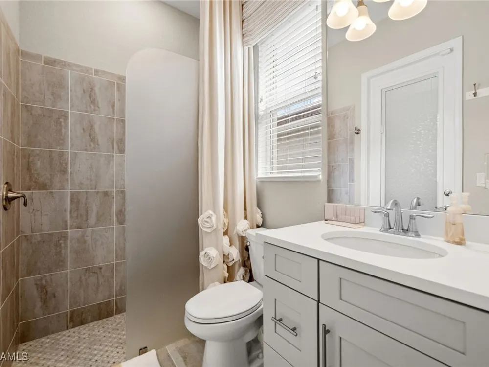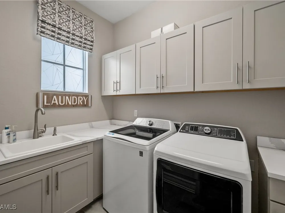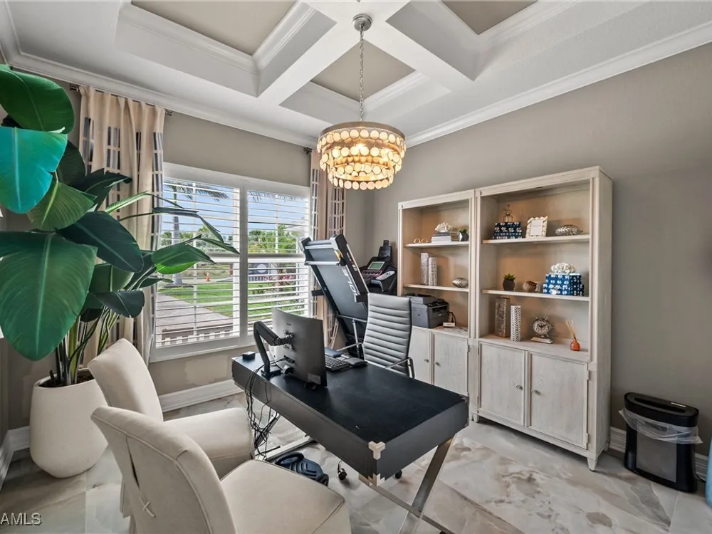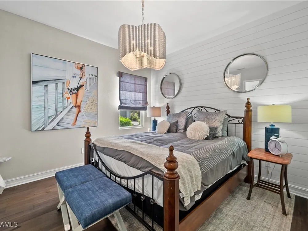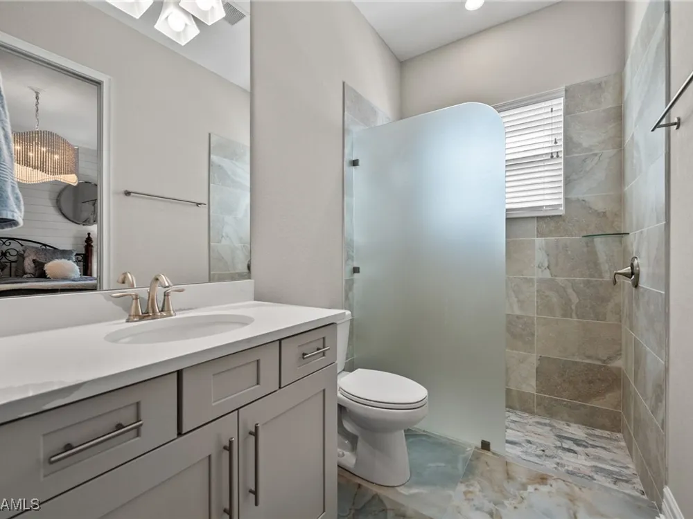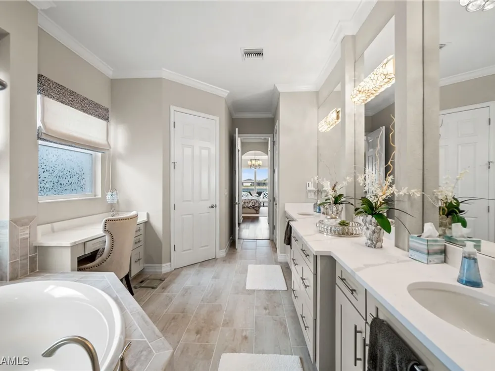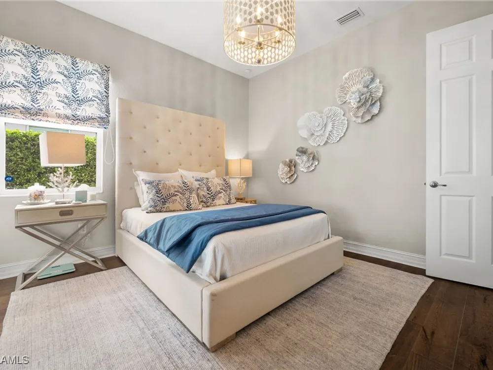 The LARGEST PREVIOUS SHOWCASE MODEL - the “Bougainvillea Model” Estate Home – a true Masterpiece - is now for sale! This home offers it all – nothing is missing! Enjoy a DOUBLE BOAT DOCK and the HIGHEST AMOUNT OF BUILDER UPGRADES available! The owners elevated this waterfront estate into a complete CUSTOM-DESIGNED residence, with upgrades totaling over $549,000, featuring designer furnishings and structural enhancements far beyond comparable homes. This turnkey residence highlights exquisite glossy tile flooring with bespoke elements. This is a RARE MASTERPIECE and a must-see! The highly desirable floor plan offers 4 bedrooms, 3 bathrooms, an air-conditioned and insulated 3-car garage, a heated pool with spa, summer kitchen, and an extraordinary DOUBLE BOAT DOCK – delivering the ultimate in outdoor living and boating luxury. EXCEPTIONAL UPGRADES added after purchase include top-tier luxury furniture and new outdoor patio sets (approx. $150,000) and spectacular flooring throughout. The striking Italian Reves Blue Glossy Porcelain Tile (24” x 48”), accented by custom marble insets, flows elegantly through the entrance, living room, kitchen, formal dining, hallway, powder bath, laundry, and office. A dramatic marble inlay at the entrance is mirrored by a second marble feature at the fireplace, both adding striking architectural detail. All 3 baths have been completely renovated, including new tile, shower floors, and frameless glass enclosures. Additional improvements include new baseboards, fresh paint, Hunter Douglas blinds, and matching Louver Hunter Douglas shutters in the dining room and office. Other luxury features include a central vac system, 3 AC units, a Kinetico water softener, and high-end appliances – including a GE refrigerator with built-in coffee maker. Exterior highlights include a DOUBLE BOAT DOCK with solar lighting, enhancing the evening ambiance. Professionally designed landscaping showcases 3 majestic 28-foot King Palms and lush greenery in both front and back. Outdoors is a true oasis – complete with a new firepit, exclusive outdoor furniture, and a 65" outdoor swivel TV – perfect for entertaining or relaxing in style. The ADT security system features 4 exterior cameras and a doorbell camera. The insulated garage includes steel ceiling-mounted storage racks for added functionality. WORLD-CLASS AMENITIES and a vibrant lifestyle await! With over 800 acres of freshwater lakes, WildBlue welcomes boaters and water sports enthusiasts, complemented by a 20-acre amenity campus including a fitness club, lap pool, day spa, pickleball, tennis, basketball, and more. The Clubhouse features a resort-style pool, restaurant, poolside bar, private sand beach, and cabanas. Conveniently located near Gulf Coast Town Center, Coconut Point Mall, and RSW International Airport. ULTIMATE LUXURY. UNRIVALED LOCATION. Welcome to your dream home!