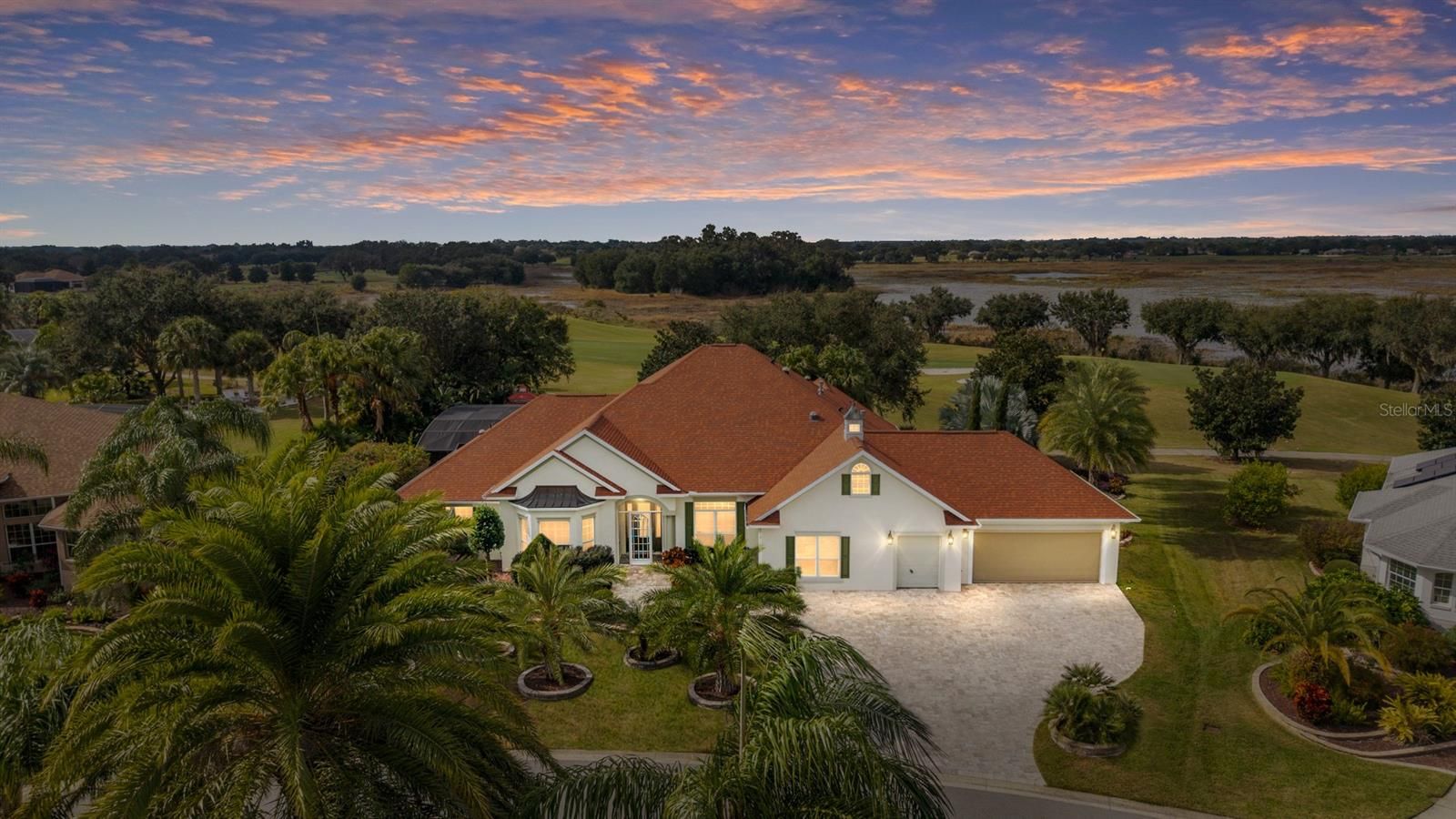SPECTACULAR, UPGRADED 4 BEDROOM + OFFICE/DEN, 2 BATH, w/ a 2 Car plus TANDEM GOLF CART GARAGE. This Expanded SANIBEL PREMIER features an AMAZING HEATED SALTWATER POOL with/ waterfall AND AN above-ground spa, perfectly positioned on an oversized lot overlooking the Arnold Palmer Championship Golf Course with breathtaking water views, located in the all premier VILLAGE OF BRIDGEPORT AT LAKE SUMTER! This home was significantly expanded in 2022, bringing the total living space close to 4,000 sq ft, and showcases exceptional craftsmanship, thoughtful upgrades, and luxurious indoor/outdoor living. From the moment you arrive, the home radiates elegance with a PAVERED driveway and walkway, beautiful tropical landscaping with lighting, and lightning rods on the roof for added protection. Step inside to discover TILE flooring throughout, CROWN MOLDING, TRAY ceilings w/ LED lighting, SOLAR tubes, NEW electric FIREPLACE (can be converted to gas), and all-new updated light fixtures that illuminate the home with a warm, modern ambiance. The spacious kitchen is designed for both functionality and style, featuring GRANITE countertops, TILE backsplash, freshly painted cabinetry, NEW appliances, an island, a breakfast bar, a breakfast nook, and an open layout perfect for entertaining. The SPACIOUS primary bedroom has French doors that open out to the ENCLOSED FLORIDA ROOM, a LARGE WALK-IN CLOSET with solid wood custom built-ins, SOLAR tubes, an EN-SUITE BATH which offers cabinets, a vanity with GRANITE countertops, double sinks, a ROMAN SHOWER with a soaking tub, a LARGE linen closet, and a separate water closet. On the opposite side of the home are the two guest rooms with the guest bathroom featuring a lovely TILED shower and frameless sliding glass doors, GRANITE countertops, and a linen closet. The OFFICE/STORAGE room has a SOLAR tube and is located off of the laundry room and has the potential for a workout room, quilting/craft room, safe room– the sky's the limit. The 4th bedroom has a BUILT-IN closet and recessed lighting. The enclosed PAVERED lanai extends your indoor living space with a full summer kitchen that opens to your private outdoor oasis. Enjoy the saltwater pool, an extended pavered birdcage, a gazebo, and even an above-ground hot tub, all designed to maximize the stunning water and golf views. Whether hosting gatherings or relaxing quietly at sunset, this outdoor space is unmatched. Additional features include: ROOF (2022), Two AC units one replaced in 2018, the other in 2022, HWH (2022), Plenty of attic space with decking for storage, Electric garage screen door, retractable awning w/ LED lighting, ALL of the tile including the showers have been regrouted and sealed, FRESHLY painted throughout, and PLANTATION shutters. Right around the corner from Lake Sumter Landing, Arnold Palmer Country Club and Golf Course, and so many amenities close by! COME SEE THIS AMAZING HOME. Bond Bal. 13,869