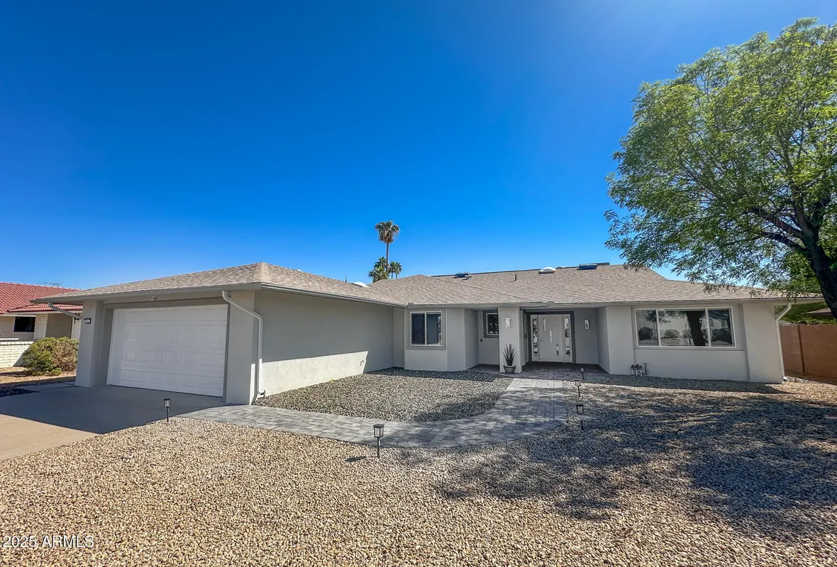 Swimming, Golf, Pickelball...so many activities and clubs abound in Sun City West. Live close to Briarwood Country Club in this fully renovated home. Nothing left untouched. Featuring a peek a boo view of 5th Tee box of Briarwood Golf Course. House has been redone top to bottom, kitchen with large island, instant hot water and r/o system at kitchen sink, complete bathrooms, added a 3rd bedroom/den/office, inside laundry room, windows, doors, switches, appliances, flooring, stucco and paint throughout. Arizona room has AC (2 units on property). 2.5 garage spaces. 2 utility sinks.