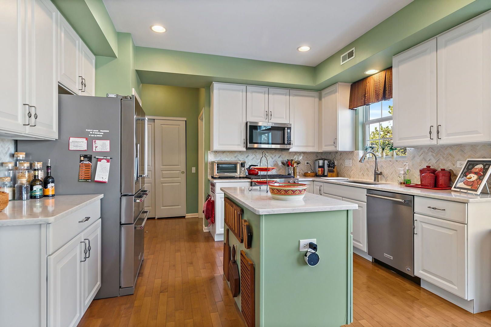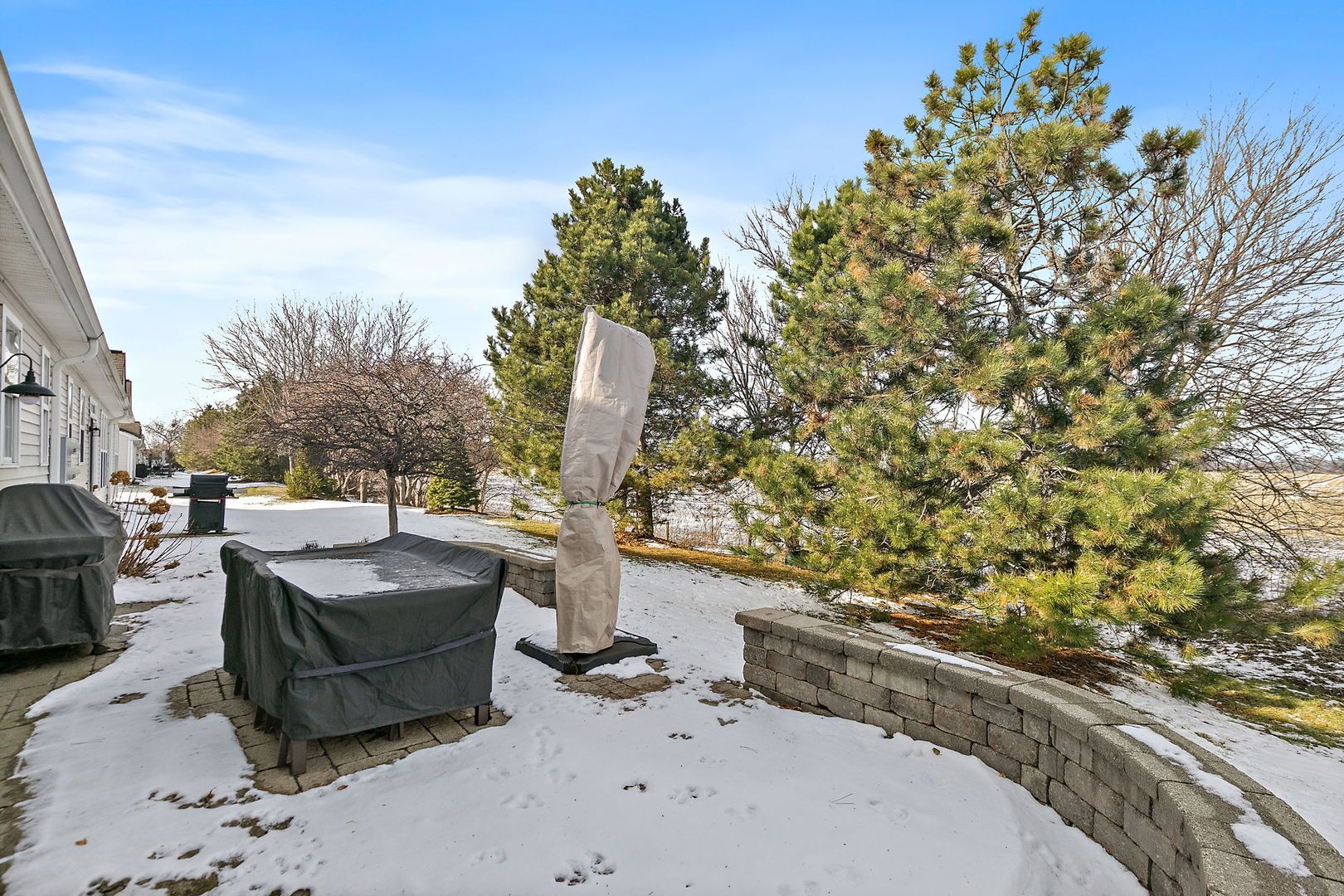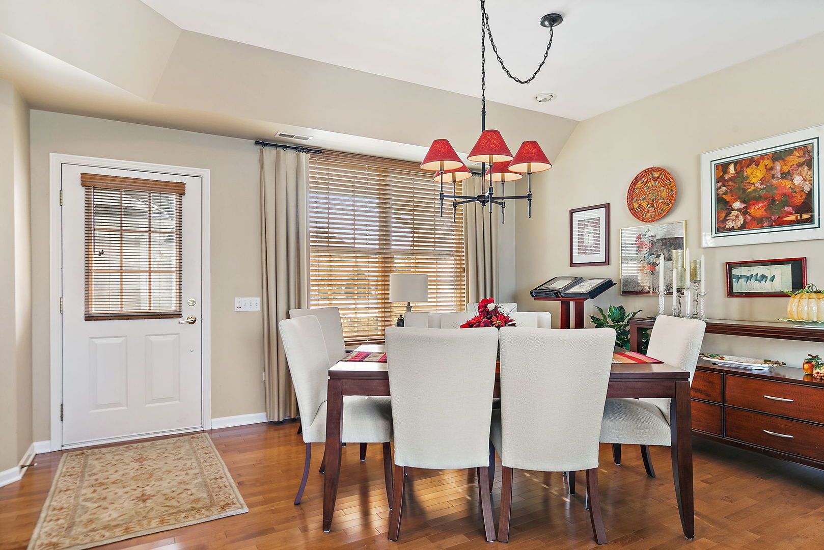 Welcome home to this beautifully updated 2-bedroom townhome with den, located in the highly sought-after Del Webb Sun City community in Huntley. This meticulously maintained home offers hardwood floors throughout and an open, inviting layout perfect for both everyday living and entertaining. The updated kitchen features stainless steel appliances, quartz countertops, a custom tile backsplash, recessed can lighting, and plenty of storage and countertop space. The breakfast dining area flows seamlessly to the outdoors, where a custom brick paver patio with decorative walls overlooks peaceful open space framed by mature trees, providing privacy and a serene setting. Both bathrooms have been tastefully upgraded. The hall bath showcases a custom walk-in tiled shower with sliding glass doors, while the primary suite offers a spa-like retreat with a walk-in whirlpool and bubbler tub, double-bowl vanity, and a large walk-in closet. Additional highlights include a separate utility room with utility sink, a 2-car garage with built-in storage cabinets, and major mechanical updates, including a new 75-gallon water heater, furnace, and air conditioning. This 55+ Del Webb community has so much to offer, including an on-site bar and restaurant, community lodge with fitness center, two outdoor pools, one indoor pool, tennis courts, pickleball courts, bocce ball, woodworking shop, billiards, lakes, and walking paths. This is a must-see home!