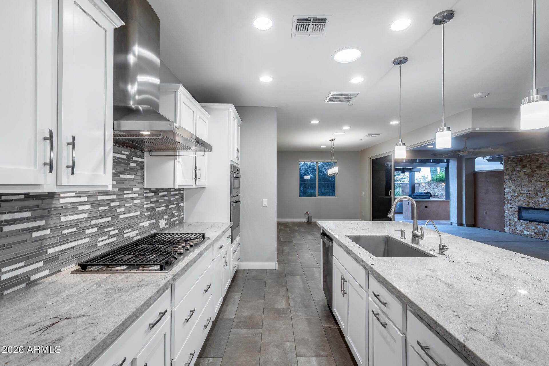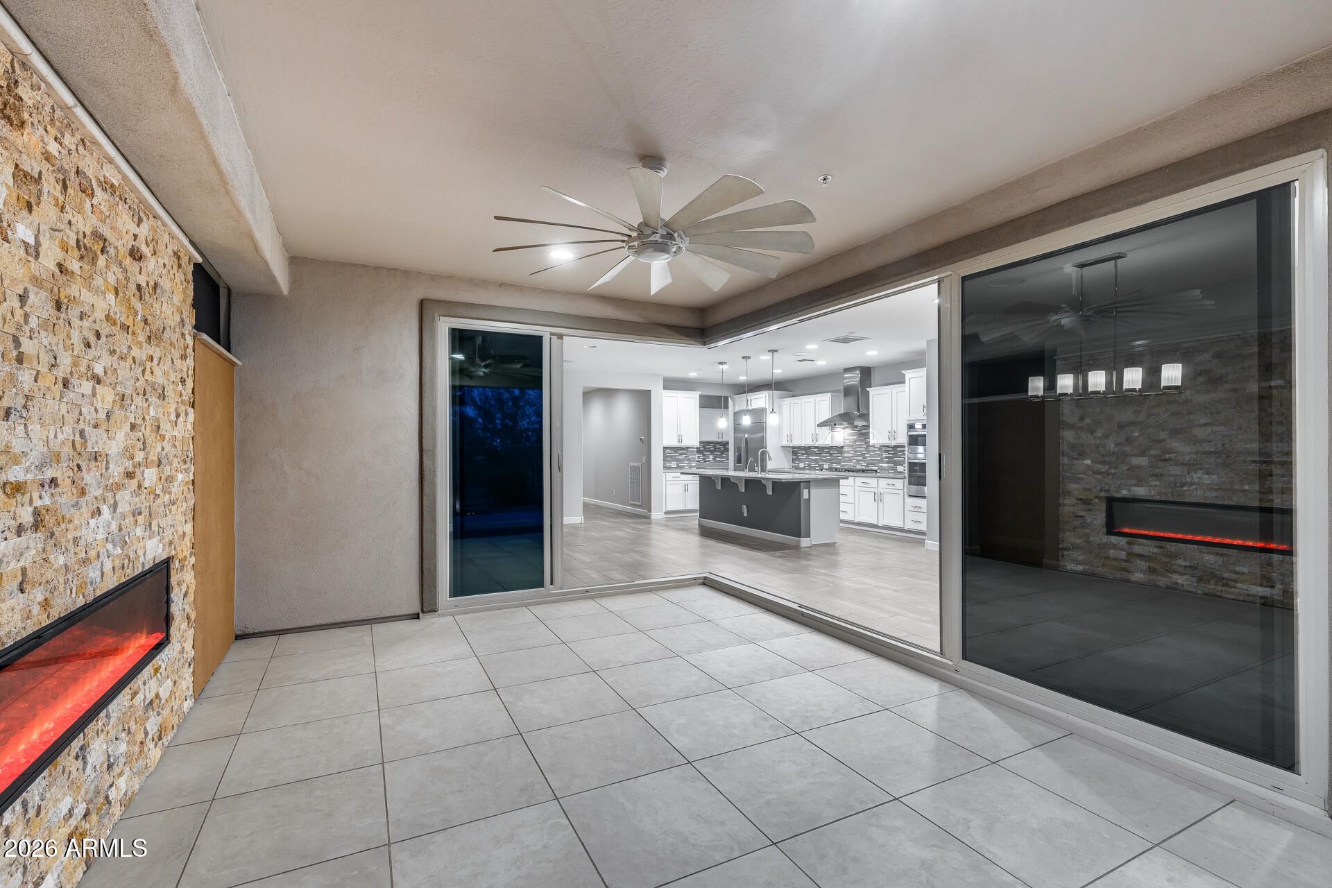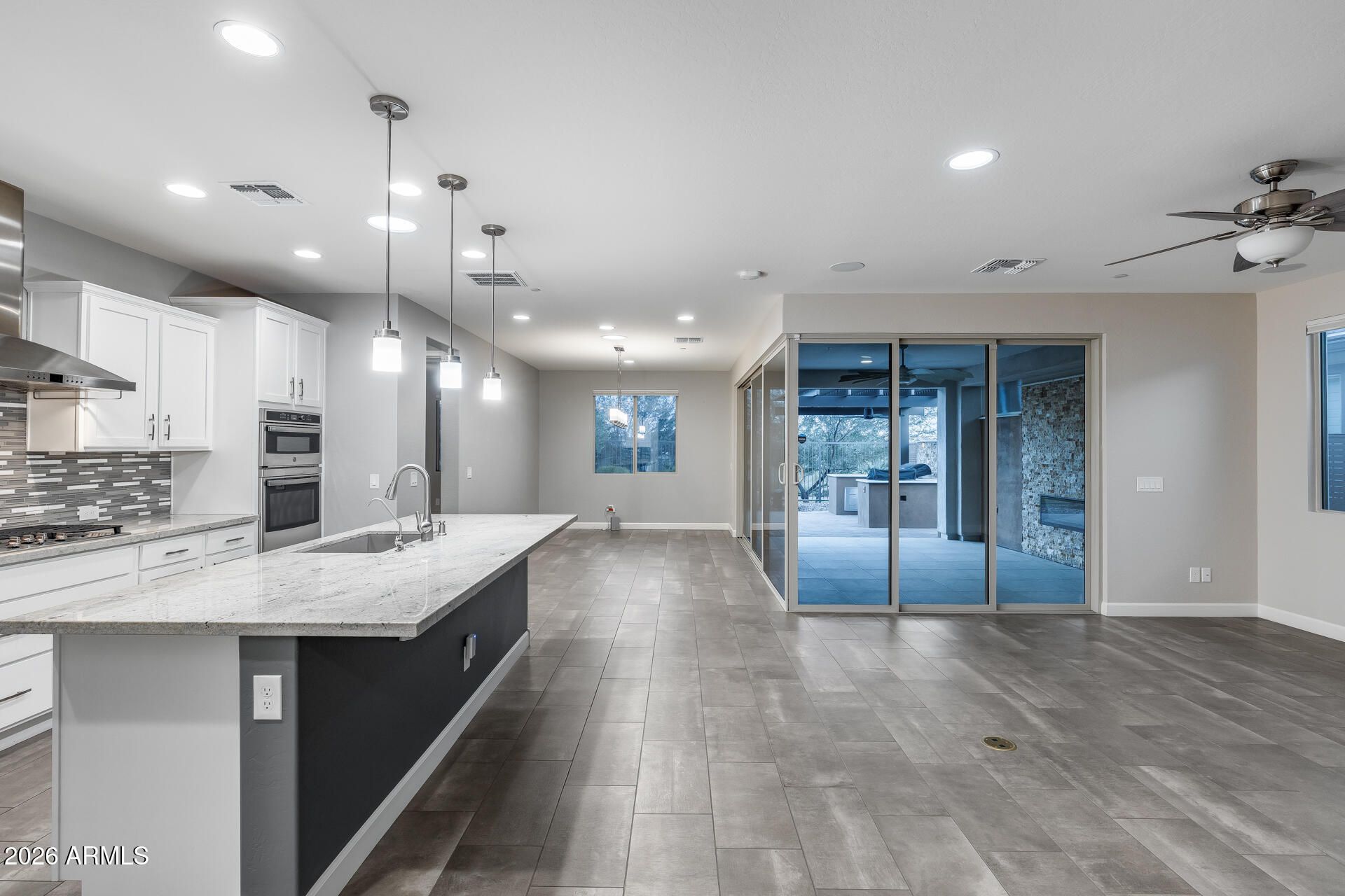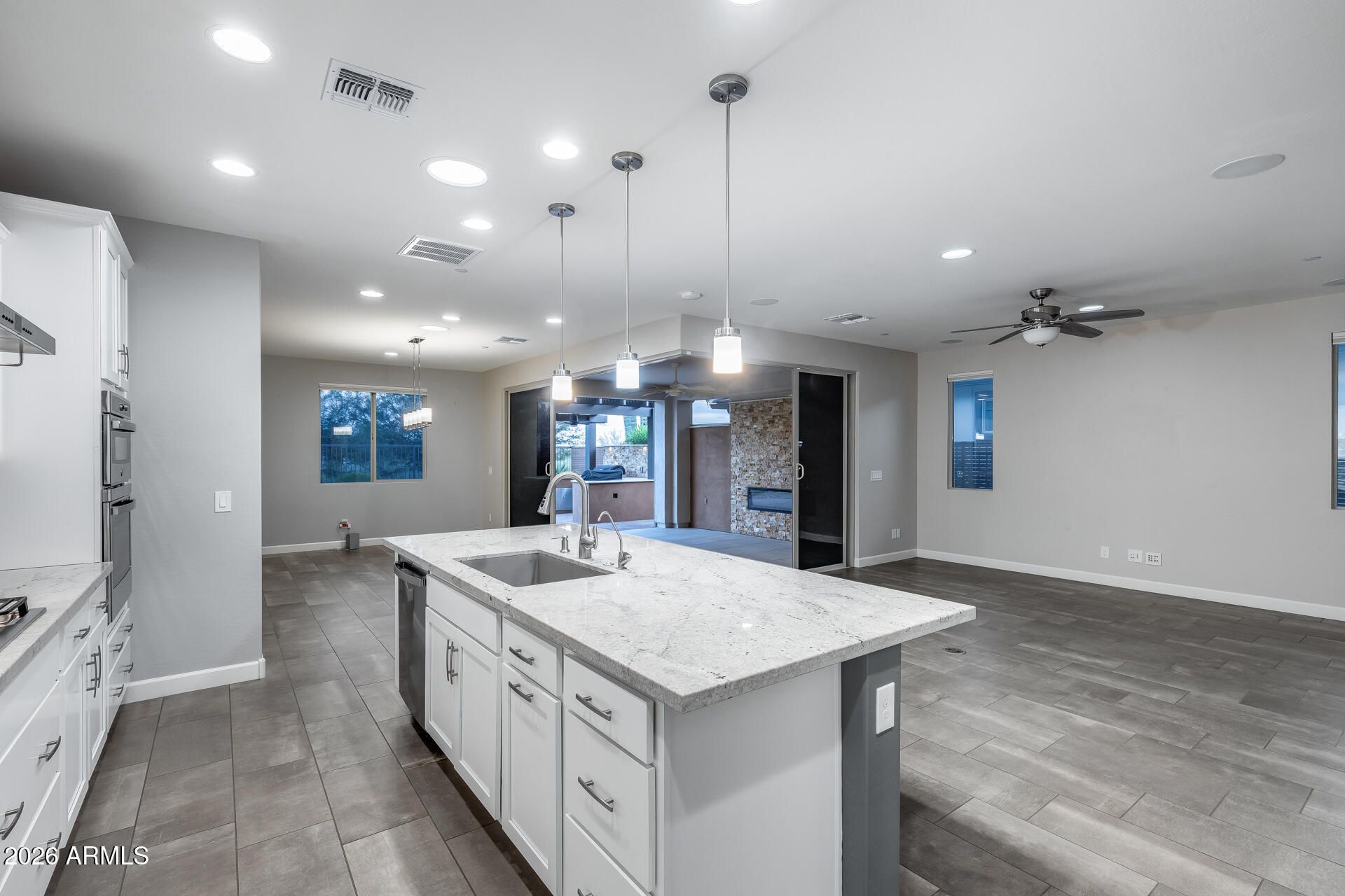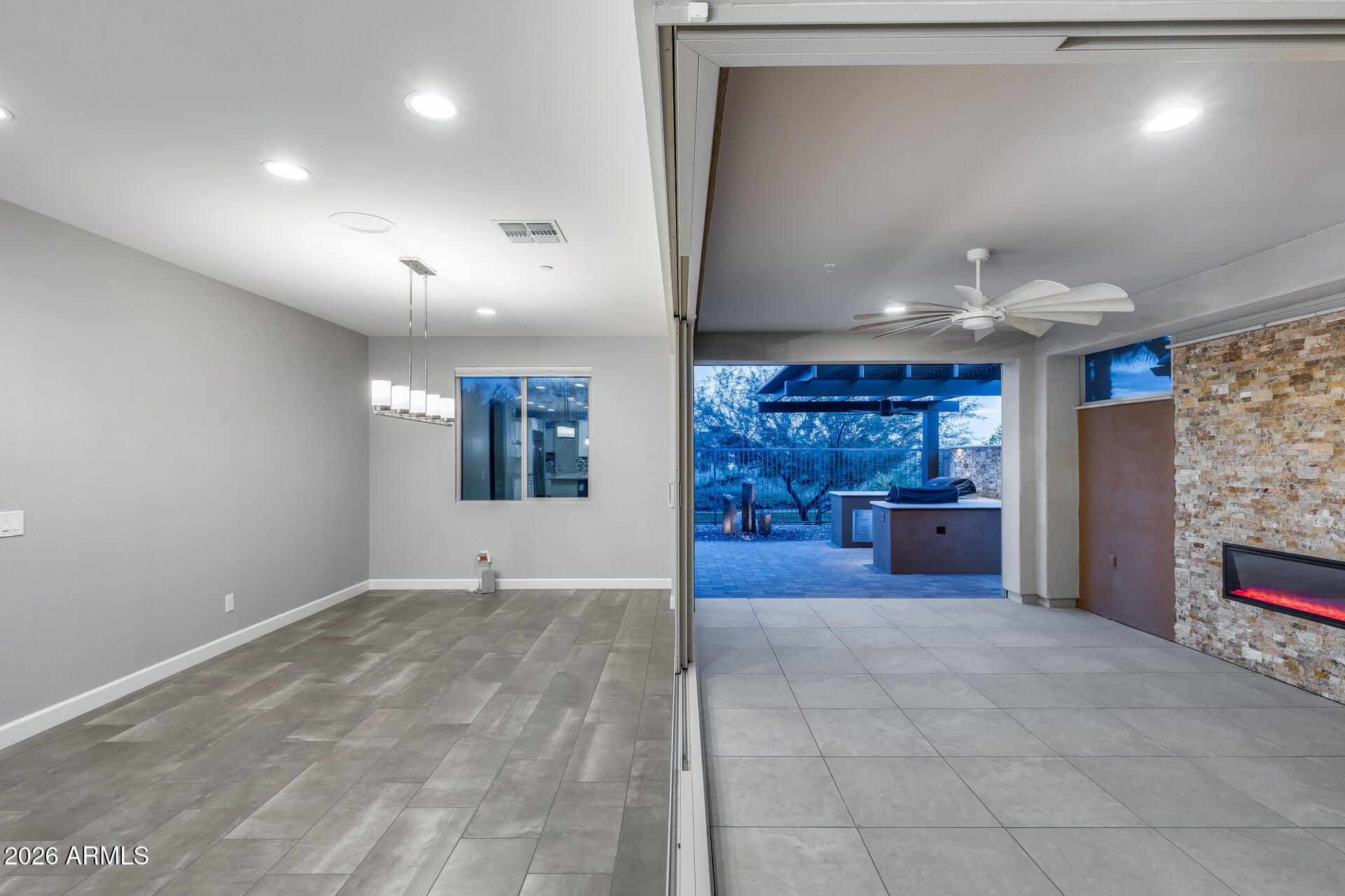 Retire in ultimate comfort and elegance with this beautifully updated 2-bed, 2-bath home in a vibrant, gated adult community—where peaceful living meets an active lifestyle! Spanning an impressive 1,926 sq ft, this home is perfectly positioned on a lush greenbelt with breathtaking mountain views and enhanced by a paver driveway and walkway for standout curb appeal. The kitchen features high-end cabinetry, granite countertops, and a designer backsplash. The spacious great room showcases a stunning corner rolling wall of glass, seamlessly opening to a private, fenced backyard retreat. This outdoor paradise includes extensive pavers, a stacked-stone fireplace, a built-in BBQ, and incredible scenic views! Enjoy resort-style living with community amenities that include a clubhouse, pool and spa, golf, fitness center, gated entry, and more. Please see attached for the complete list of upgradesthis exceptional home truly has it all!