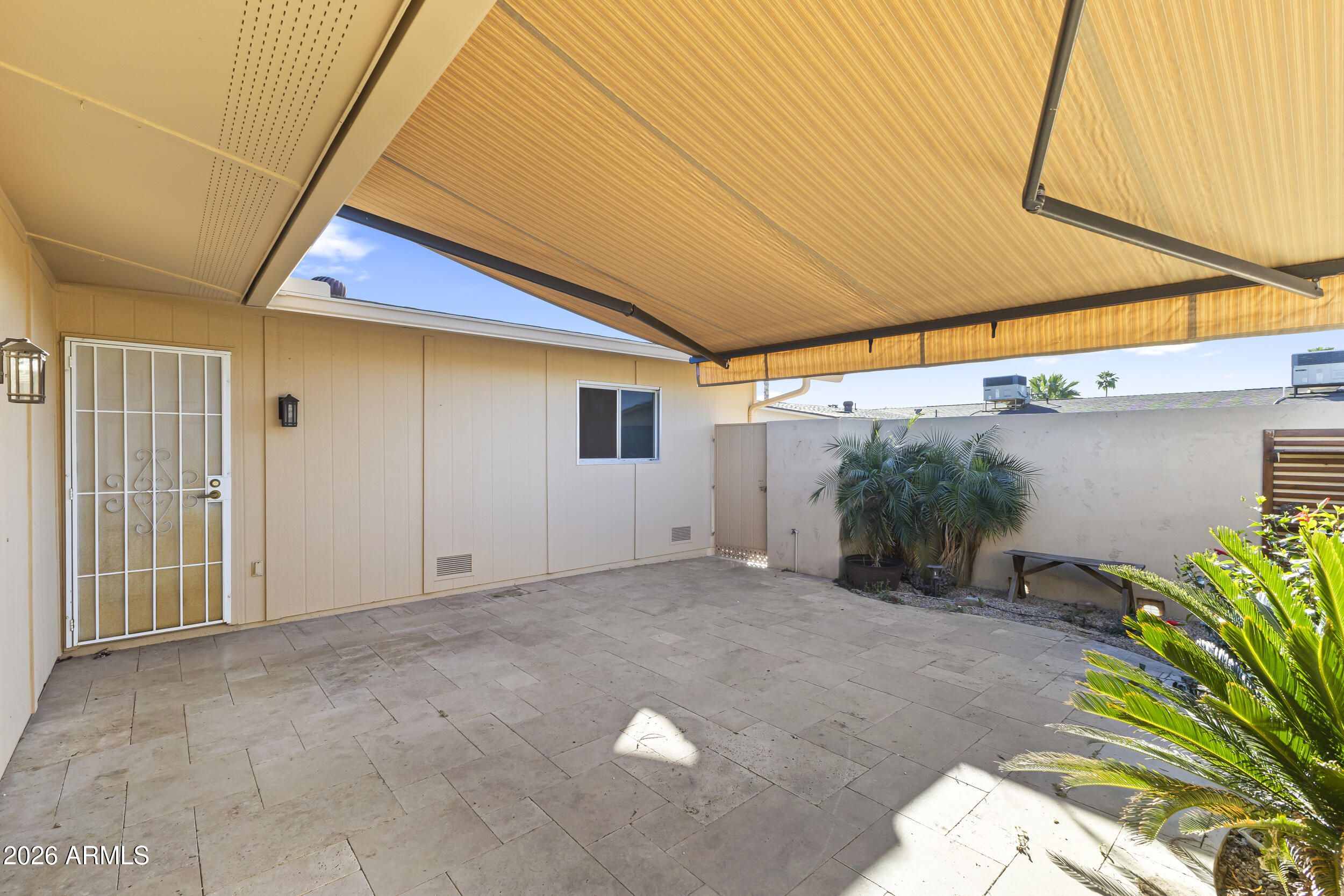 Don't miss this substantially updated home in the area's premier 55+ community! Thoughtfully redesigned and customized by skilled craftsmen, this residence has been upgraded from floor to ceiling and patio to roof--truly the epitome of ''move-in ready.'' Step inside to experience the completely remodeled floor plan, including added square footage and beautifully updated finishes in every room. The stunning kitchen was taken down to the studs and rebuilt with custom cabinetry featuring hidden storage for valuables, soft-close drawers and doors, granite countertops, recessed dimmable LED lighting, and an under-counter GE wine refrigerator cabinet. Both bathrooms have been fully renovated with quality finishes and modern style, including a gorgeous master bathroom and walk-in shower. Additional upgrades include new flooring, including new (late 2025) high-end plush carpeting with premium padding, updated doors including custom pocket doors, dimmable LED canister lighting throughout, energy-efficient dual-pane windows and popcorn ceiling removal. Major system updates provide added peace of mind, including a new roof (2018), new A/C system (2023with 10 year warranty) and new fixtures throughout. Enjoy outdoor living at its best with a private back patio shaded by a remote-controlled retractable awning--perfect for evening dining or entertaining guests. Also includes finished garage with built-in cabinetry to maximize storage. Seller is committed to excellent buyer experience; purchase includes 1-year premium home warranty and, with a full price offer, 1% seller's credit towards a rate buy down or closing costs. With upgrades too numerous to list, be sure to review the detailed features and updates sheet. This exceptional home offers comfort, style, and quality craftsmanship in every detail.