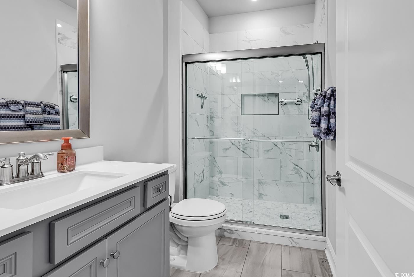 Embrace the Vacation Lifestyle at Del Webb in North Myrtle Beach! Welcome to your dream home in this vibrant community (the only 55+ community in North Myrtle Beach) where you will feel like you are on vacation every day. Don't miss out on the opportunity to make this home your own---very little inventory at Del Webb North Myrtle Beach remains and this one is meticulous! This home is loaded with upgrades and is ready NOW! No waiting 6 months for a home to be built! This one is move in ready. You can even golf cart to the beach from here and this side of the development is fully complete with no construction! Inside, you'll find a bright and airy space that instantly feels welcoming. The gourmet kitchen is a cook's dream, featuring upgraded soft close cabinets and Kitchen Aid high-end stainless appliances, including a built-in microwave and oven, gas cooktop, refrigerator and dishwasher. The 42" cabinets and granite countertops make it both stylish and functional. Plus, the extended island provides even more space for entertaining. The spacious dining area flows right into the living room—perfect for hosting friends or just relaxing. With neutral laminate flooring in the living, dining, and kitchen areas, and tile in the bathrooms and laundry room, this home is ideal for any décor. Step outside to the 20 x 15 fully screened lanai (with electronic shades) where you can unwind while having your morning coffee. The lanai has a beautiful epoxied floor for easy care outdoor living and overlooks lush landscaping and a scenic walking path that leads to the amenity center and nearby putting green. There's even a green space on one side of the home for added privacy. The owner's suite is your personal retreat, complete with a tray ceiling and a spa-like bathroom featuring a walk-in shower, dual sinks. The primary closet has been customized for added space with wood cabinets and fixtures by Closets by Design giving you tons of space. All closets have been customized to provide more storage space and the home comes with blinds on all windows. The separate laundry room includes a washer and dryer that convey with the home. There is a generous sized guest bedroom and the hall bathroom has been completely upgraded with a new tiled walk in shower and glass enclosure plus granite countertop and vanity. Need a little extra space for storage or more visitors? The flex room has been outfitted with custom wood cabinetry and a murphy bed to accommodate more guests. Two car garage, in ground irrigation system and tankless water heater are also included. Living at Del Webb North Myrtle Beach is like being on vacation every day. Included in your very low monthly HOA is lawn care, hi speed wifi and cable and all the amenities. Enjoy the resort style pool, indoor pool, well equipped fitness center, bocce court, 8 pickleball courts and a putting green. A full time staff plans activities and events and a monthly calendar has clubs and activities daily.