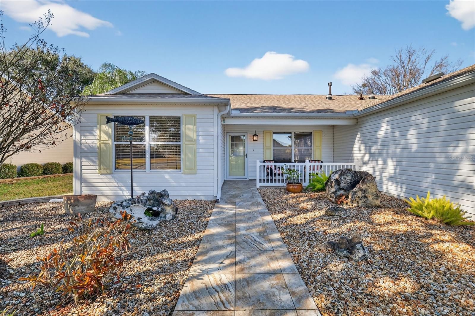 OVERLOOK PEACEFUL GOLF FRONT and WATER VIEWS in this FANTASTIC, TURNKEY 3/2 Amarillo - CONVENIENTLY LOCATED between County Roads 466 and 466A in the Village of Liberty Park! Only minutes away from BOTH Lake Sumter Landing Square and Brownwood Paddock Square. BOND PAID off early - an over $5,000 instant bonus! NEW ROOF (2025) NEW HVAC (2020). A beautiful TILED walkway, enhanced TIERED landscaping with STONED beds, CHARMING TILED front porch, and elegant French door welcome you in to this SPECTACULAR home! Inside, VAULTED ceilings and an OPEN CONCEPT living, dining, and kitchen layout creates a bright, SPACIOUS main living area. UPGRADES are found THROUGHOUT, including GORGEOUS TILE flooring, expanded baseboards, and SIX SOLAR TUBES that flood the home with NATURAL LIGHT! The STUNNING kitchen boasts WHITE cabinetry with PULL-OUT shelving; GRANITE countertops; diagonally, TILED backsplash; GAS cooking; PANTRY closet; and a LARGE U-shaped center ISLAND with wainscoting and COUNTER-HEIGHT, EAT-IN breakfast bar - perfect for everyday living and entertaining. Just off of the dining room, the SPACIOUS Florida room adds an additional 168 square feet of UNDER-AIR living space. Surrounded by windows, this INCREDIBLE room showcases SPECTACULAR PANORAMIC GOLF and WATER VIEWS! For outdoor enjoyment, a side door leads to an EXPANSIVE screened lanai with an EXTENDED covered birdcage—perfect for entertaining or relaxing while savoring Florida’s gorgeous weather and the serene views! The primary suite offers DOUBLE windows and TWO GENEROUS WALK-IN closets. Its en-suite bathroom features WHITE cabinetry with GRANITE countertop and VESSEL sink, TILED WALK-IN shower with frameless glass door, and a SEPARATE water closet. Designed for PRIVACY, the SPLIT FLOOR PLAN includes a SEPARATE GUEST WING behind a POCKET DOOR. Bedroom two features DOUBLE windows and a built-in bookcase and closet. The second bathroom is thoughtfully appointed with a WHITE vanity with GRANITE top and VESSEL sink, tub and shower combination, and a hallway LINEN closet. The third bedroom has a built-in closet and a rear window overlooking the golf course. Providing both functionality and convenience, an INTERIOR LAUNDRY is centrally-located and features WHITE CABINETRY and a CUSTOM DOUBLE PANTRY for additional STORAGE needs. Just beyond the laundry room is the SPACIOUS two-car garage with EPOXIED flooring, attic access with stairs, UTILITY SINK, and CUSTOM BUILT-IN STORAGE closet and shelving. This EXCEPTIONAL home offers comfort, style, and BREATHTAKING VIEWS— DON’T MISS YOUR OPPORTUNITY TO MAKE IT YOUR OWN! The Village of Liberty Park is conveniently located between Lake Sumter Landing and Brownwood Paddock Square; Close to Sea Breeze, Truman, Sterling Heights, and Colony Cottage Recreation Centers; A short golf cart ride to multiple Executive Golf Courses as well as Havana, Cane Garden, Evans Prairie, Mallory Hill, and Bonifay Country Clubs and Championship Golf Courses; Only minutes to either 466 or 466A with abundant shopping, restaurants, banks, medical, and more! PLEASE WATCH OUR WALKTHROUGH VIDEO of this AMAZING GOLF and WATER VIEW, TURNKEY HOME, and call today to schedule your Private Showing or Virtual Tour!