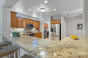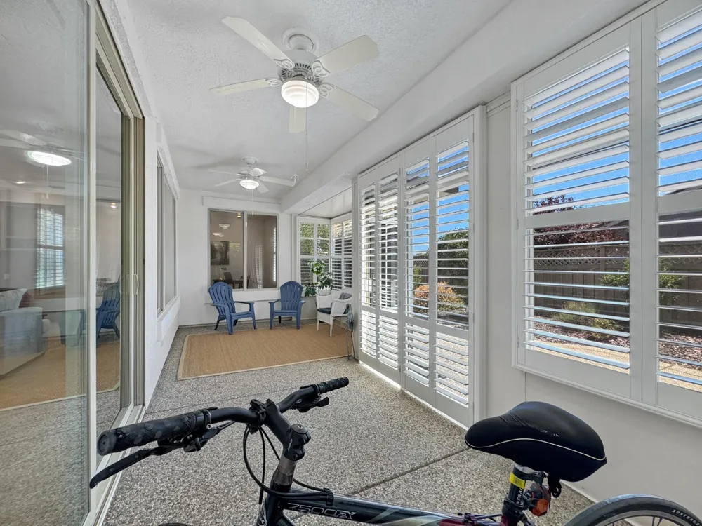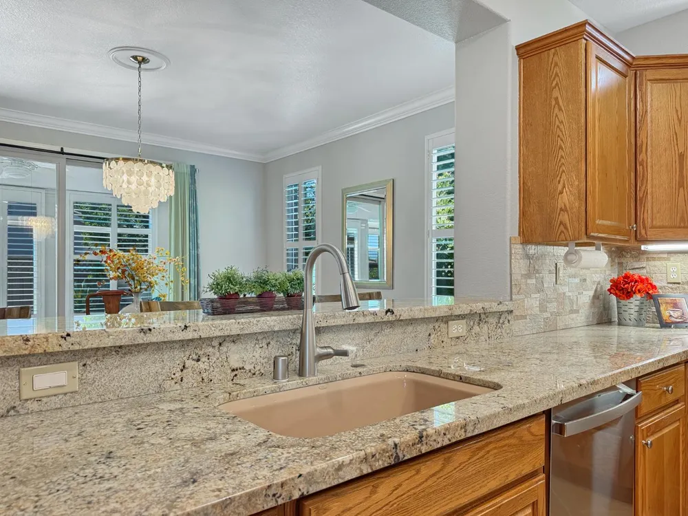 New Price! Welcome to 1347 Rose Bouquet Dr in Sun City Lincoln Hills - This desirable Tahoe model offers 2 bedrooms, 2 bathrooms, and a den, all thoughtfully designed for comfort and style. Step inside to find tile flooring laid on the diagonal, simulated wood plank flooring in the den and bedrooms, and elegant crown molding and plantation shutters throughout. The open-concept living and dining area provides the perfect space for entertaining or relaxing. The kitchen features granite countertops, a large single-basin sink, a closet pantry, and an eating area. The spacious primary suite includes a box window, walk-in closet, and an updated bath with quartz countertops and dual sinks. The guest bedroom includes built-in cabinets for extra functionality. A standout feature is the enclosed back patiotransformed into a sunroom with plantation shutters, offering a versatile space for relaxing, working out, or enjoying your favorite hobbies. Additional highlights include an extra-wide garage with built-in storage cabinets, a newer HVAC system, and updated plumbing with no Kitec. Sun City Lincoln Hills is a premier 55+ active adult community. Be sure to see the video and 3D tours