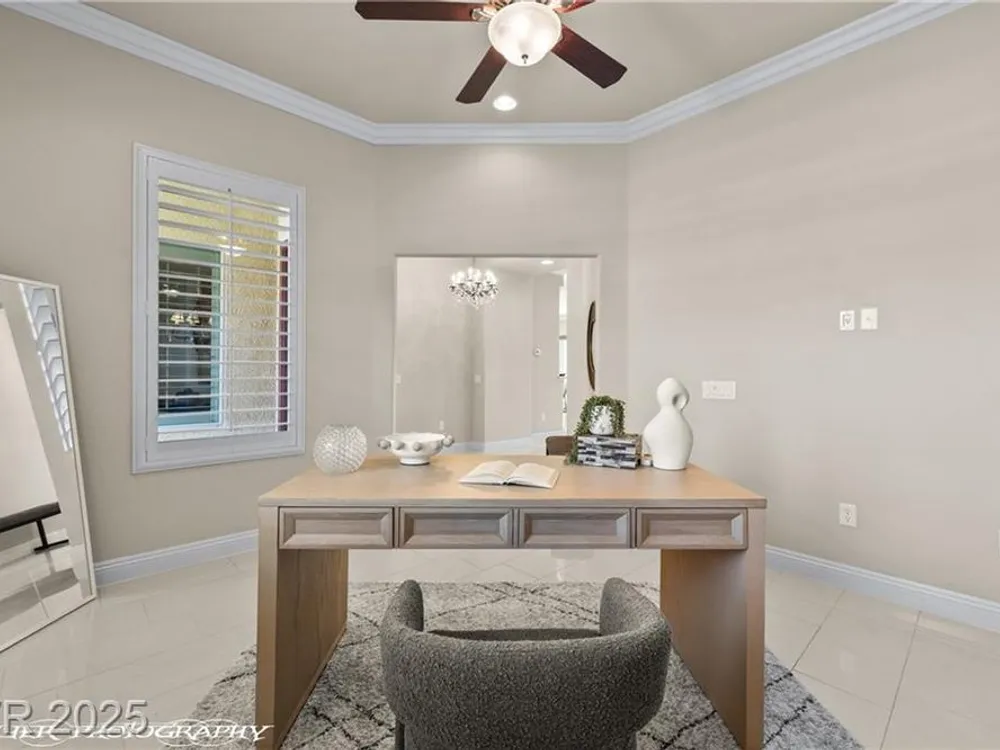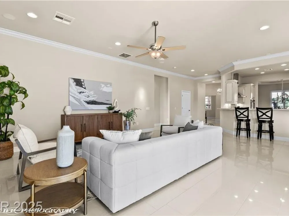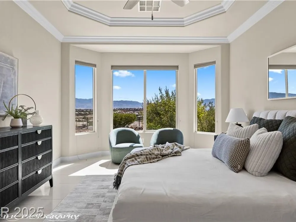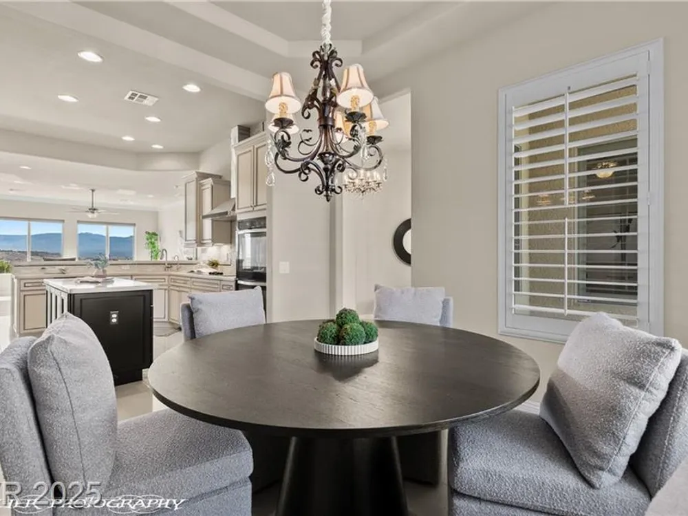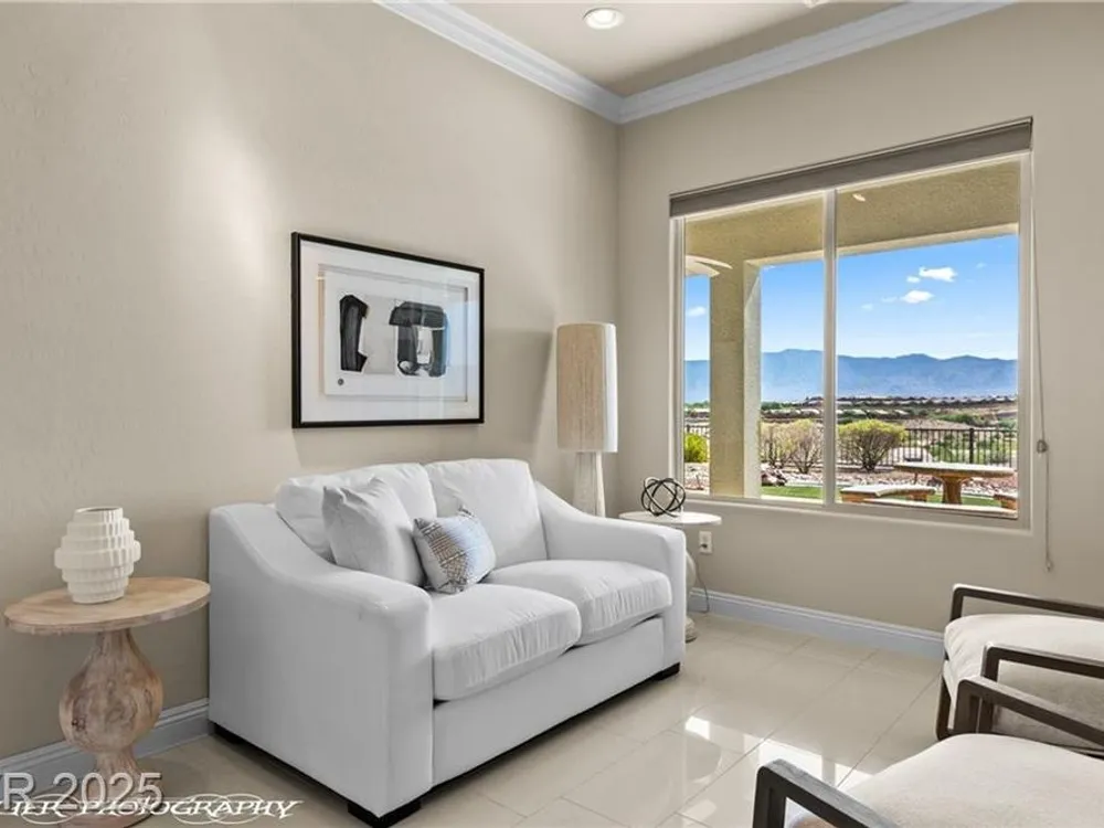 Welcome to 1348 Basin View, a stunning home in the prestigious Prominence subdivision of Sun City Mesquite. With over 2,400 sq ft of refined living space, this 3-bed, 2.5-bath residence blends elegance with modern comfort. The open floor plan features seamless porcelain tile, custom lighting, crown molding, and warm neutral tones for a sophisticated yet inviting feel. Set on a .25-acre elevated lot, enjoy breathtaking tri-state mountain views—an ideal backdrop for both relaxation and entertaining. Thoughtfully designed for luxurious, versatile living, every detail adds to the home's upscale appeal. Don’t miss your chance to experience exceptional desert living. Schedule your private tour today!
