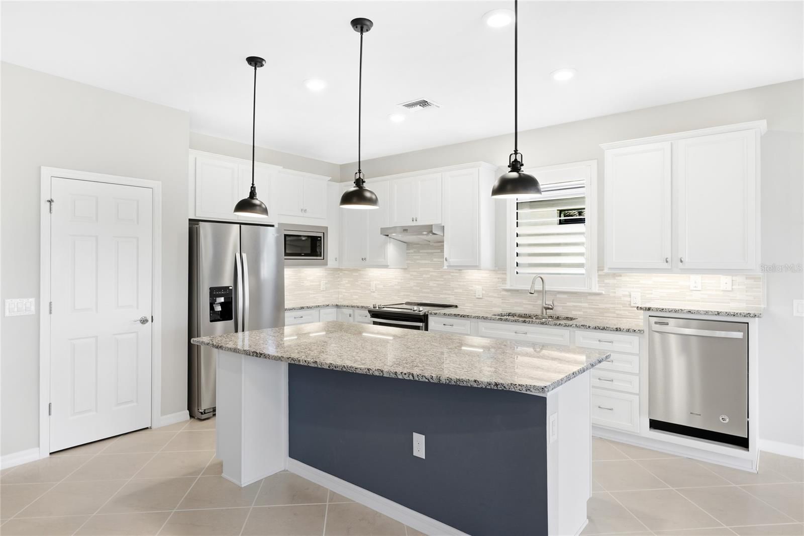 Welcome to 13480 Esposito Street in the highly sought-after Islandwalk at the West Villages community in Venice, Florida. This stunning Abbeyville model features 2 bedrooms plus a den and 2 bathrooms, perfectly designed for comfort and style. Enjoy the elegance of granite countertops throughout, complemented by a beautiful butcher block on the separate wine bar. The kitchen comes equipped with a higher dishwasher and a new refrigerator, and the wine cooler is included for your convenience. The home also boasts hurricane shutters on all windows, remote controlled hurricane screens on lanai which can also be used for privacy for added peace of mind. On the interior you will find a roll down shade on the slider doors out to the lanai. Additional highlights include custom shelving, plantation shutters, a whole-house water softener and filter, a 4 ft. extended garage with electrical hookups for a generator. Enjoy an extended driveway and beautiful entry. No need for a lawnmower! This home is a maintenance free community. Set on a lovely lot overlooking the top of the horseshoe shaped lake, this property is just minutes away from Wellen Park, downtown Venice, and easy access to I-75. Enjoy resort-style living with two amenity centers including lounging pools, lap pools, pickleball and tennis courts, playground and picturesque waterways and walkways. This pristine home is ready for you to move in and start your Florida lifestyle today!